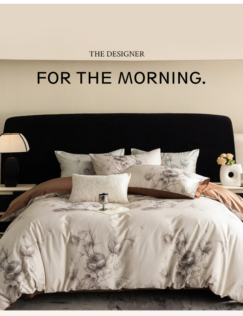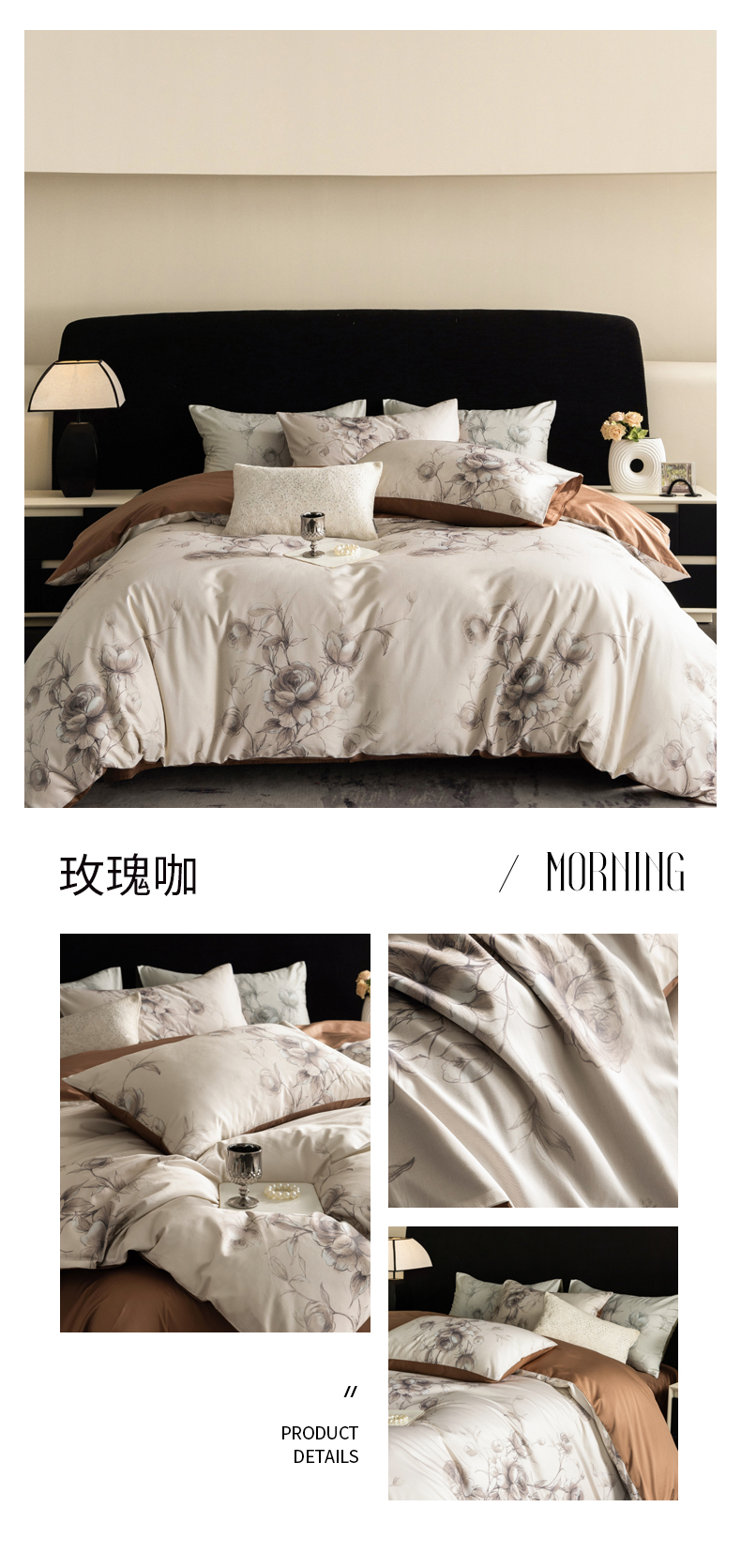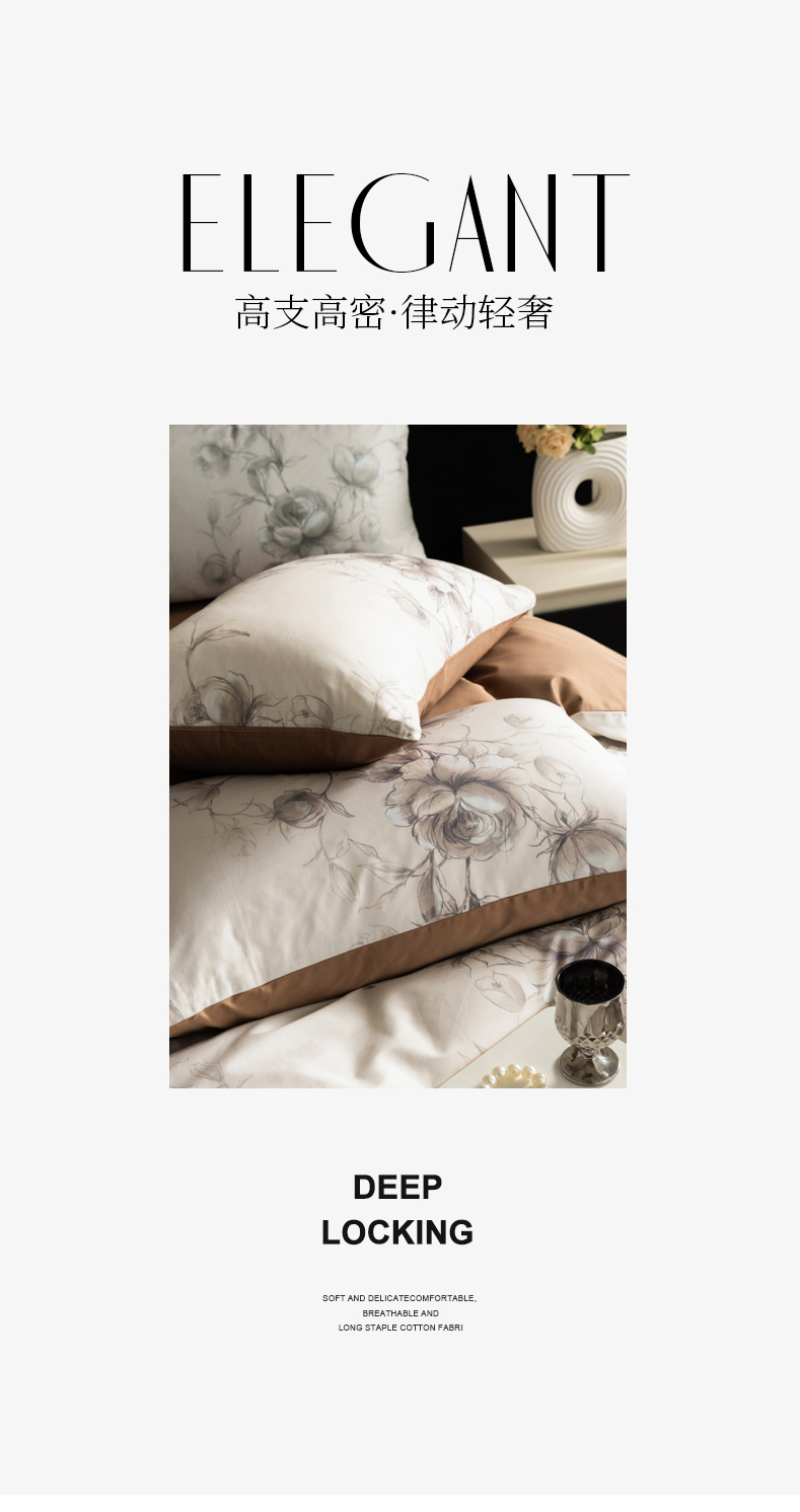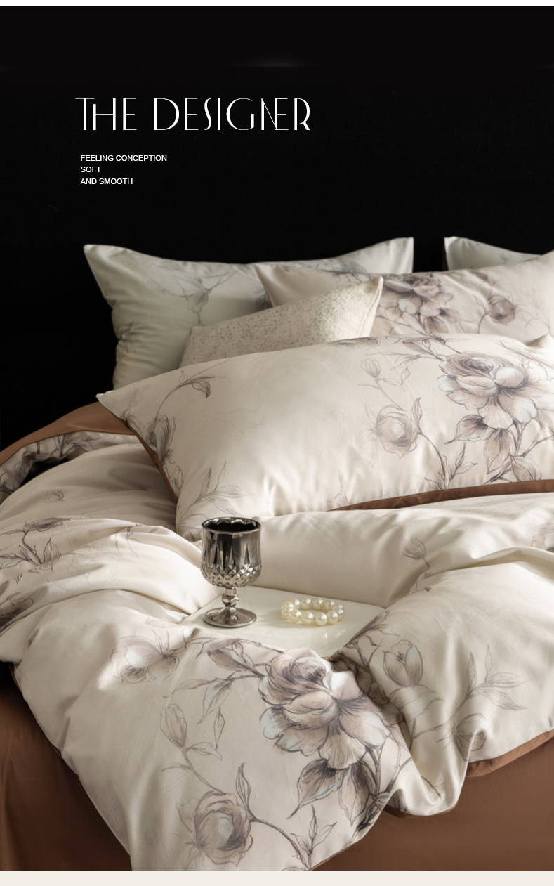 商品名称:立奥被业 2024新款60*60数码印花四件套全棉四件套 玫瑰咖
