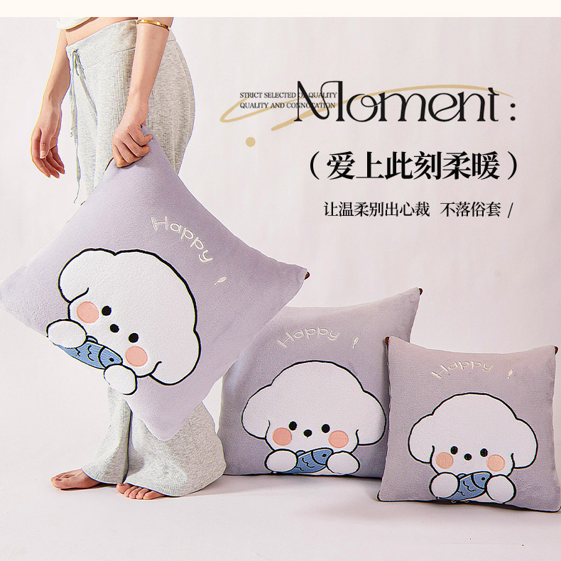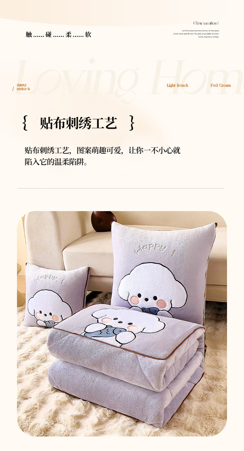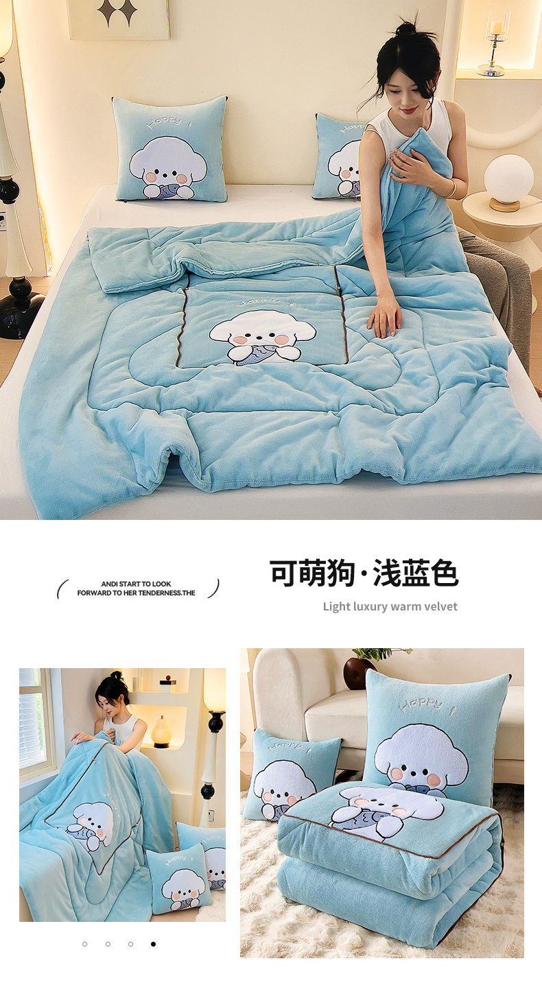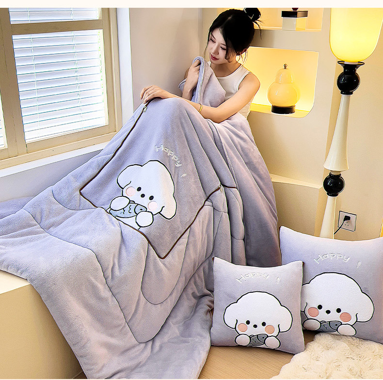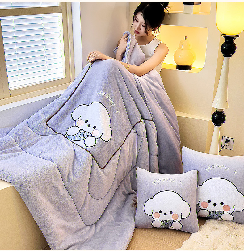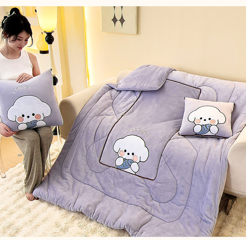 商品名称:阳光依佰抱枕被 2024秋冬新款牛奶绒可萌狗多功能抱枕被 可萌狗-丁香紫