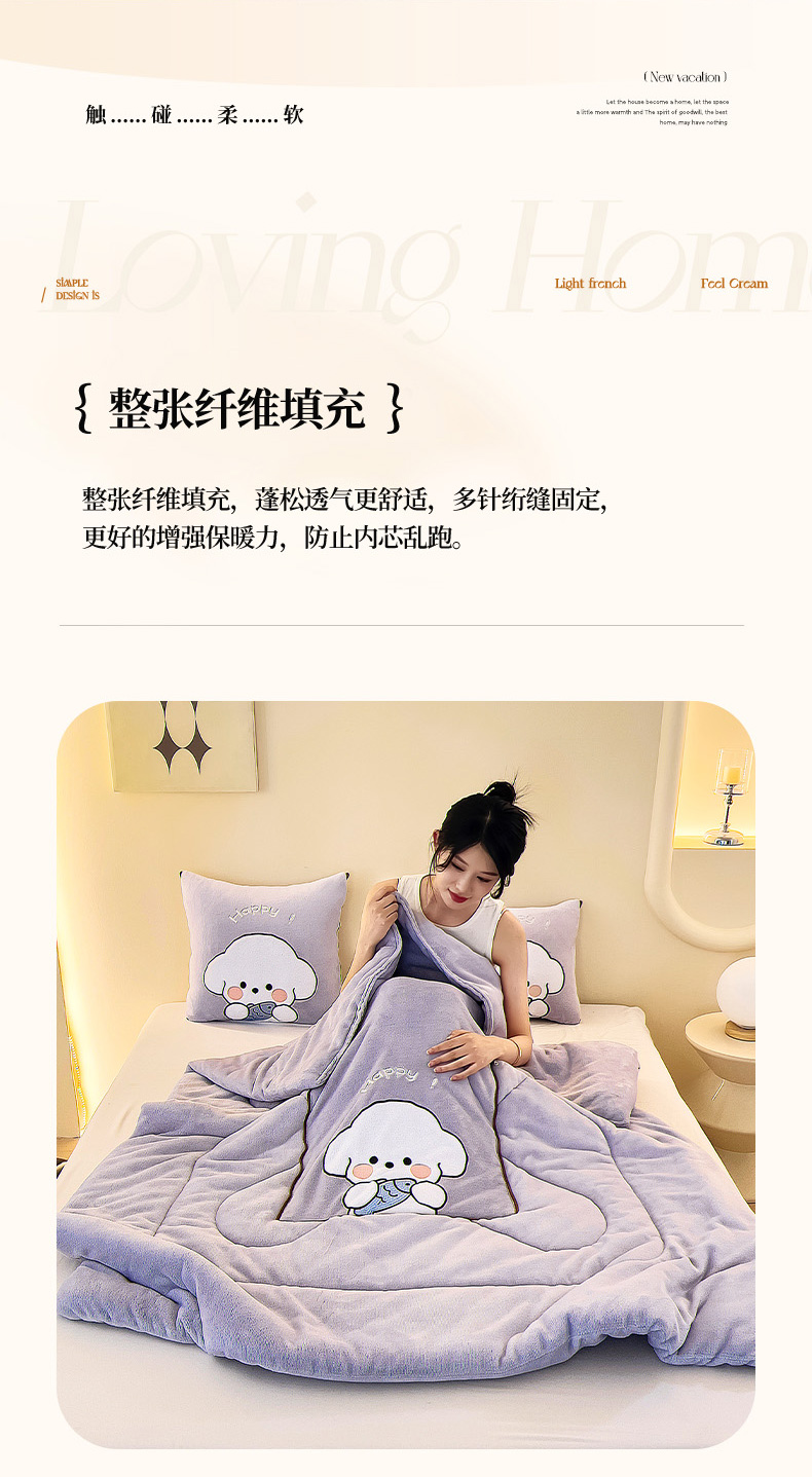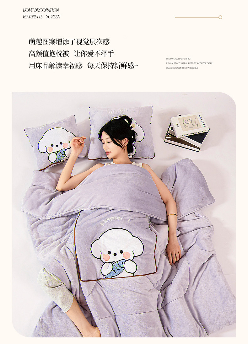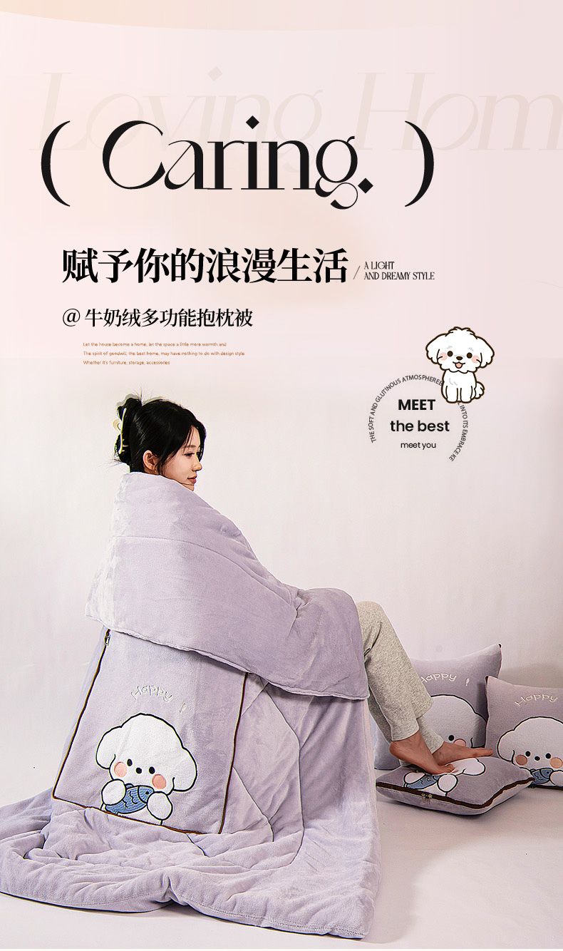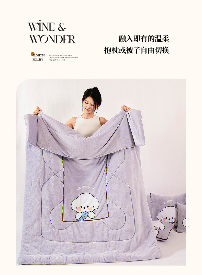 阳光依佰抱枕被 2024秋冬新款牛奶绒可萌狗多功能抱枕被 可萌狗-丁香紫