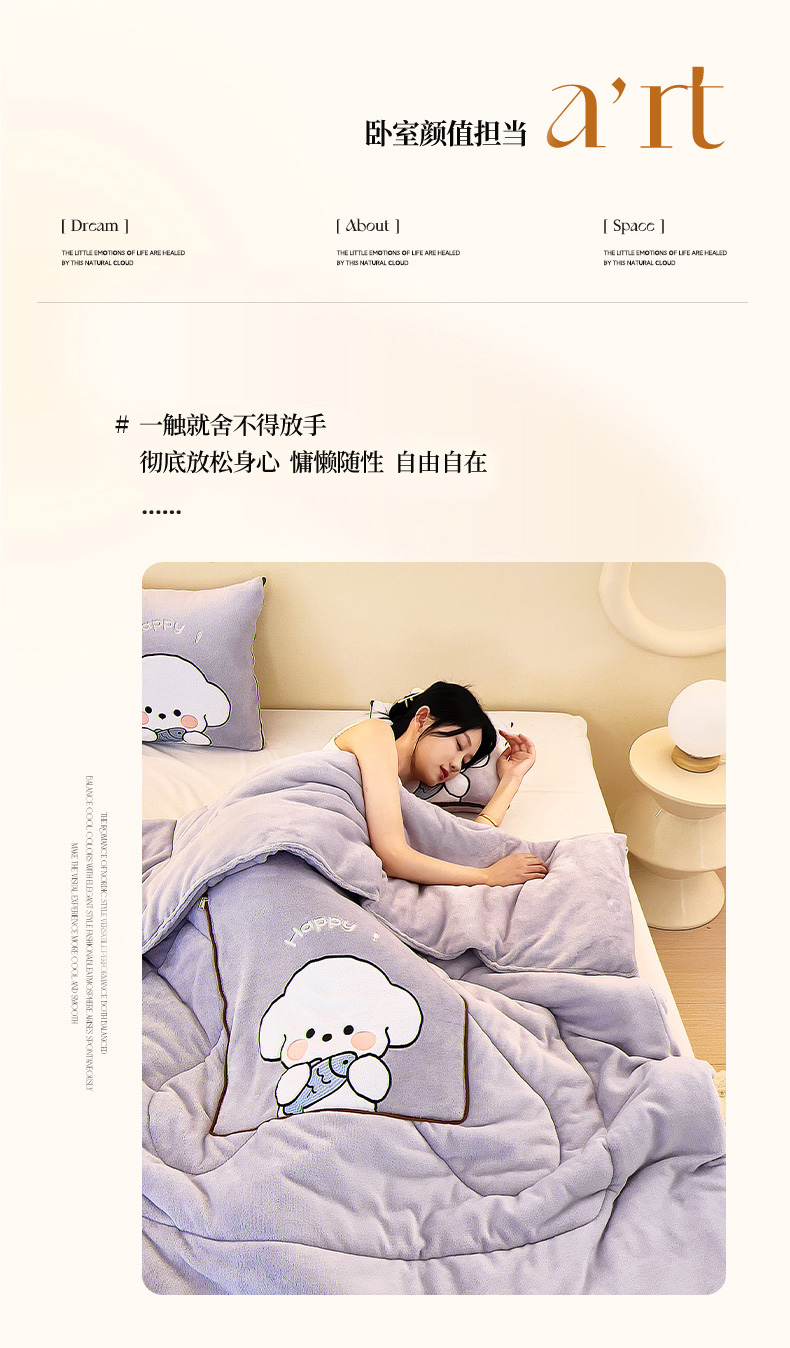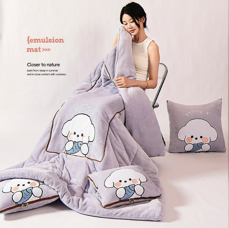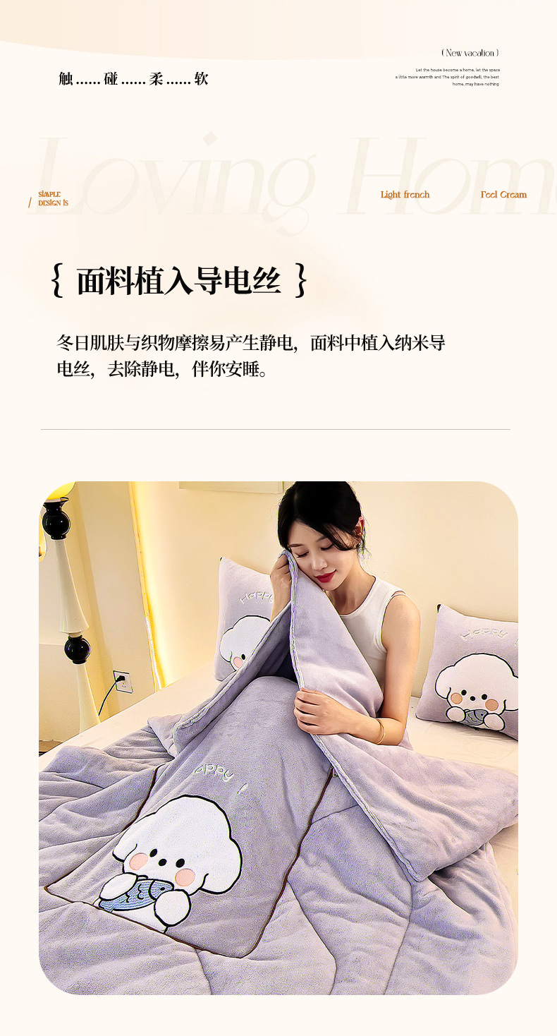 阳光依佰抱枕被 2024秋冬新款牛奶绒可萌狗多功能抱枕被 可萌狗-丁香紫