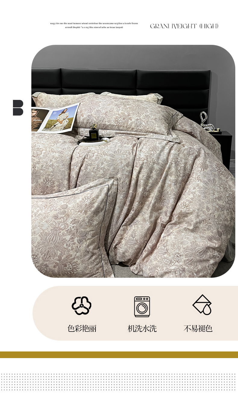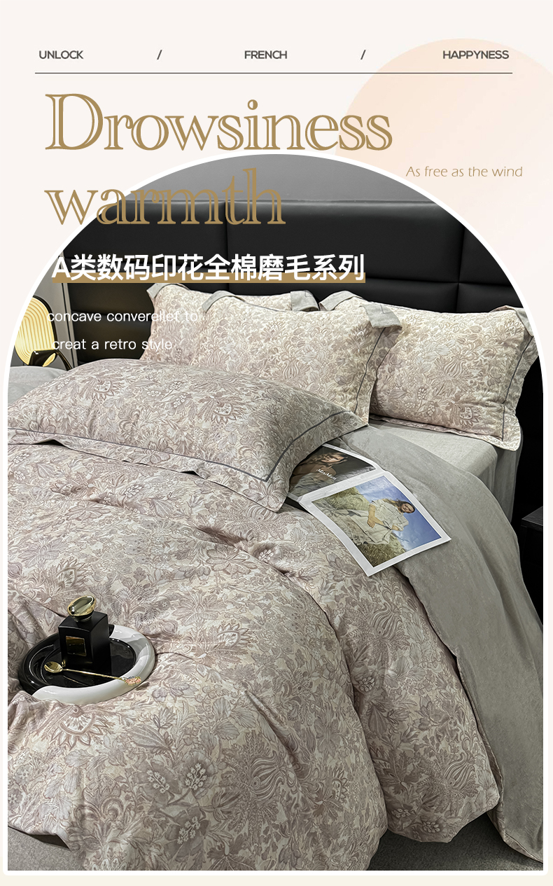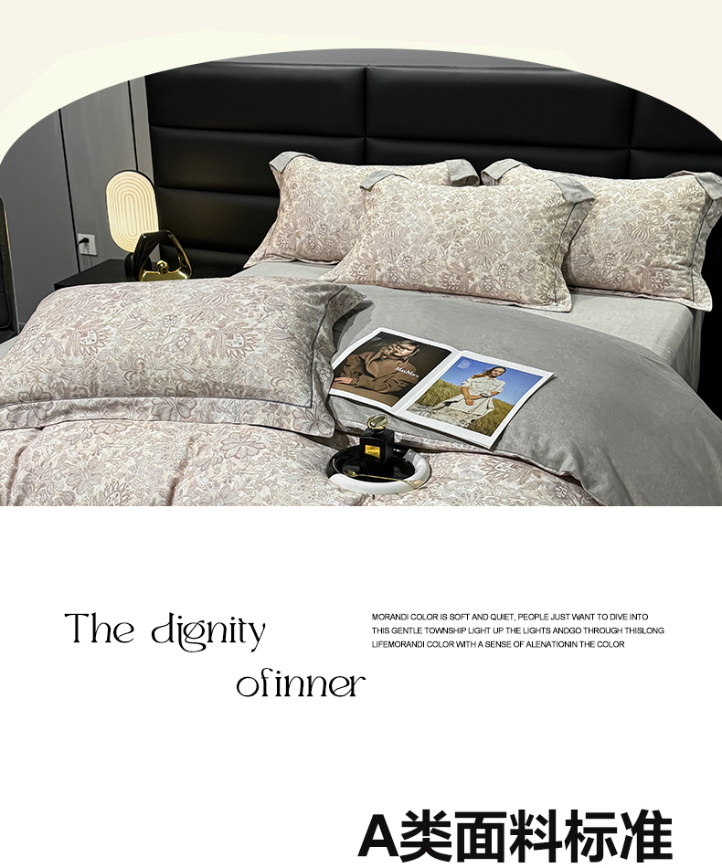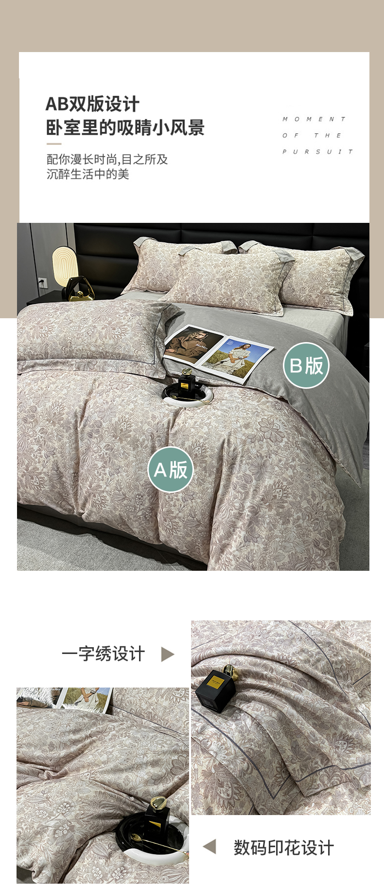 当前位置: 91家纺网 > 商品网购 > 床品套件 > 四件套 > 全棉普通四件套 > 2024新款A类全棉磨毛数码印花系列四件套 莉娅灰