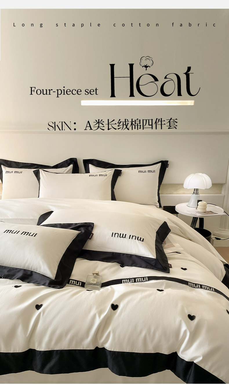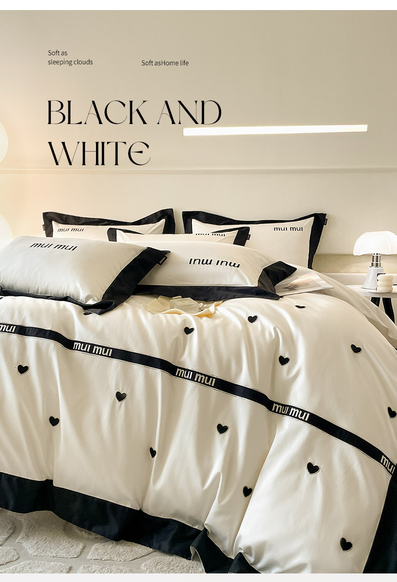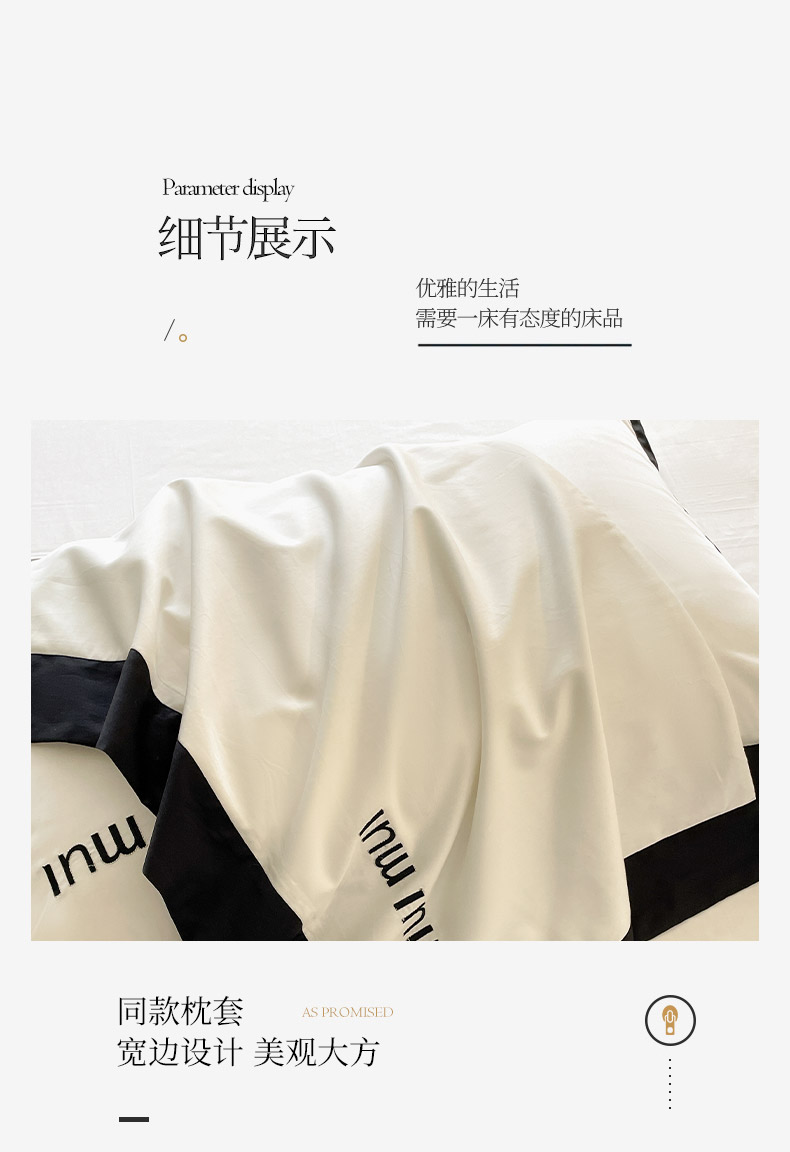 商品名称: 2024新款A类母婴级100支长绒棉四件套全棉纯棉轻奢拼接刺绣床单床笠款高端床上用品 深邃黑