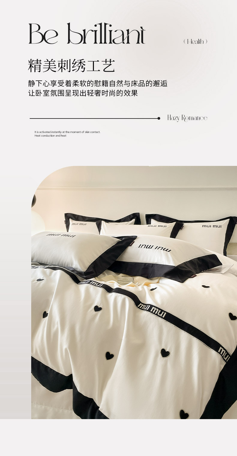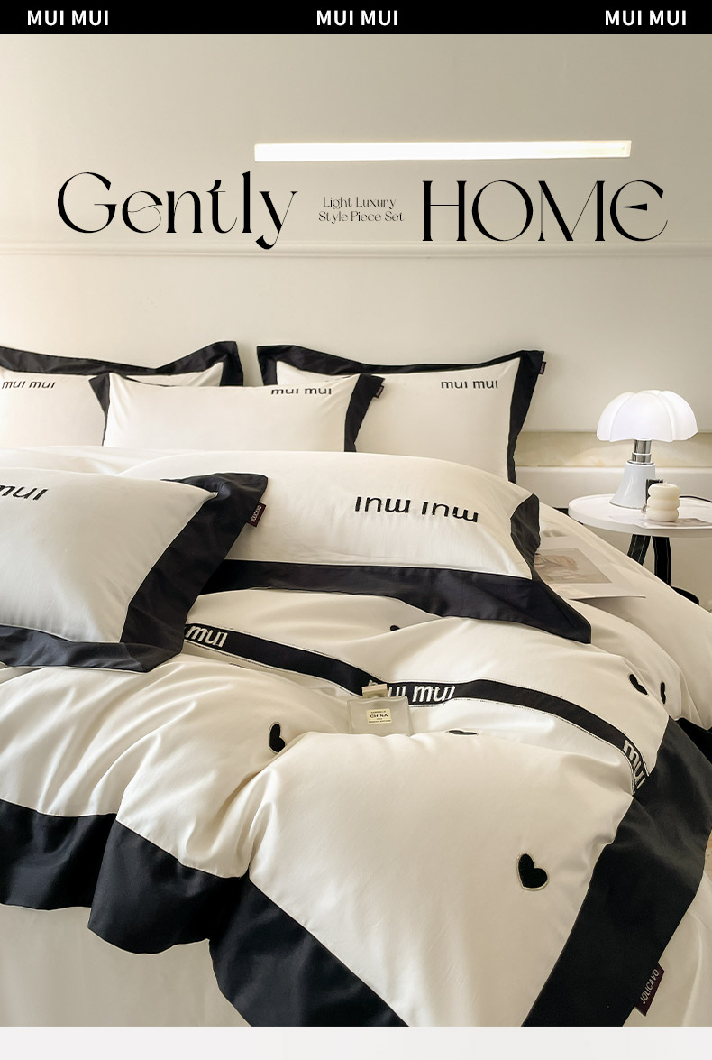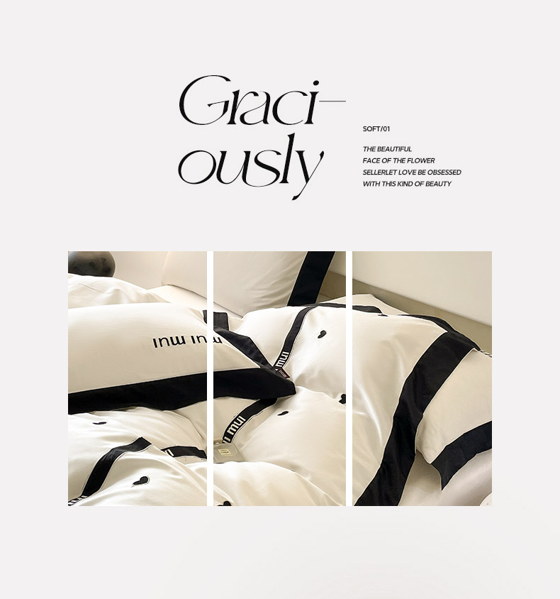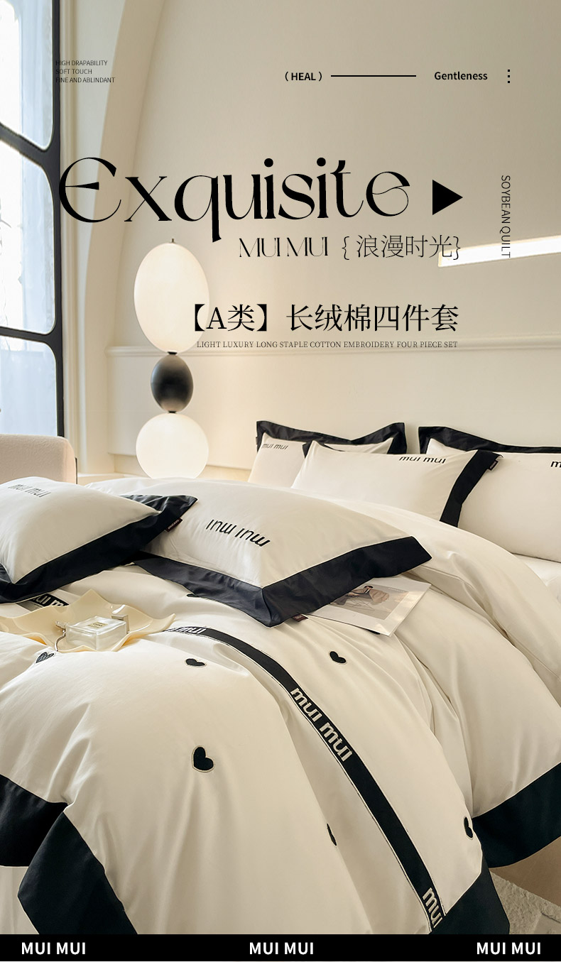 商品名称: 2024新款A类母婴级100支长绒棉四件套全棉纯棉轻奢拼接刺绣床单床笠款高端床上用品 深邃黑