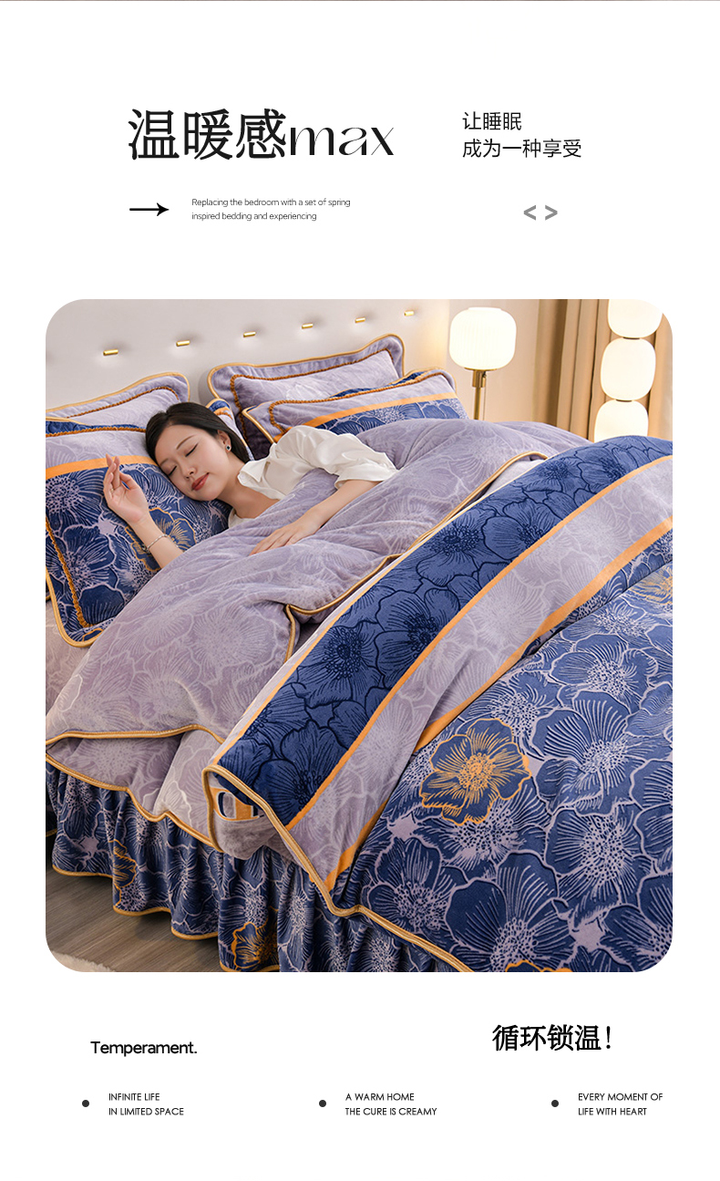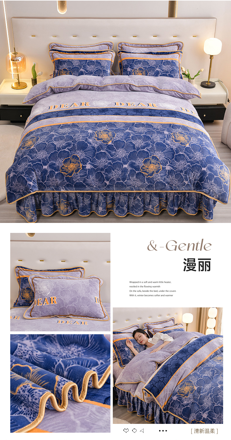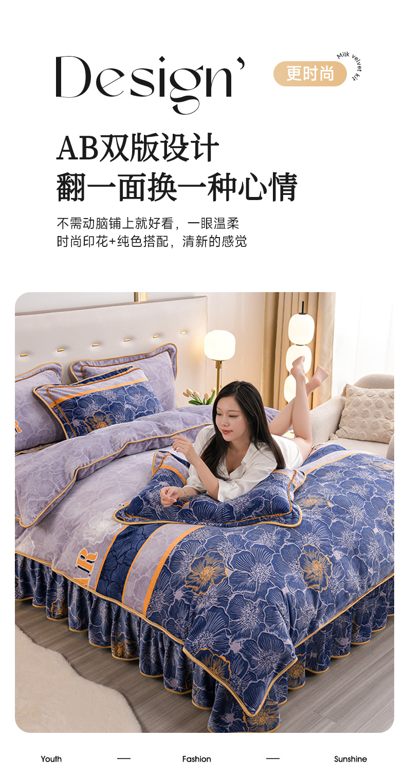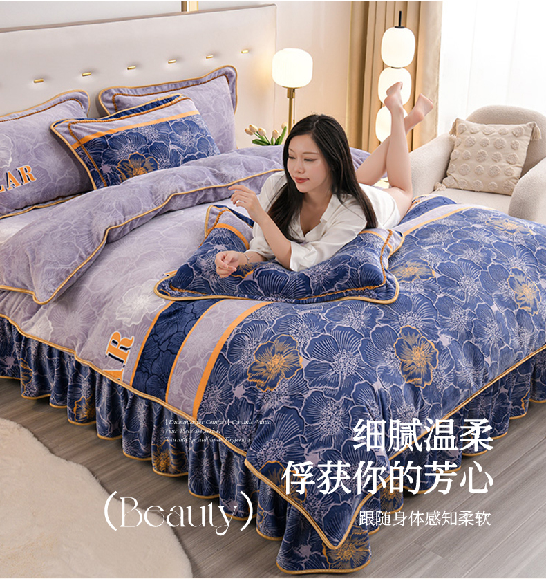 赫本家纺 2025新品8-9斤爆品牛奶绒四件套床裙款金雕绒法莱绒四套件漫丽