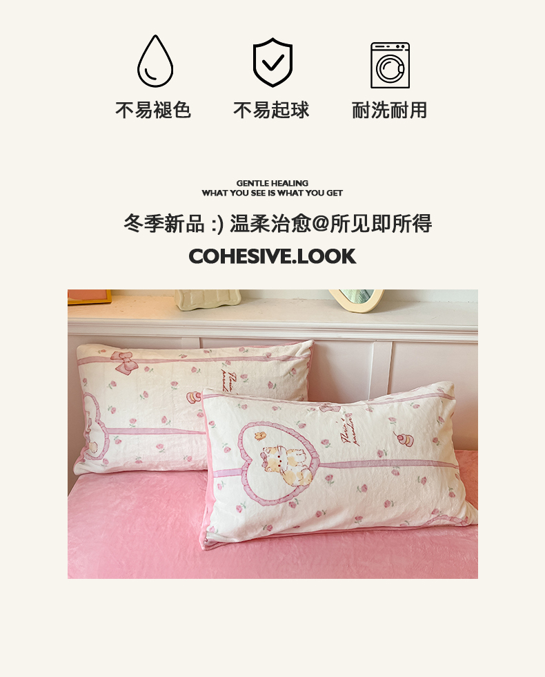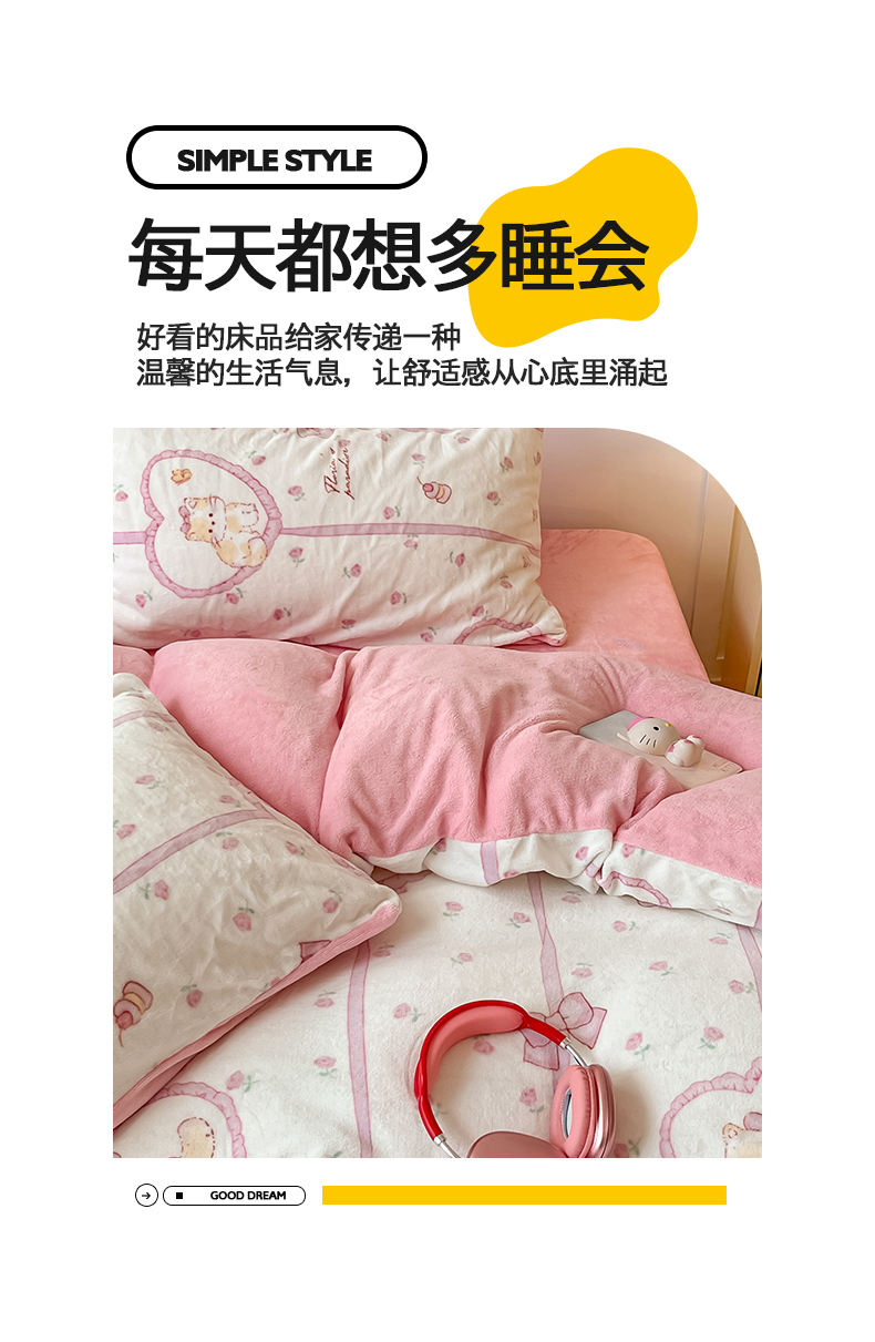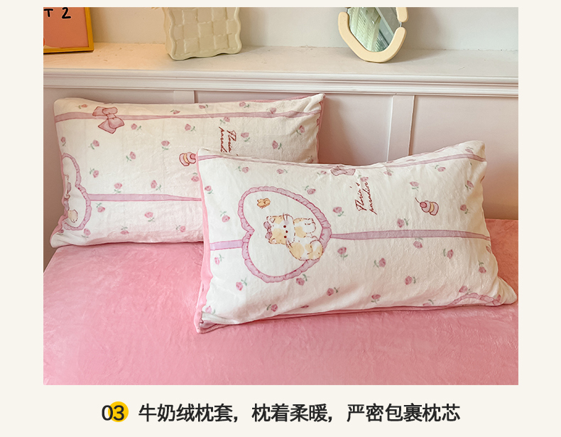 商品名称:桃子家居 2024新款小清新卡通加厚牛奶绒全工艺200克印花牛奶绒系列四件套 绒-公主喵