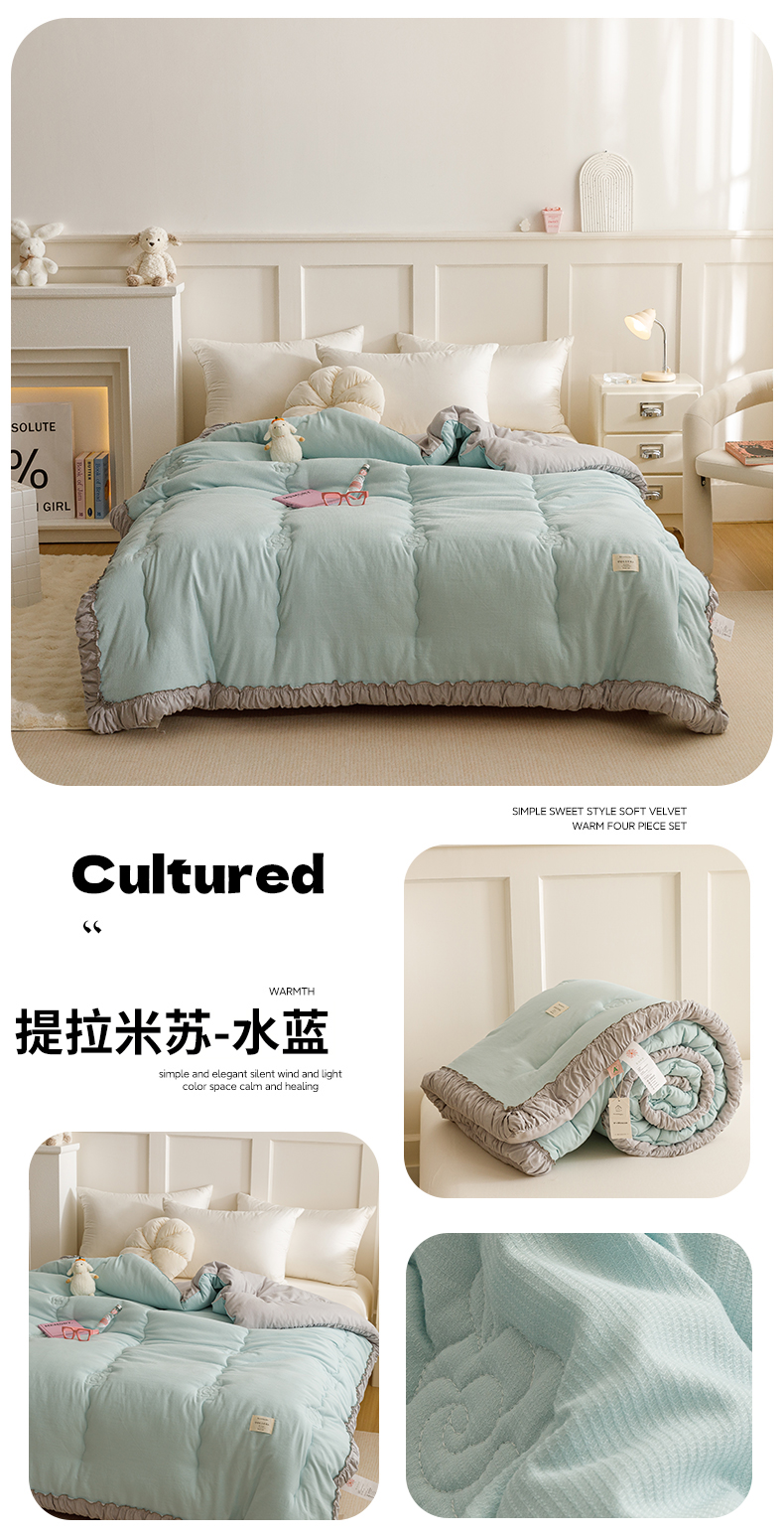 商品名称:有货 2024新款韩版提拉米苏一体被冬被春秋被被子被芯 提拉米苏-水蓝