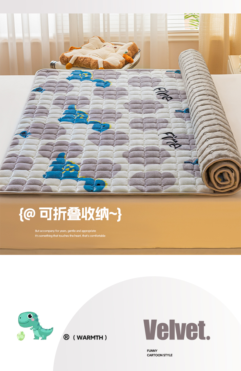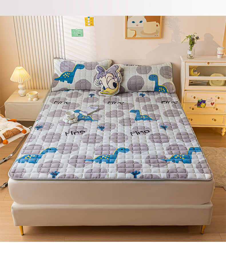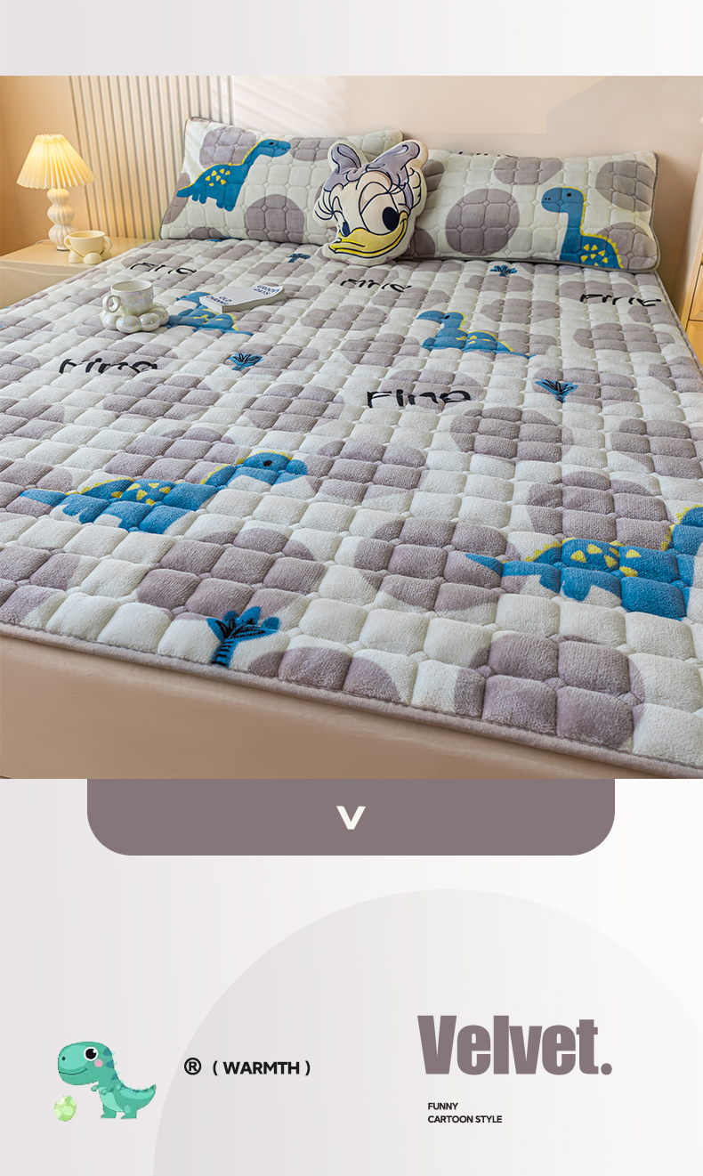 卡伦家纺 2025新款A类牛奶绒夹棉加厚床垫单人双人床垫保护垫 星幻恐龙