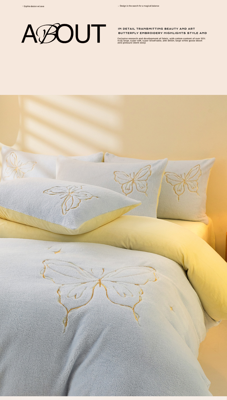 2024新保暖-秋冬A类南极绒刺绣四件套-蝶羽系列 蝶羽-天空奶油