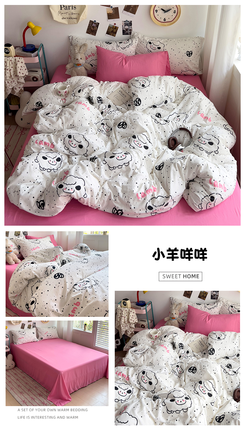 当前位置: 91家纺网 > 商品网购 > 床品套件 > 四件套 > 水洗棉四件套 > 星巴k家纺 2024新款A类超柔水洗棉印花四件套 小羊咩咩