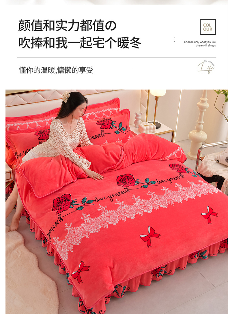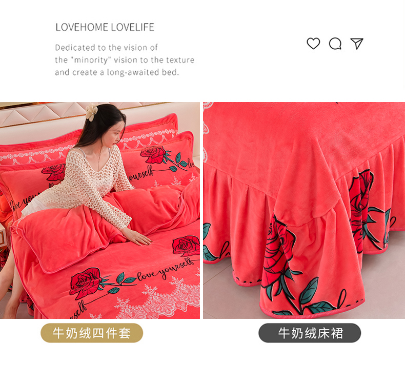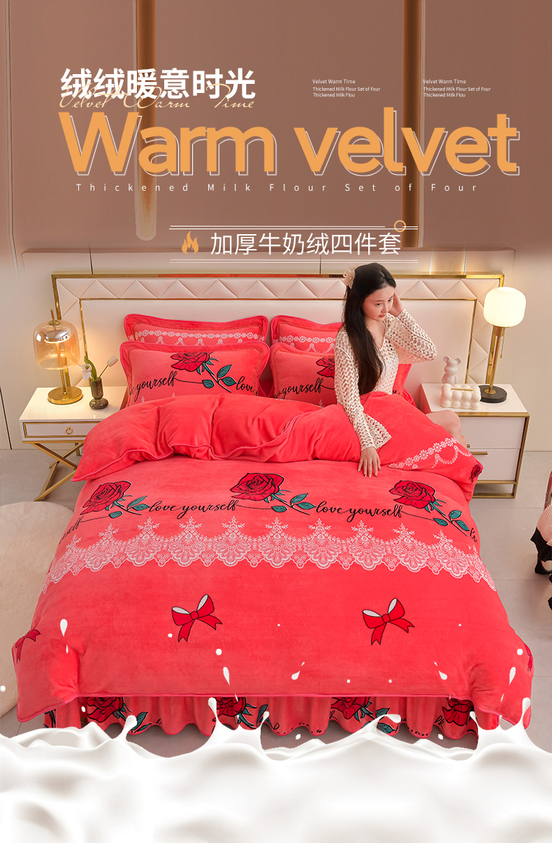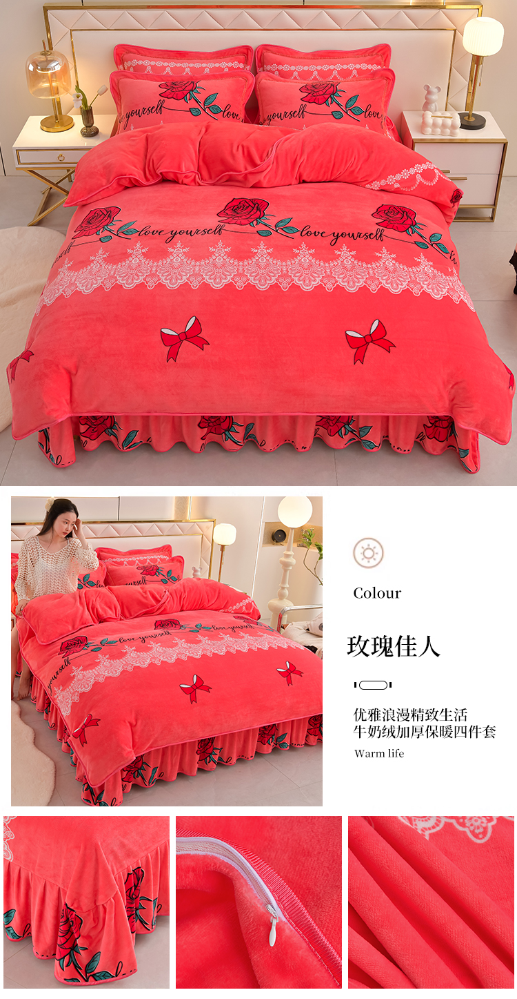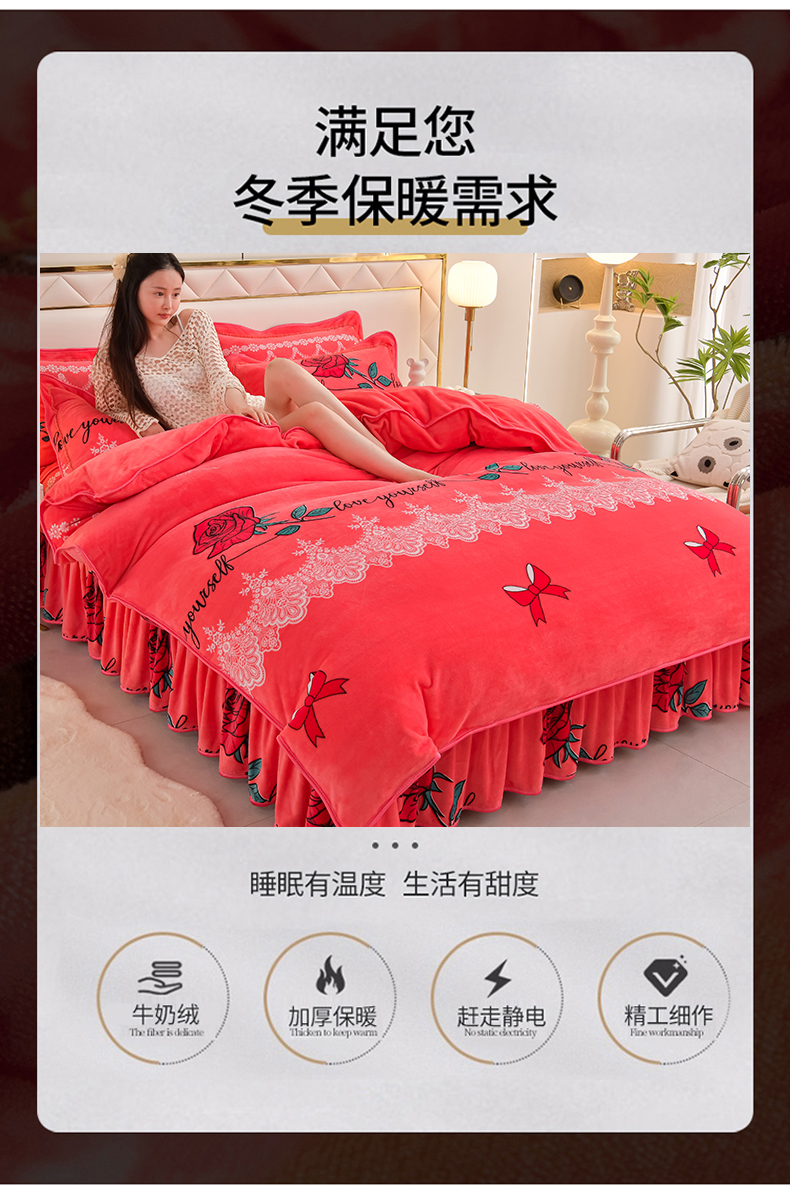 绒品荟家纺 2025新款牛奶绒四件套 玫瑰佳人