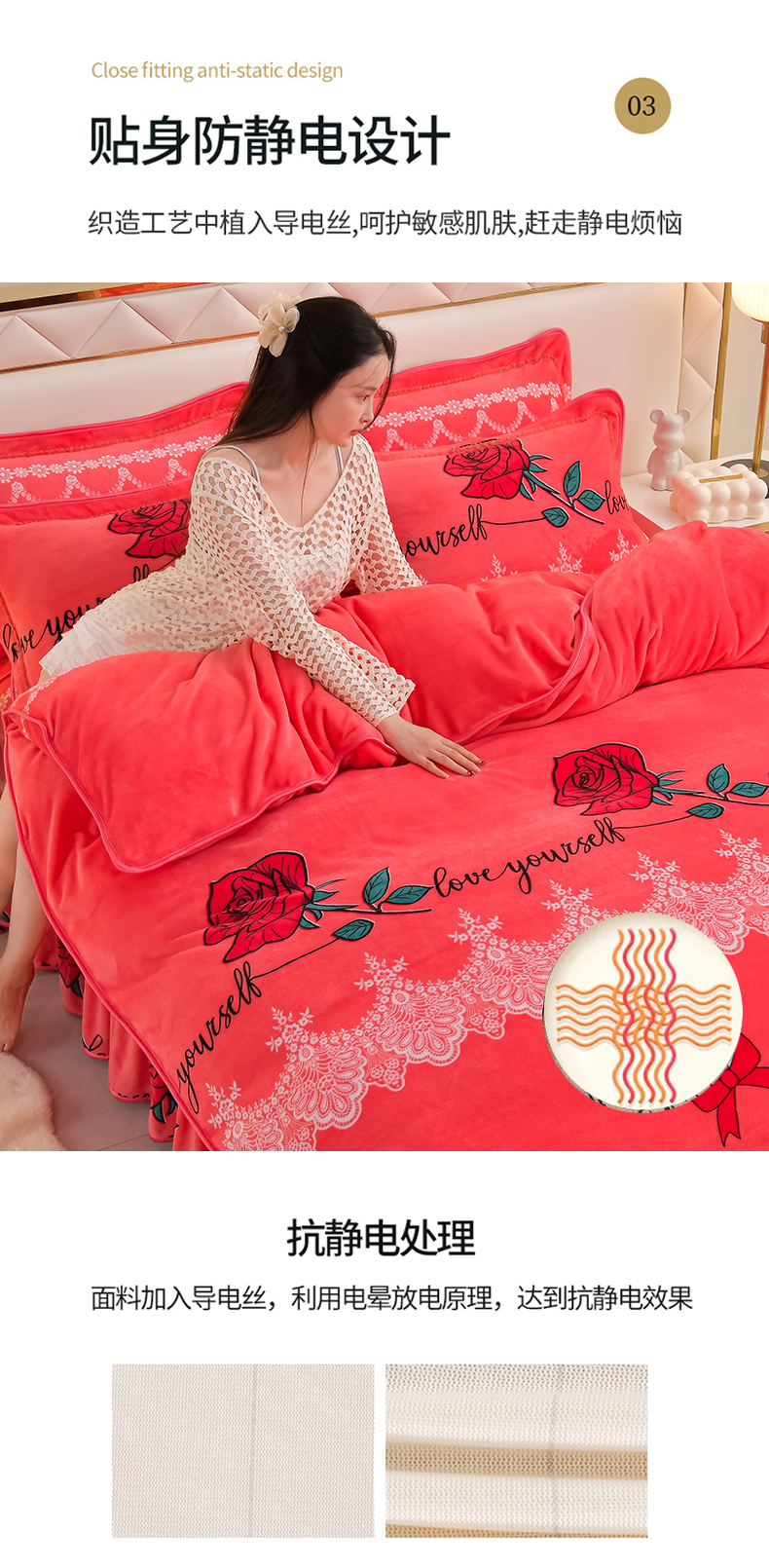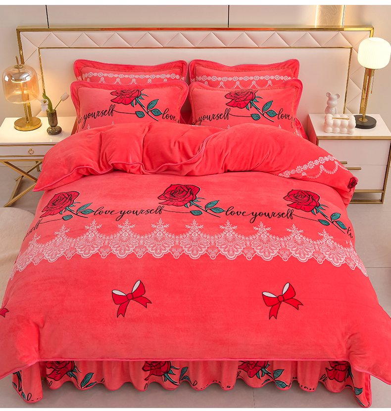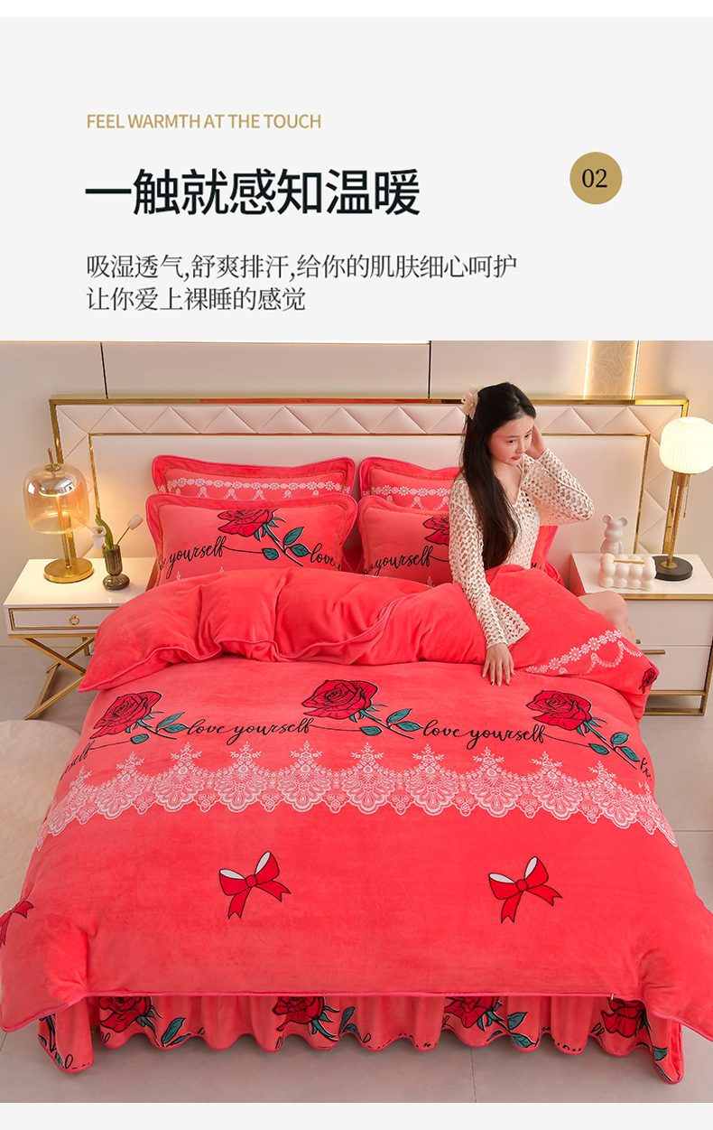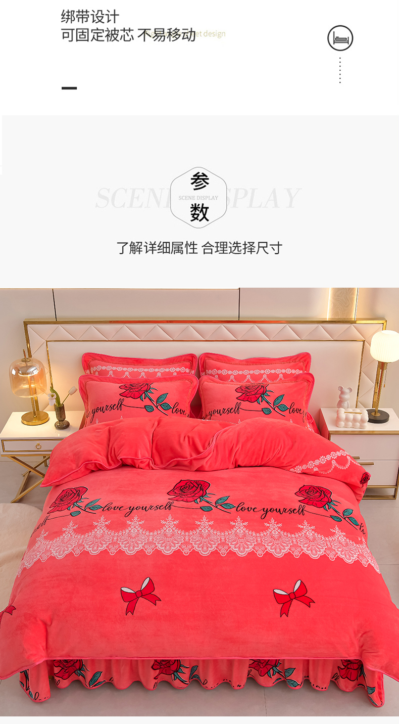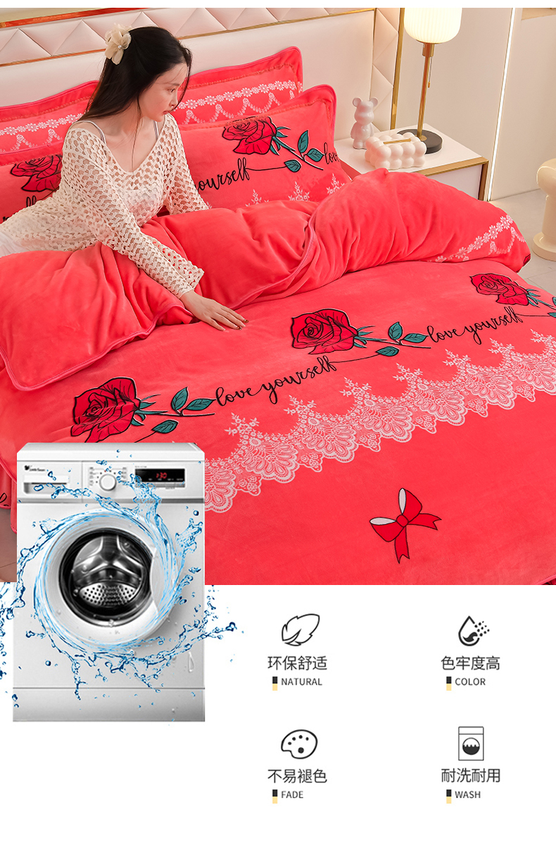 绒品荟家纺 2025新款牛奶绒四件套 玫瑰佳人