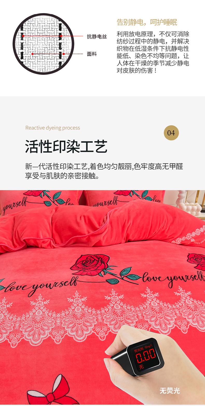 商品名称:绒品荟家纺 2025新款牛奶绒四件套 玫瑰佳人