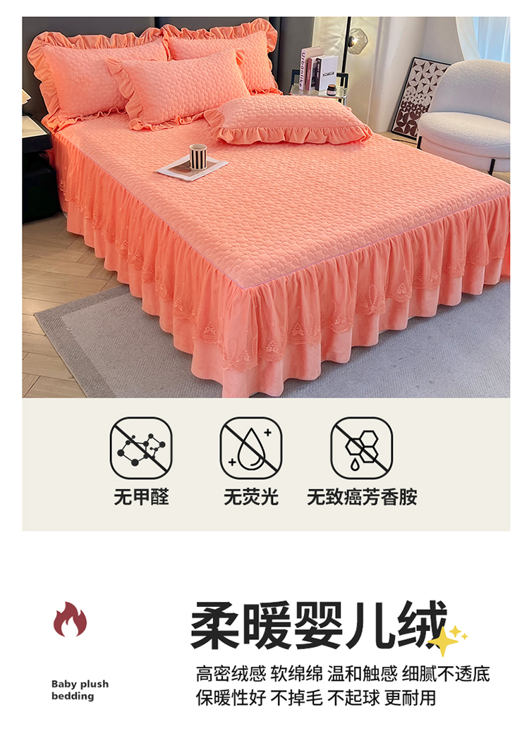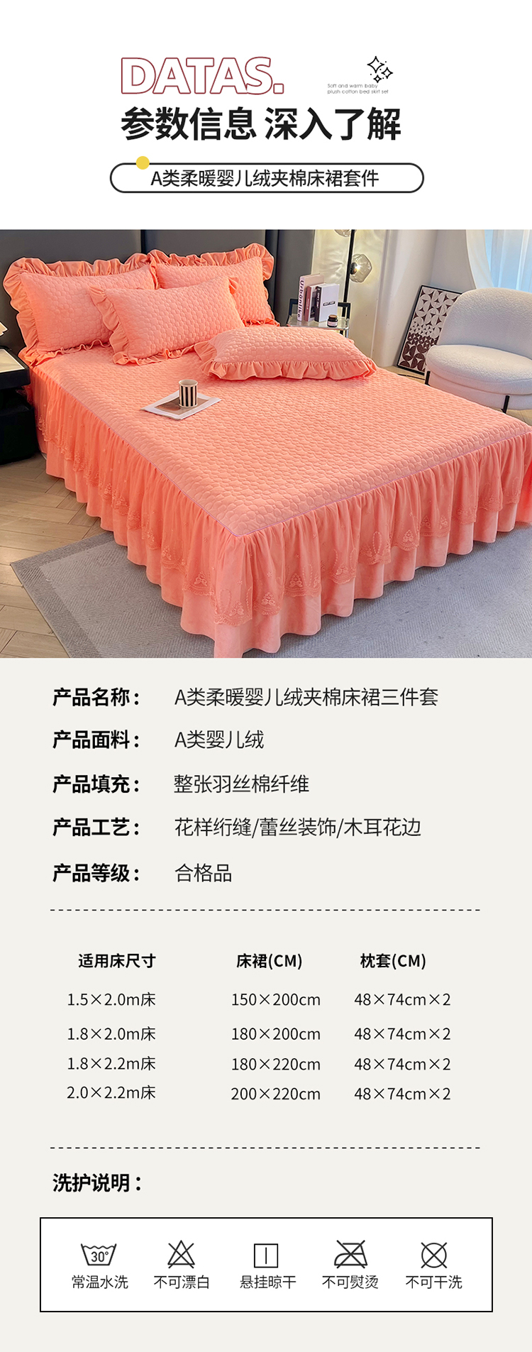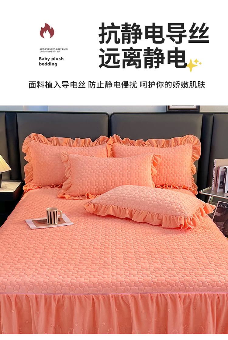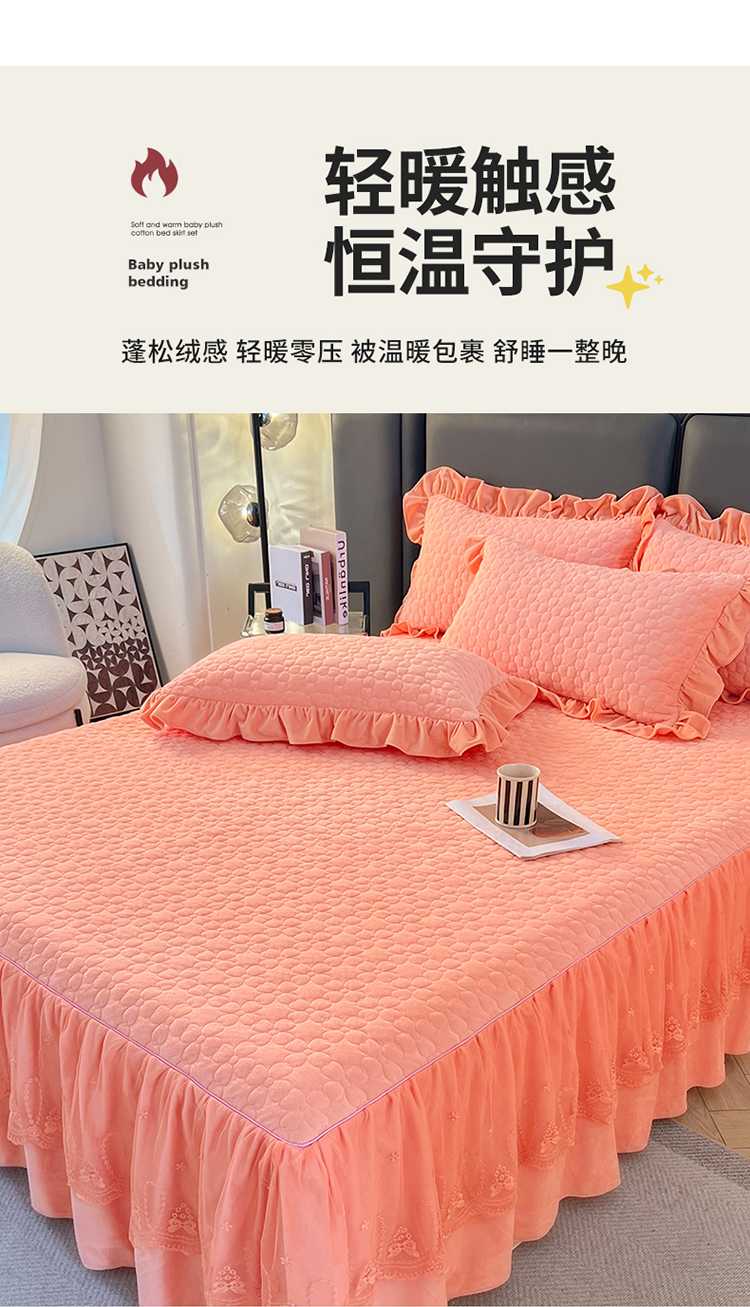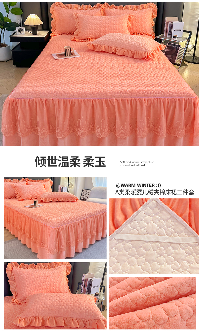• 91家纺网 家纺一手货源 找家纺 2024新款A类柔暖婴儿绒夹棉床裙三件套-倾世温柔 倾世温柔 柔玉