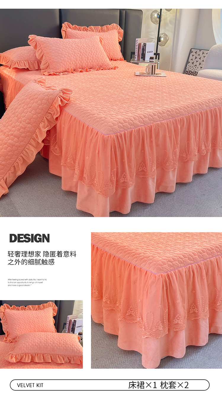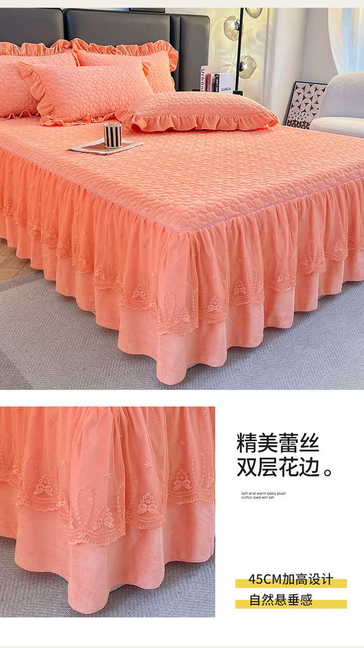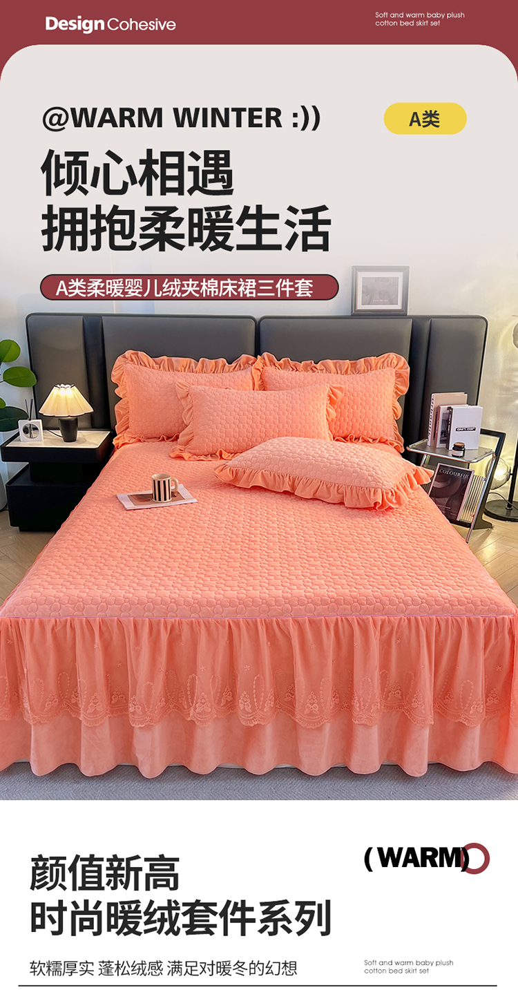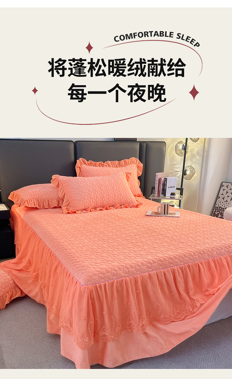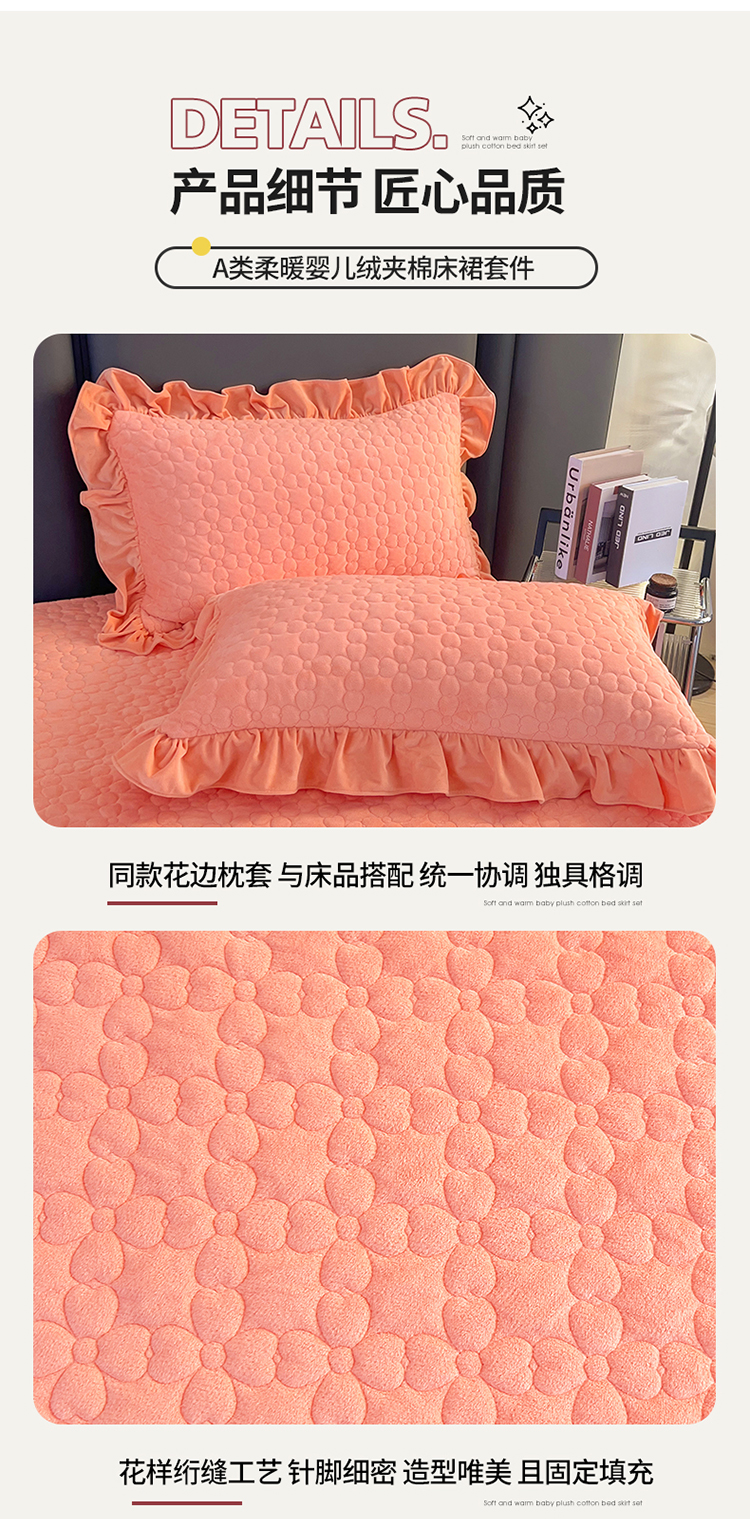 • 91家纺网 家纺一手货源 找家纺 2024新款A类柔暖婴儿绒夹棉床裙三件套-倾世温柔 倾世温柔 柔玉