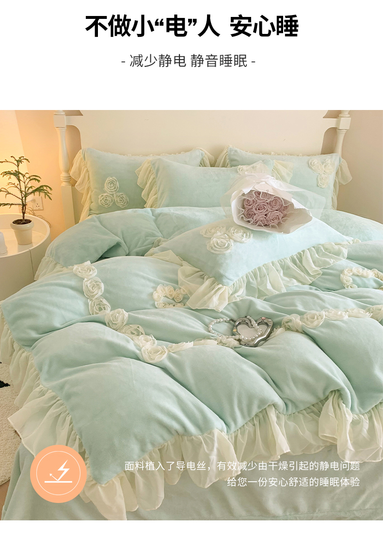 (总)富盛家纺 2025新款牛奶绒床裙款蕾丝刺绣四件套韩版法式公主风--睡美人系列,睡美人-粉,睡美人-白,睡美人-黄,睡美人-蓝,睡美人-绿,睡美人-紫