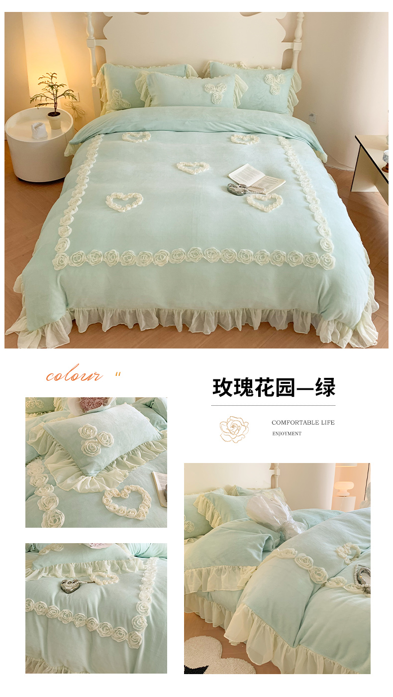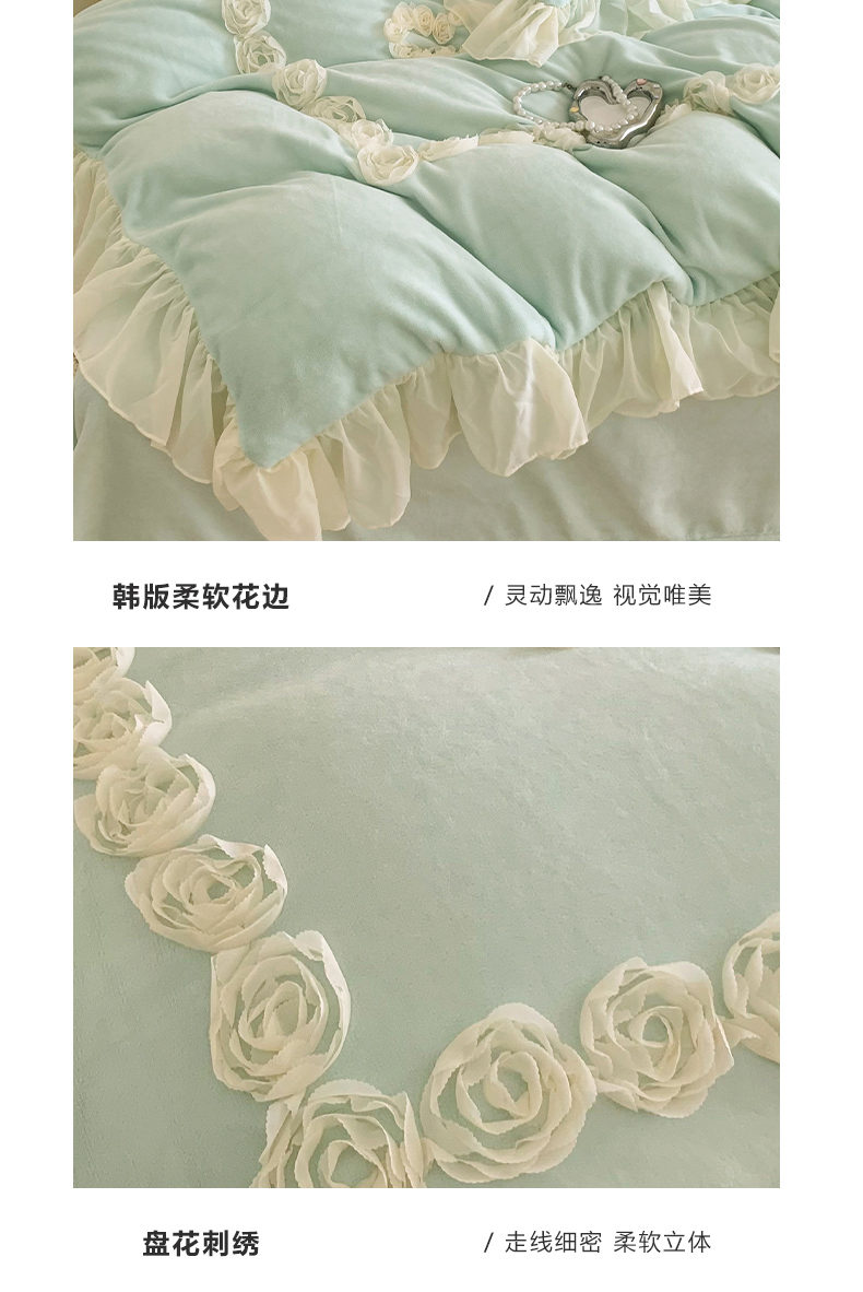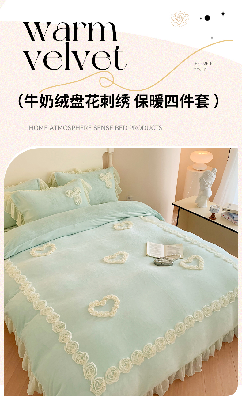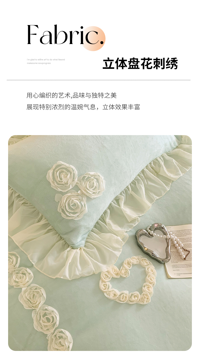 商品名称:富盛家纺 2024新款牛奶绒盘花刺绣四件套-玫瑰花园 玫瑰花园-绿