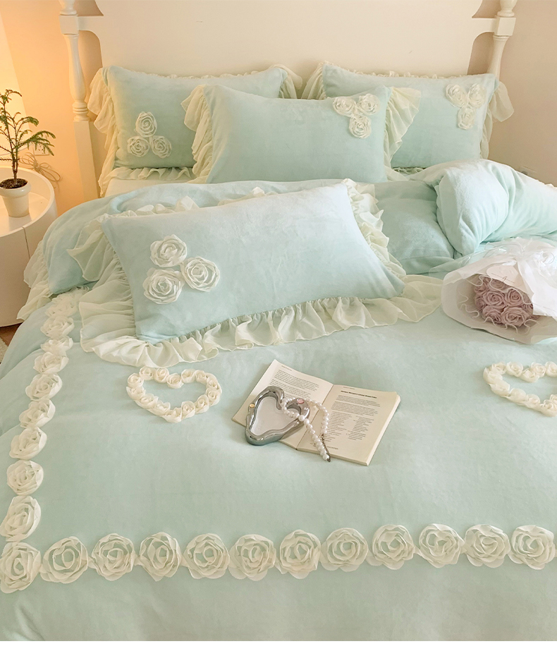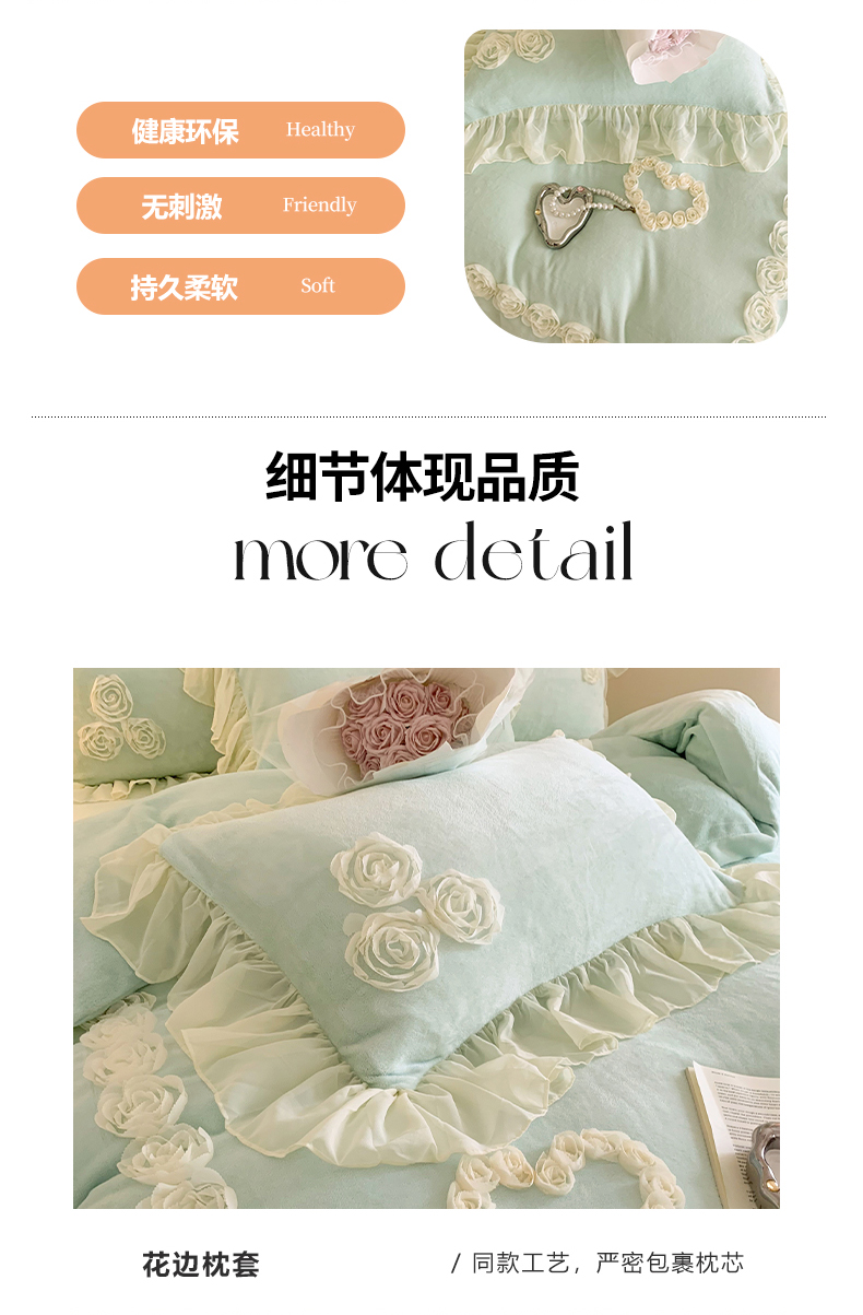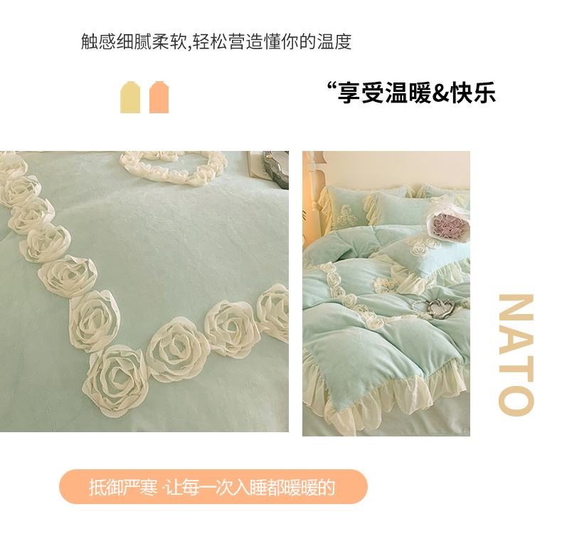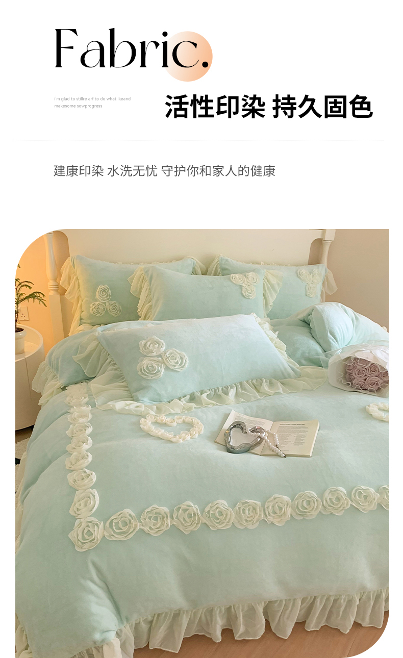 商品名称:富盛家纺 2024新款牛奶绒盘花刺绣四件套-玫瑰花园 玫瑰花园-绿