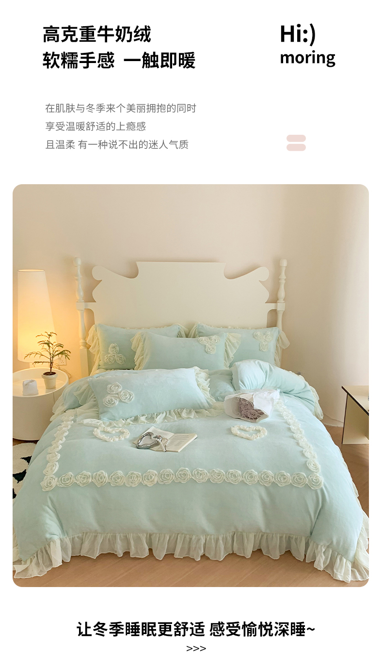 (总)富盛家纺 2025新款牛奶绒床裙款盘花刺绣四件套韩版法式公主风--梦洛伊系列,梦洛伊-粉,梦洛伊-绿,梦洛伊-黄,梦洛伊-白,梦洛伊-蓝,梦洛伊-紫