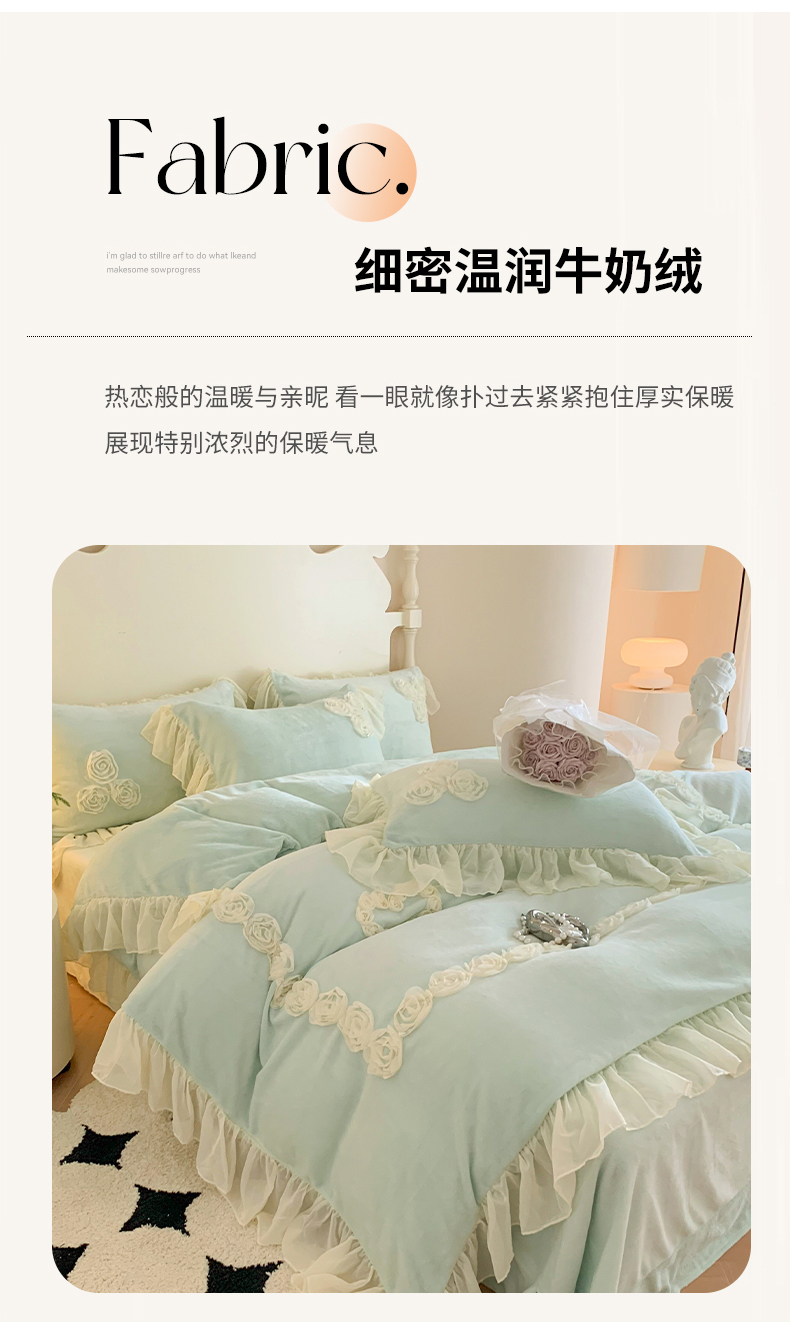 (总)富盛家纺 2024牛奶绒立体刺绣四件套韩版公主风四件套,芬妮—温暖白,芬妮—温暖粉,芬妮—温暖绿,芬妮—温暖黄,芬妮—温暖紫,芬妮—温暖蓝