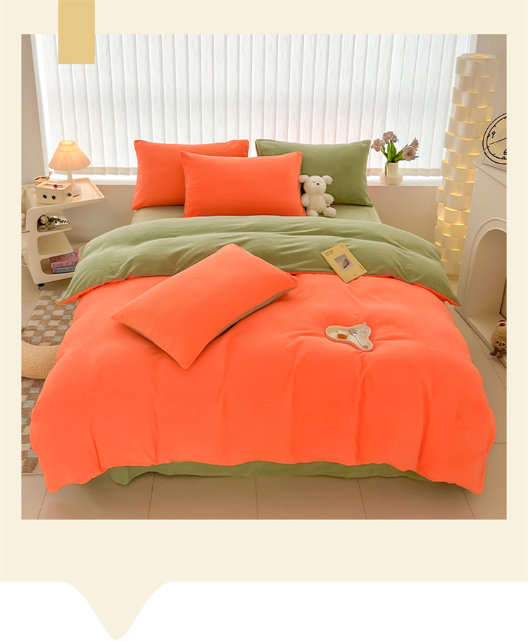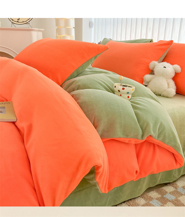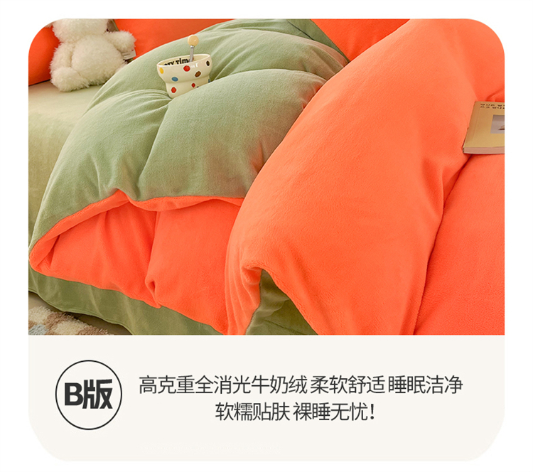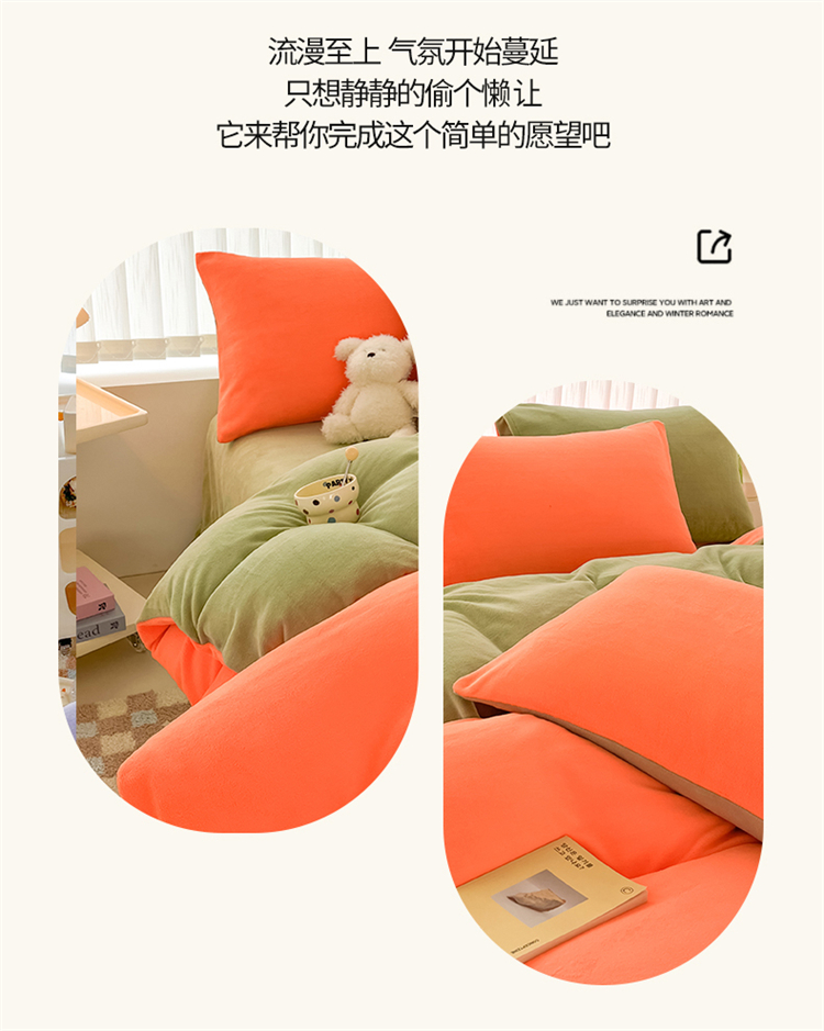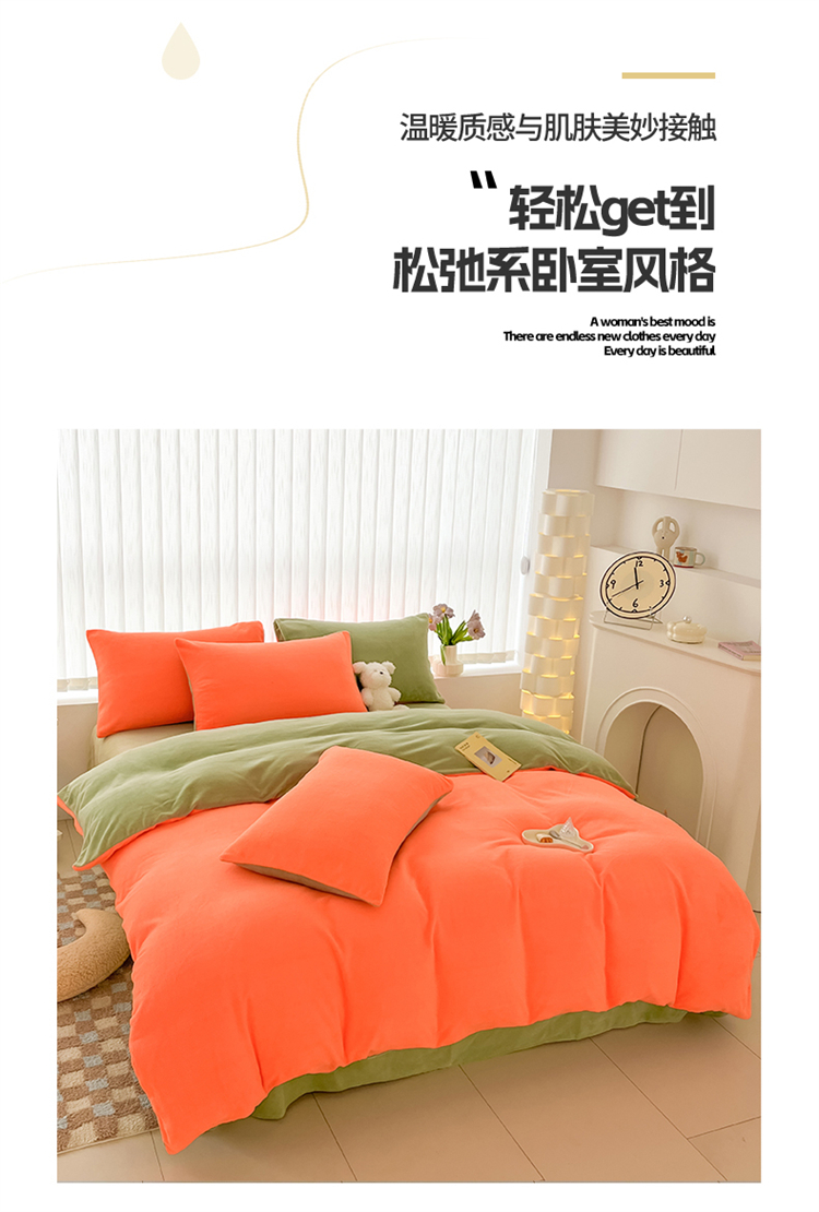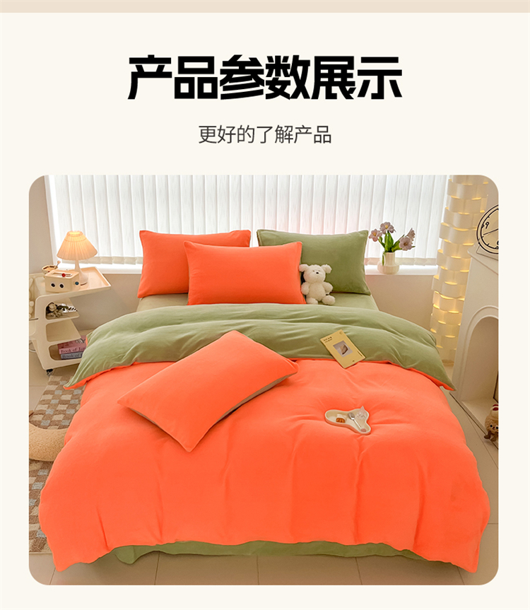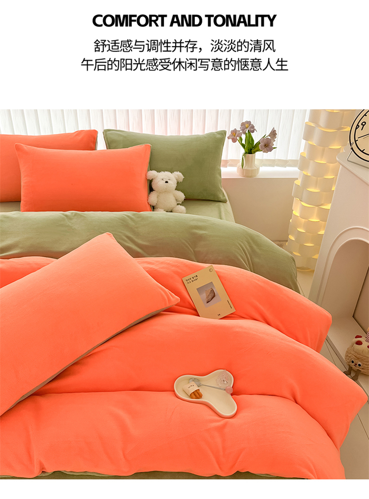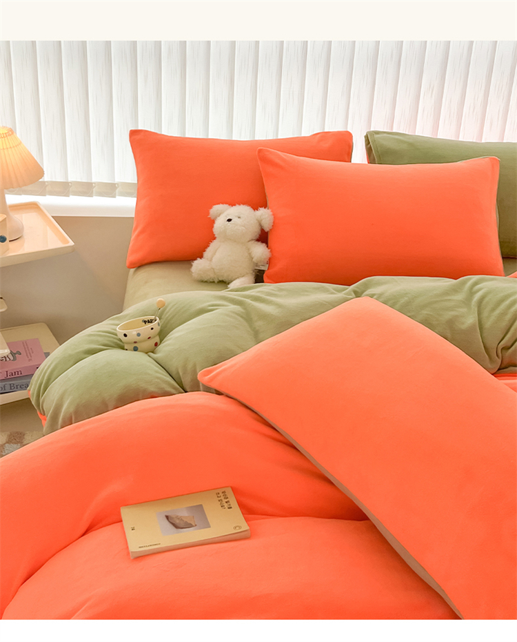 商品名称:言熙居 2024新款纯色双拼30克8一9斤牛奶绒四件套 艳橙拼果绿