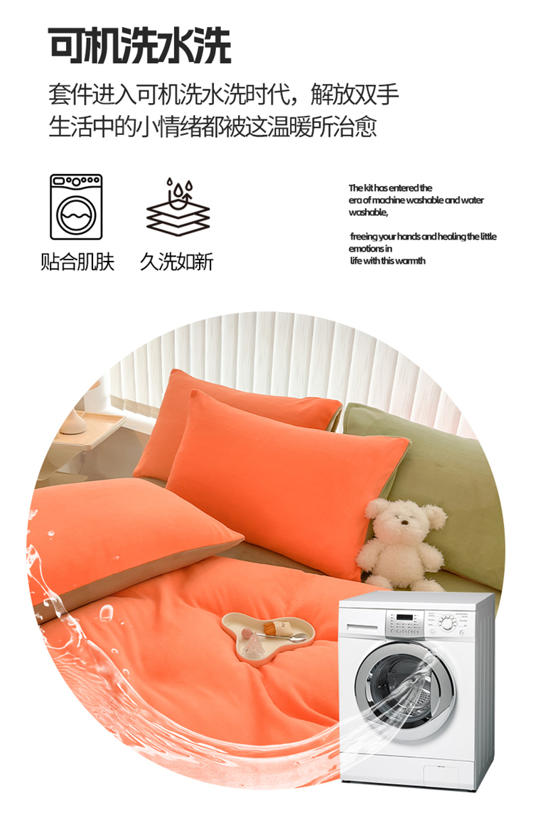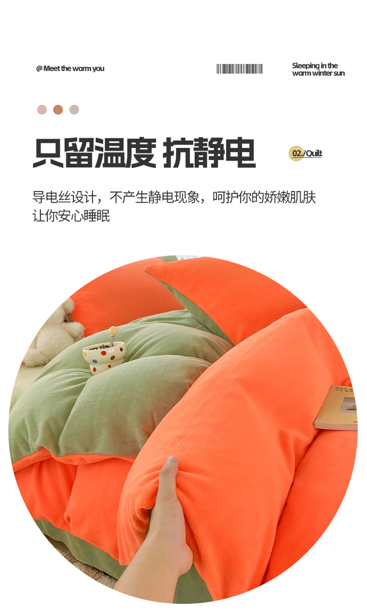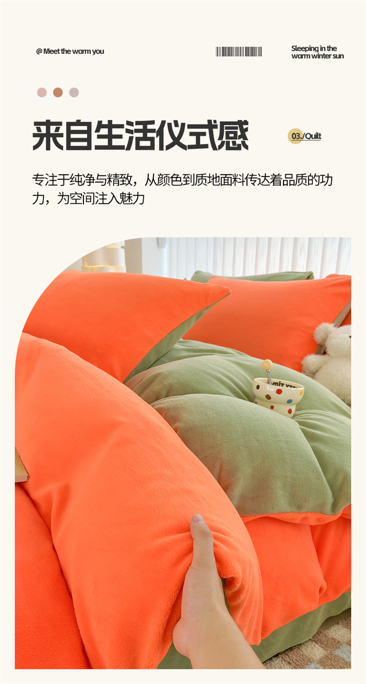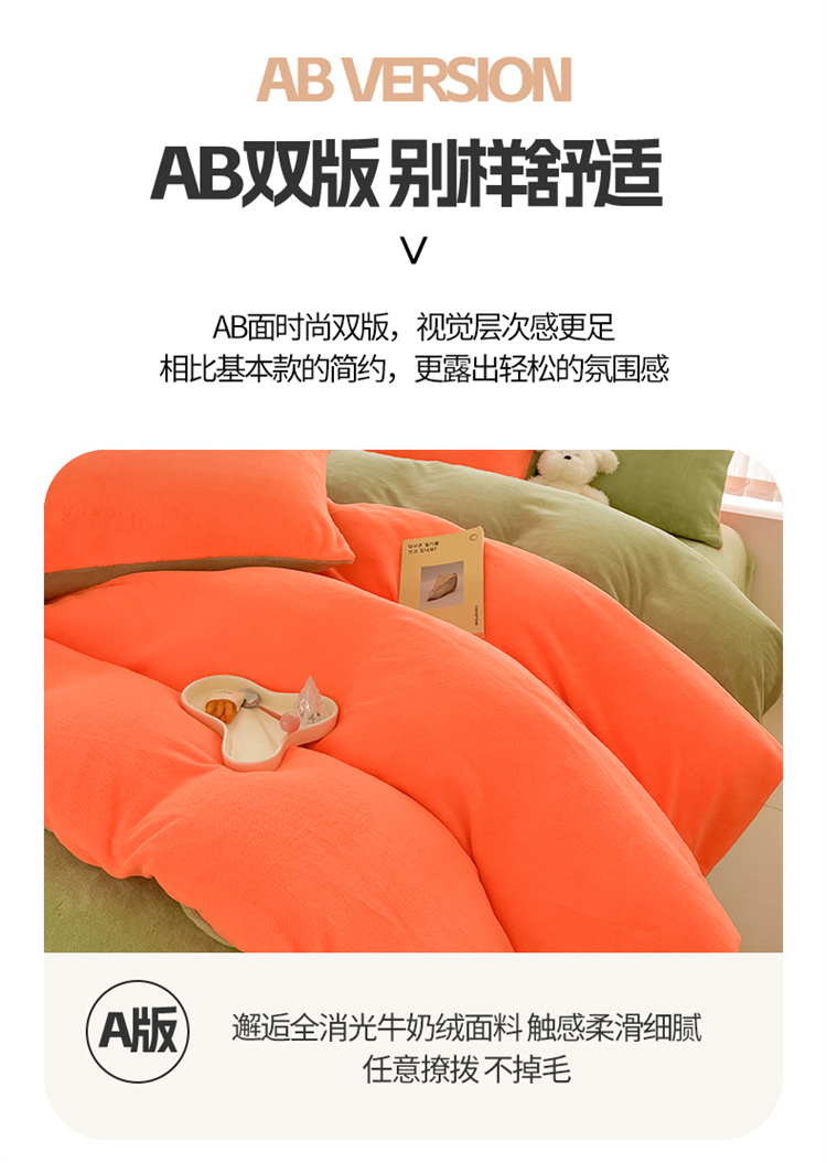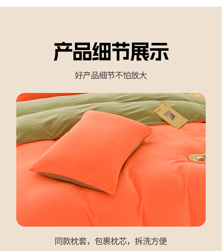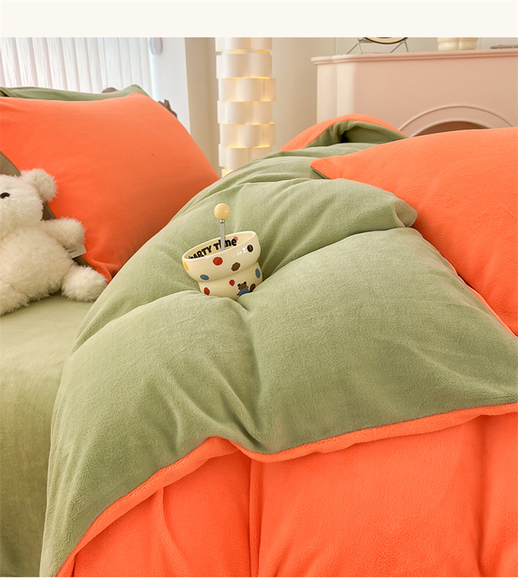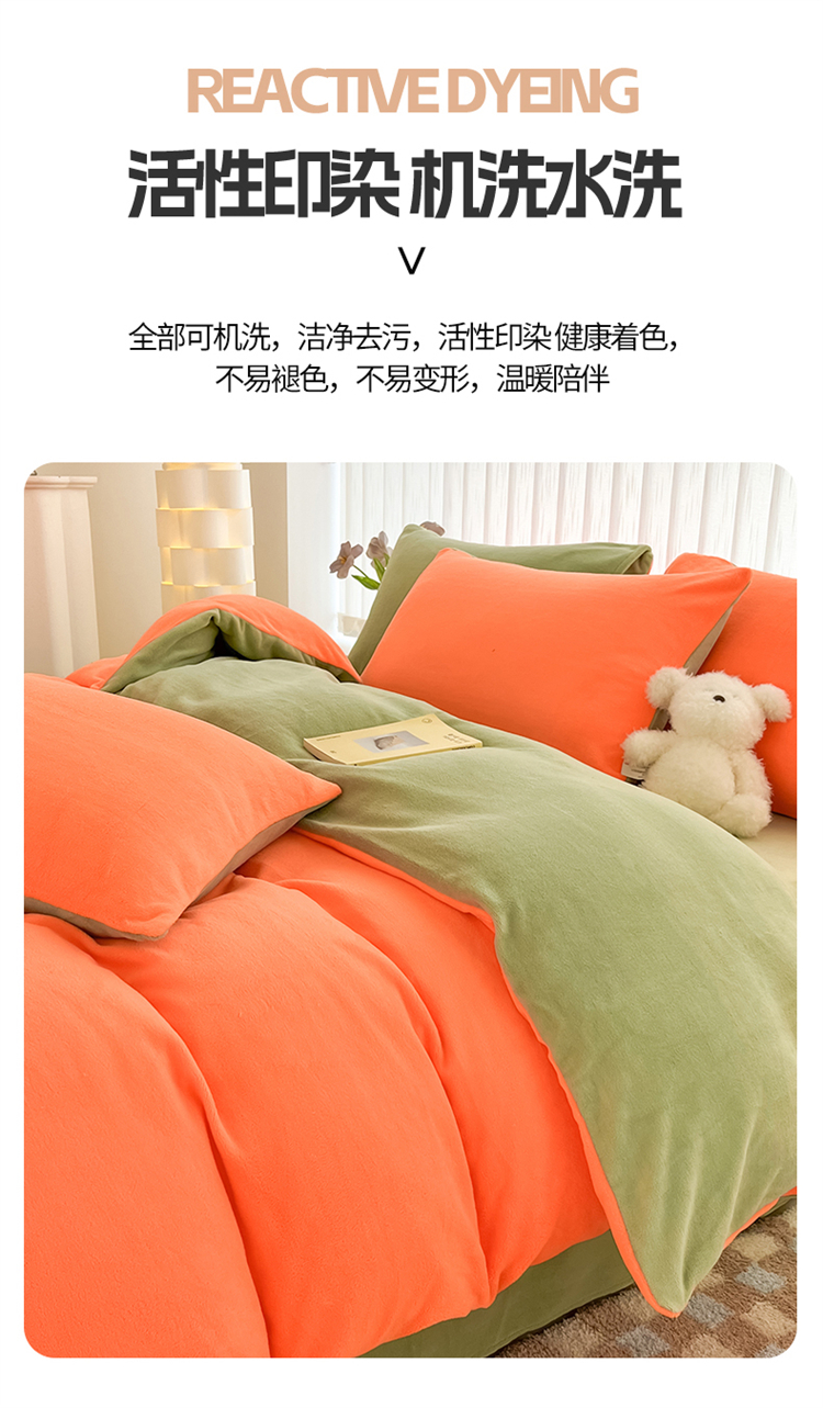商品名称:言熙居 2024新款纯色双拼30克8一9斤牛奶绒四件套 艳橙拼果绿