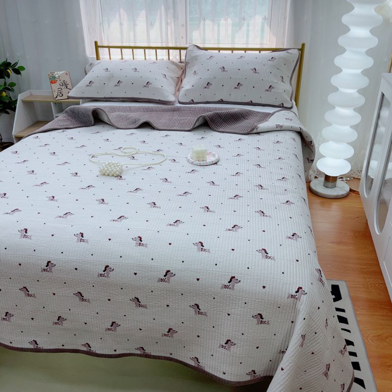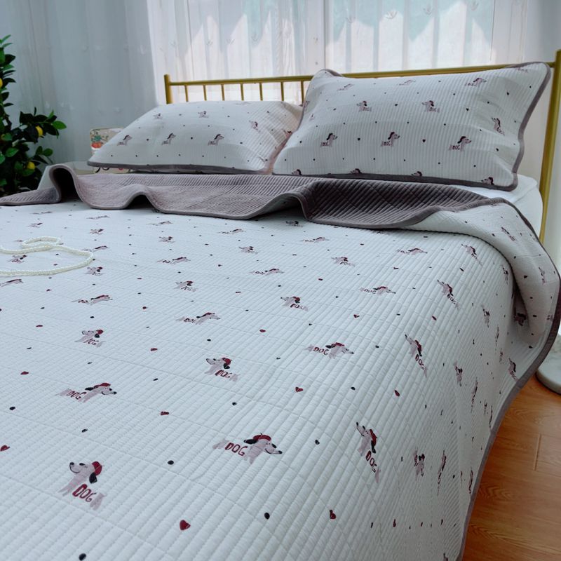 2024新款棉加绒双面两用四季款床盖三件套 波比狗
