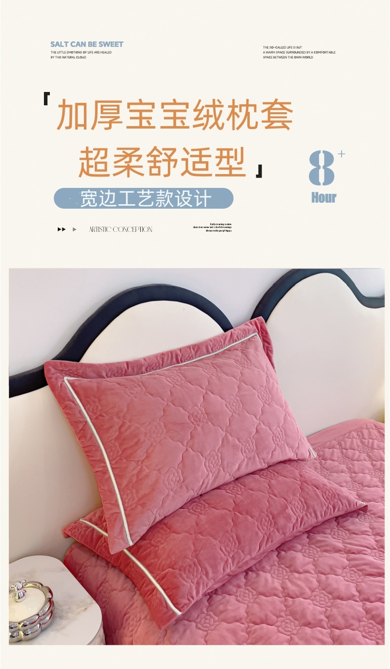 优乐家纺 2025新款高克重宝宝绒夹棉床盖系列单枕套 爱丽丝-魅力豆沙