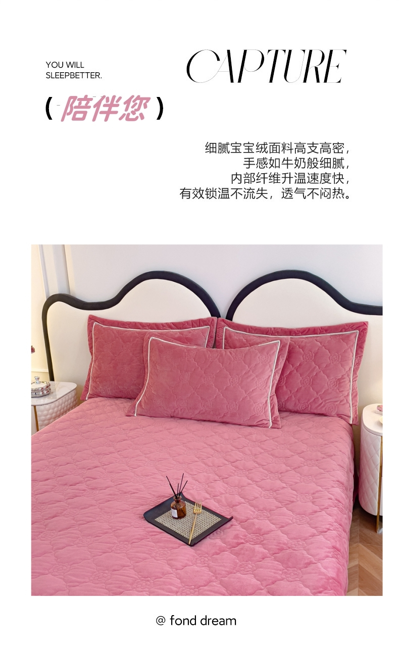 商品名称:优乐家纺 2025新款高克重宝宝绒夹棉床盖系列单枕套 爱丽丝-魅力豆沙