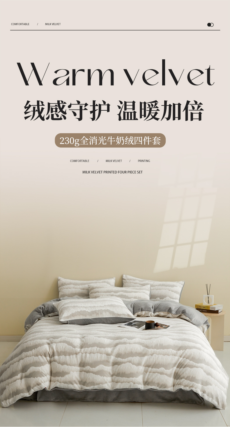 当前位置: 91家纺网 > 商品网购 > 床品套件 > 四件套 > 牛奶绒四件套 > 菡宝 2024新款雕花绒230g全消光牛奶绒四件套-行云流水 行云流水-灰