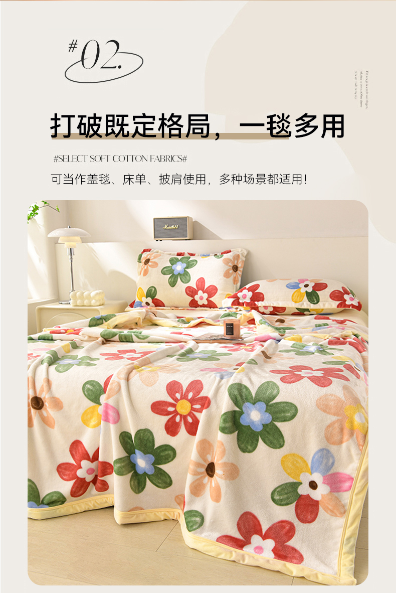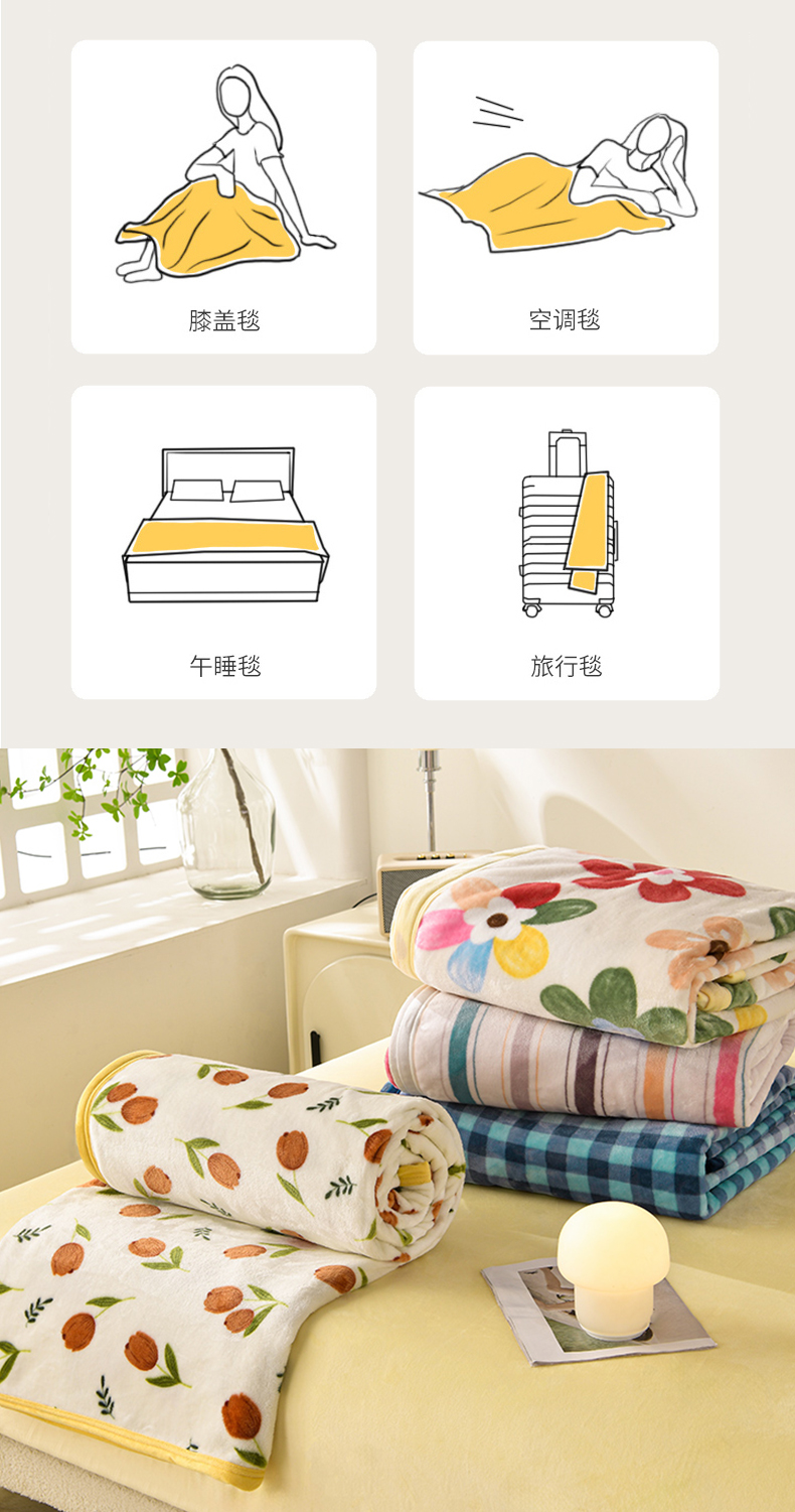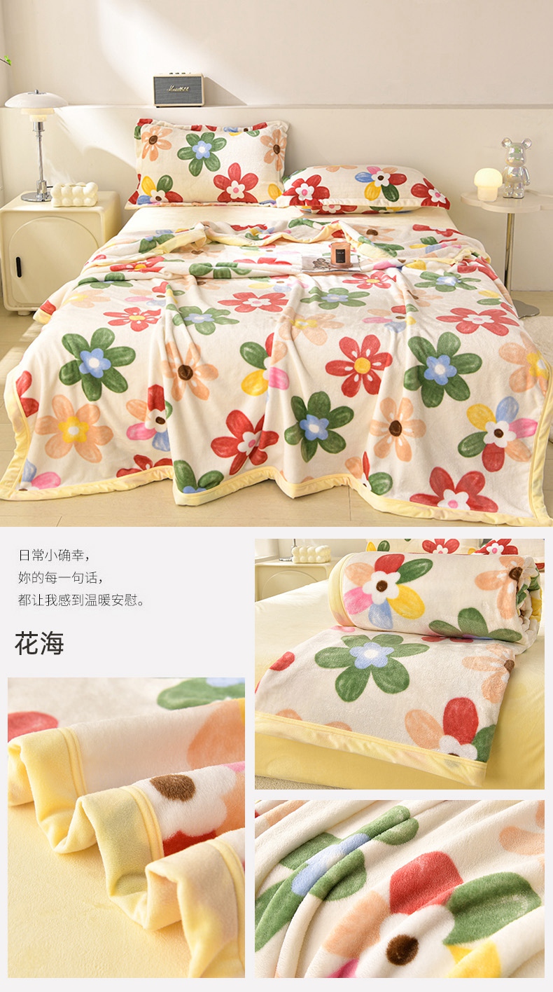 圣楚 2024新款300g加厚保暖云貂绒双面毯子办公室午睡毛毯直播 花海