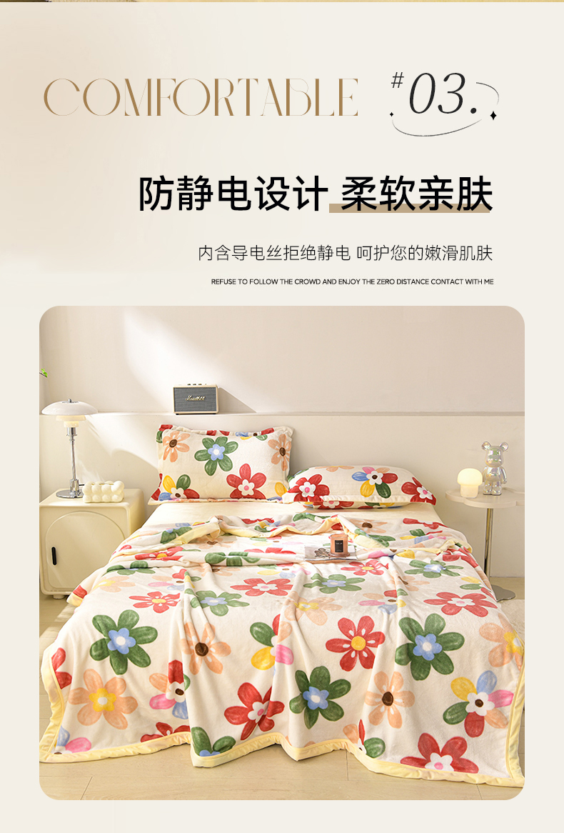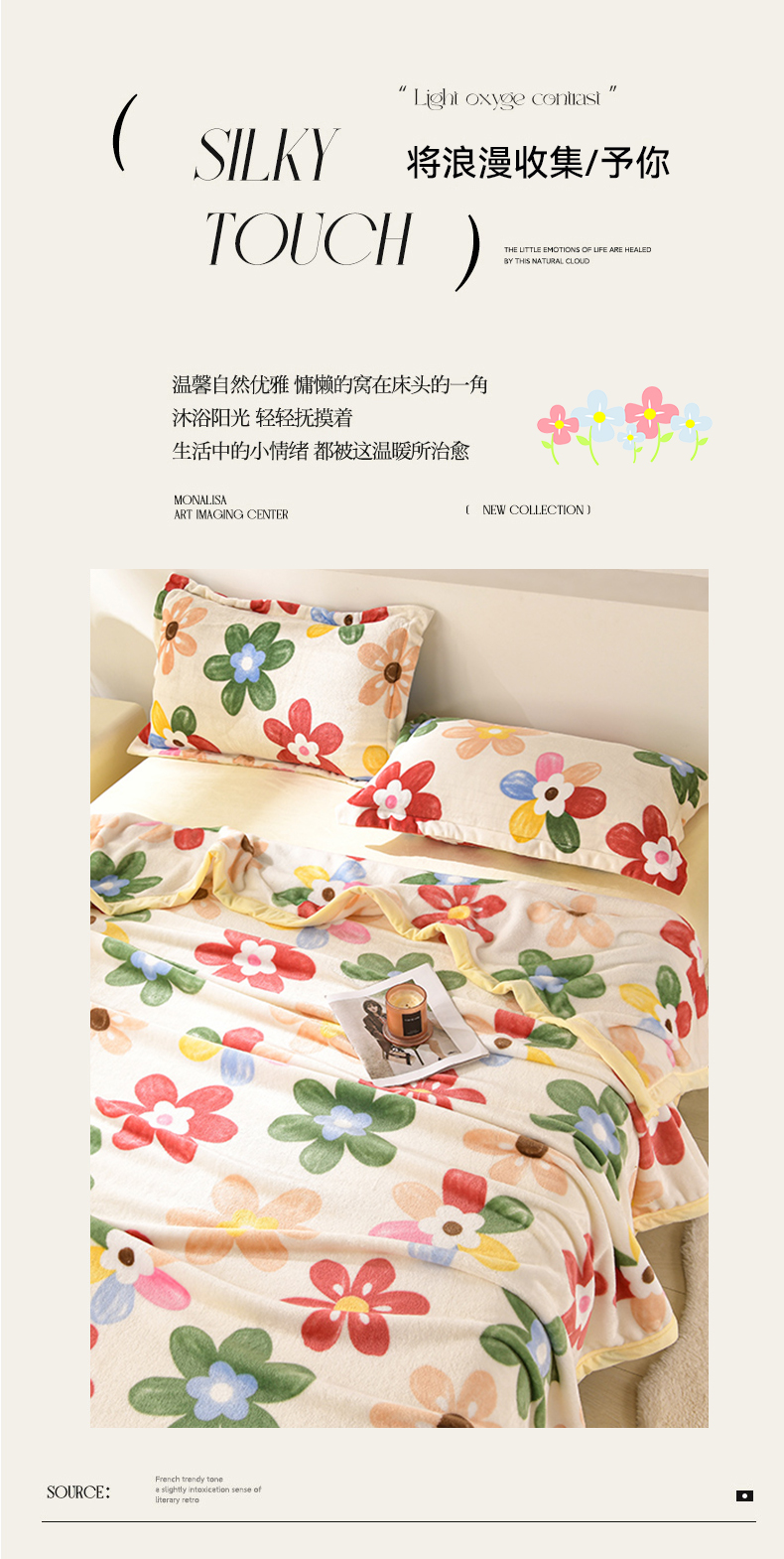 商品名称:圣楚 2024新款300g加厚保暖云貂绒双面毯子办公室午睡毛毯直播 花海