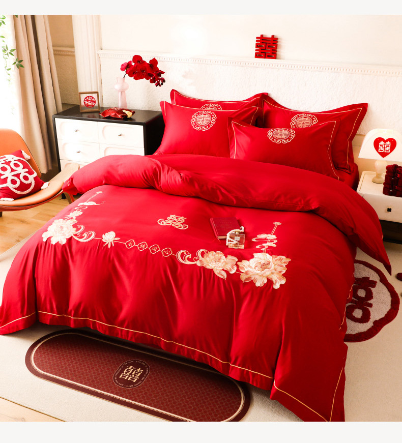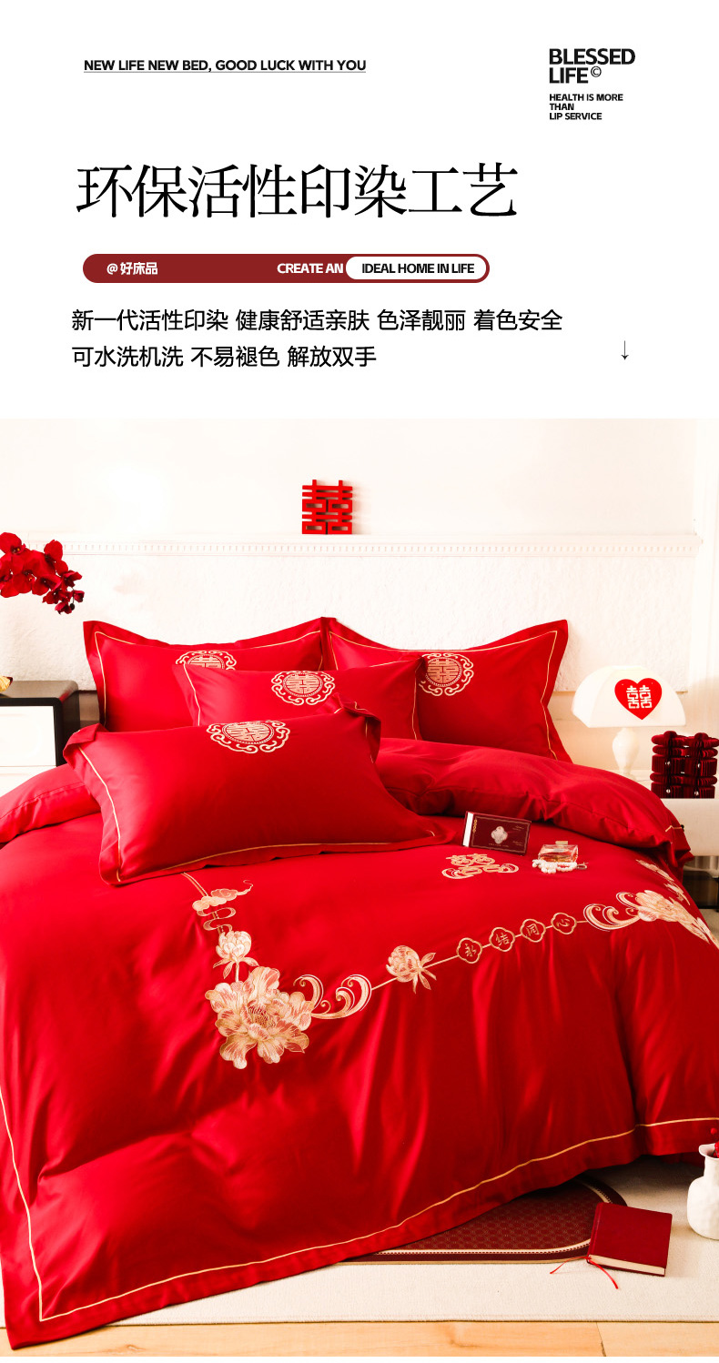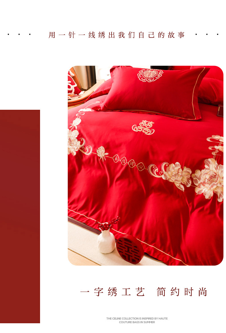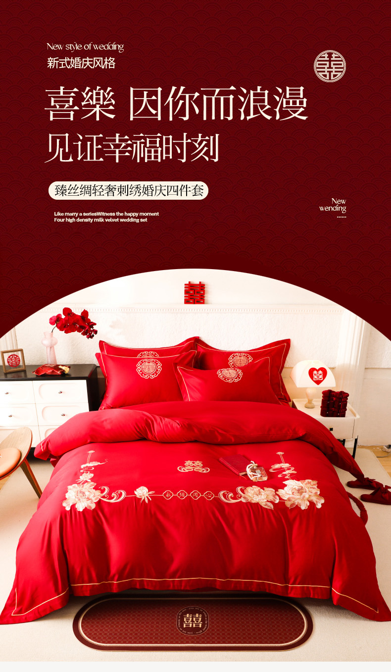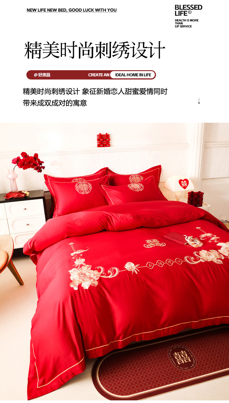 商品名称:菲儿家纺 2024新款臻丝绸刺绣婚庆四件套 爱恋