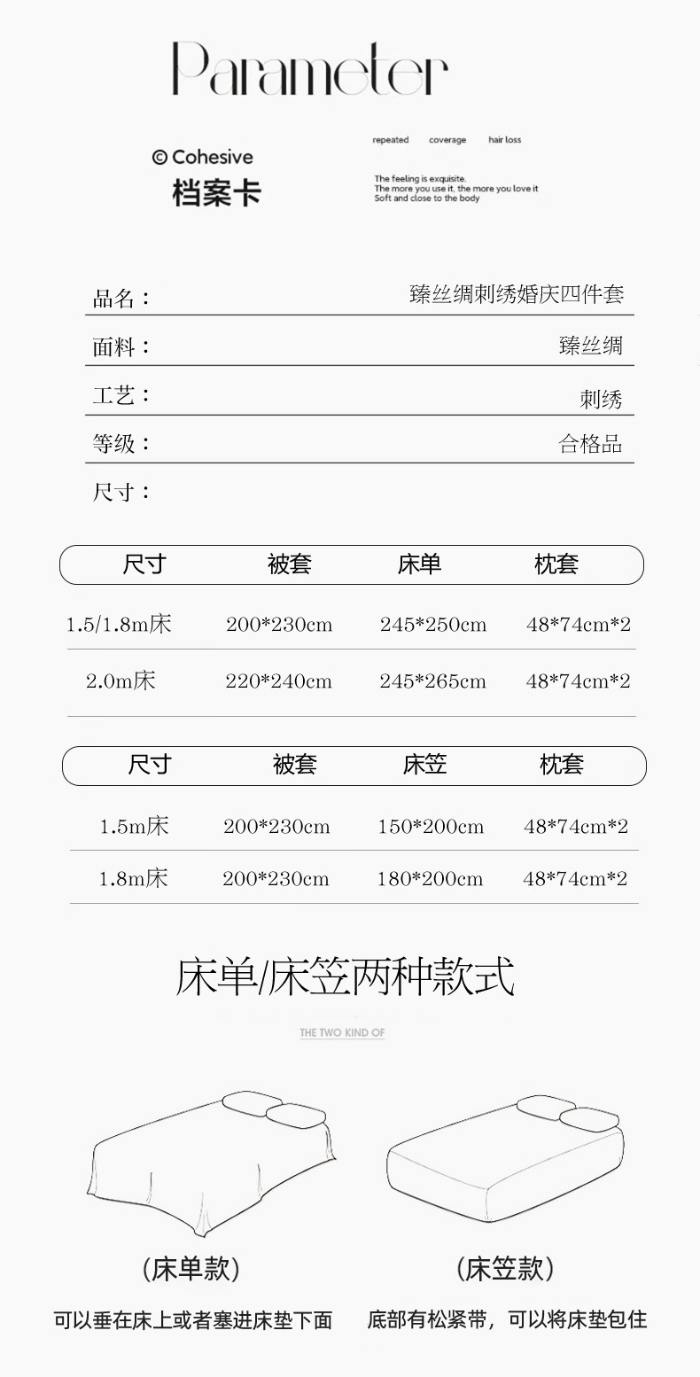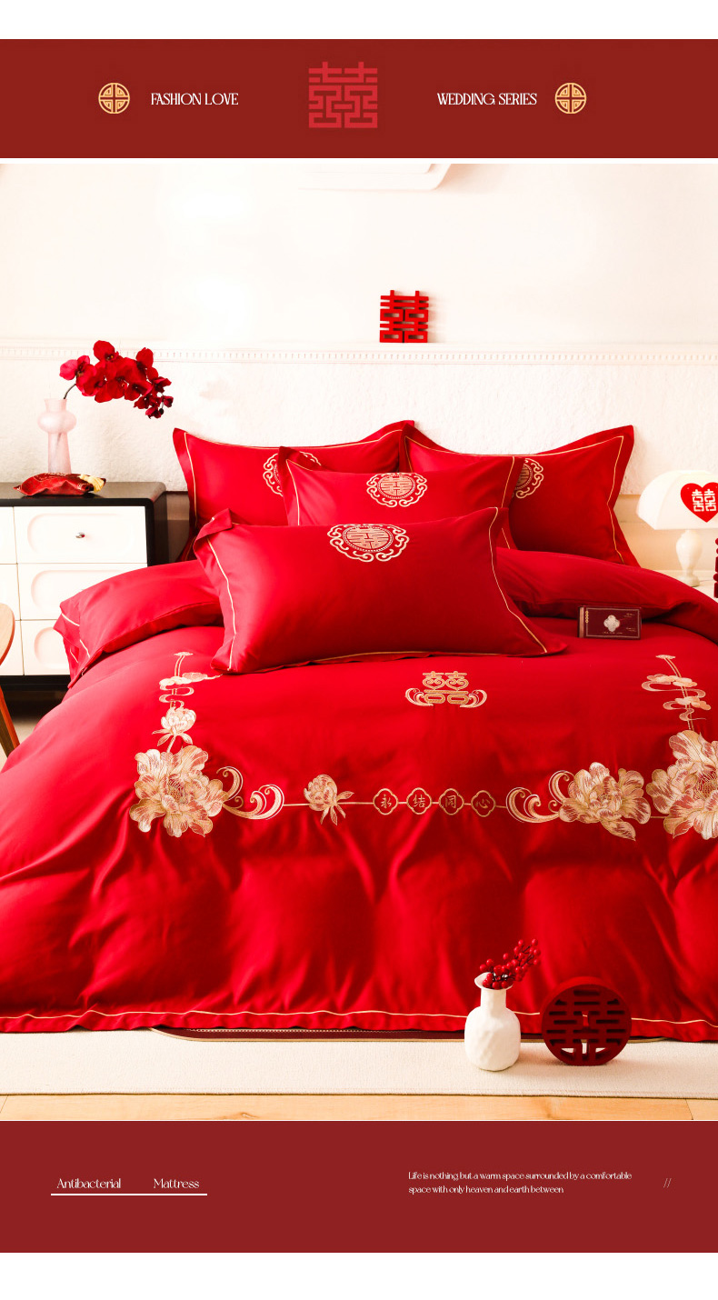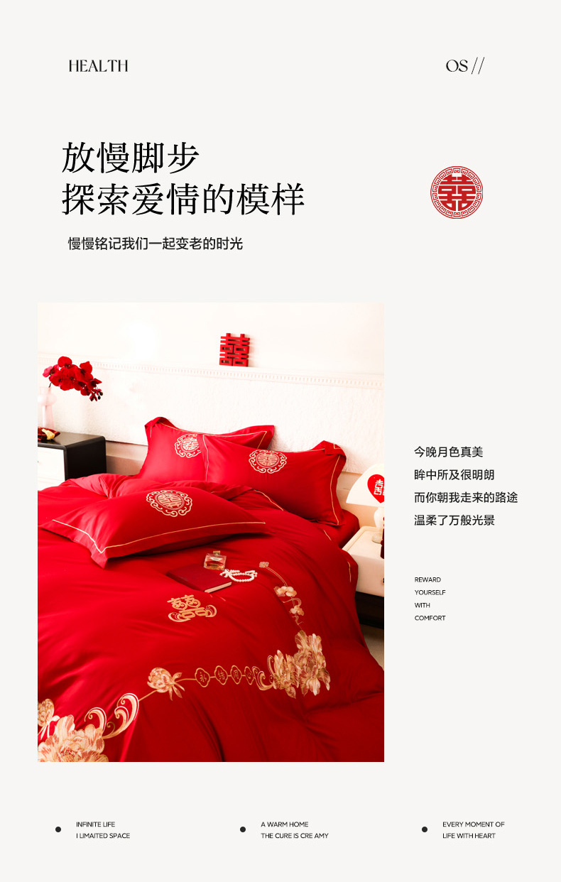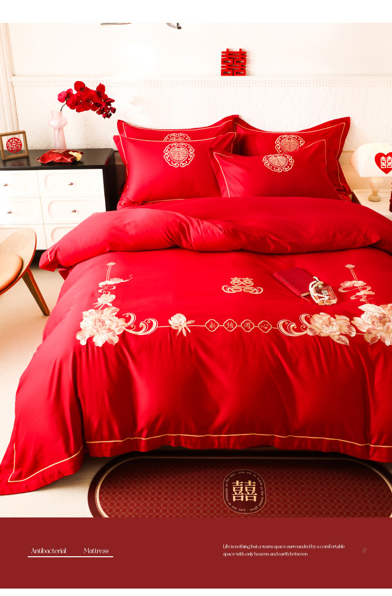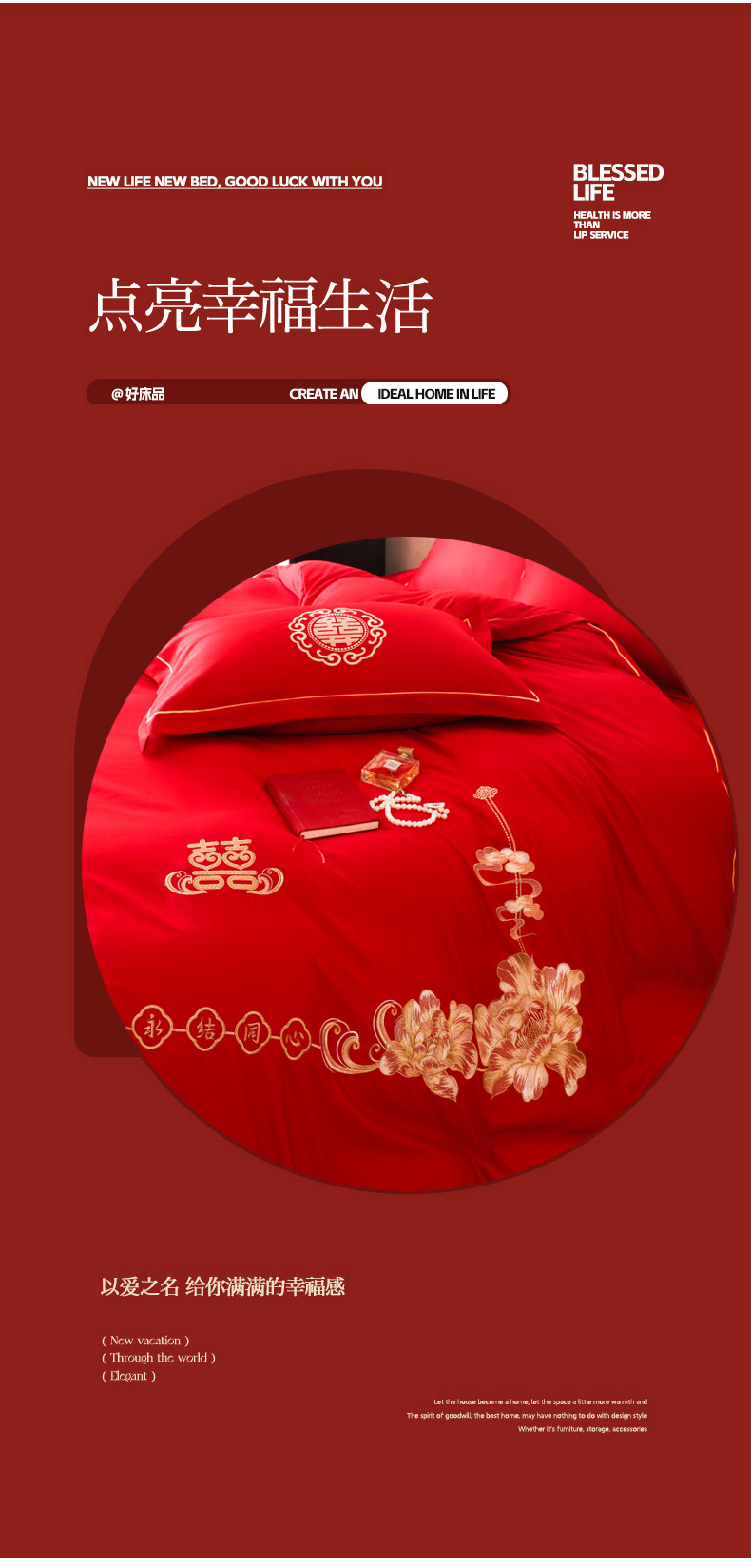 商品名称:菲儿家纺 2024新款臻丝绸刺绣婚庆四件套 爱恋