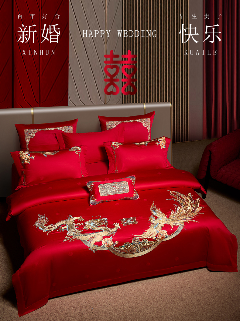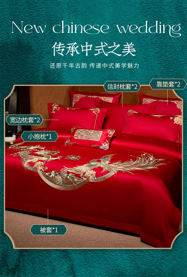 当前位置: 91家纺网 > 商品网购 > 床品套件 > 四件套 > 婚庆四件套 > 高大尚 2025新款长绒棉提花四件套新中式系列 祥龙喜凤