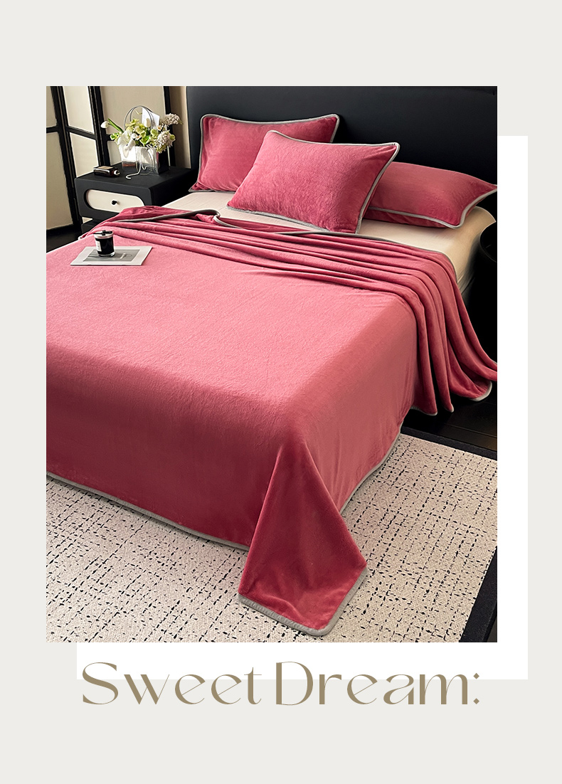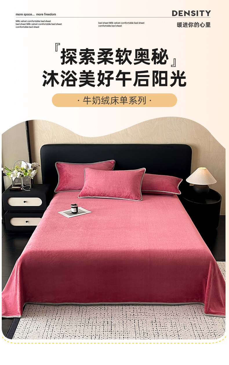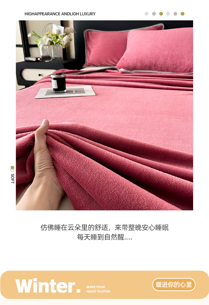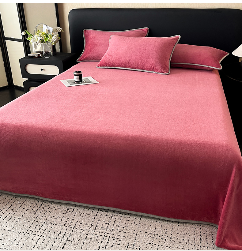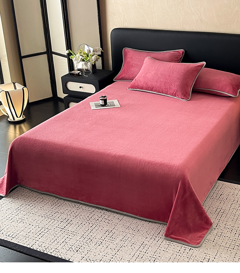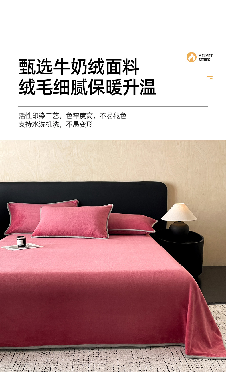 商品名称:全季家居 2024新款A类纯色印花高克重加厚保暖包边牛奶绒床单单件 豆沙