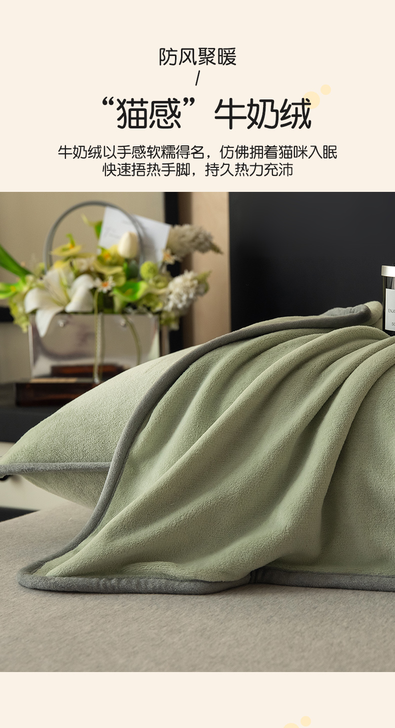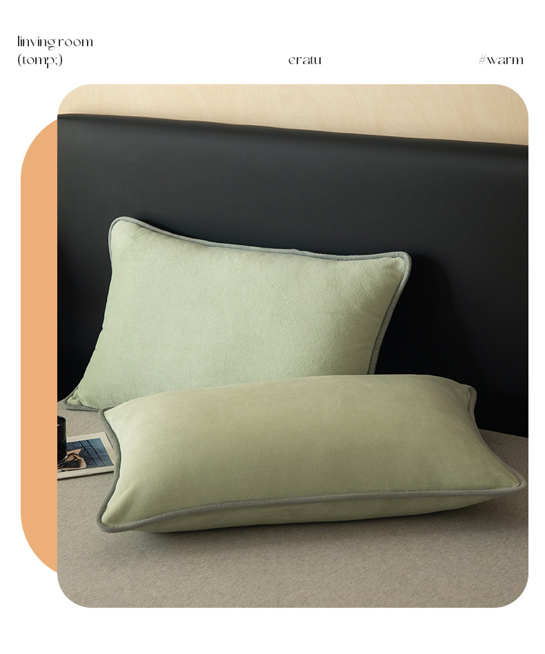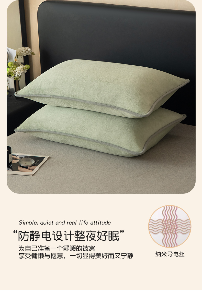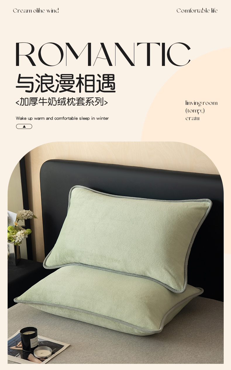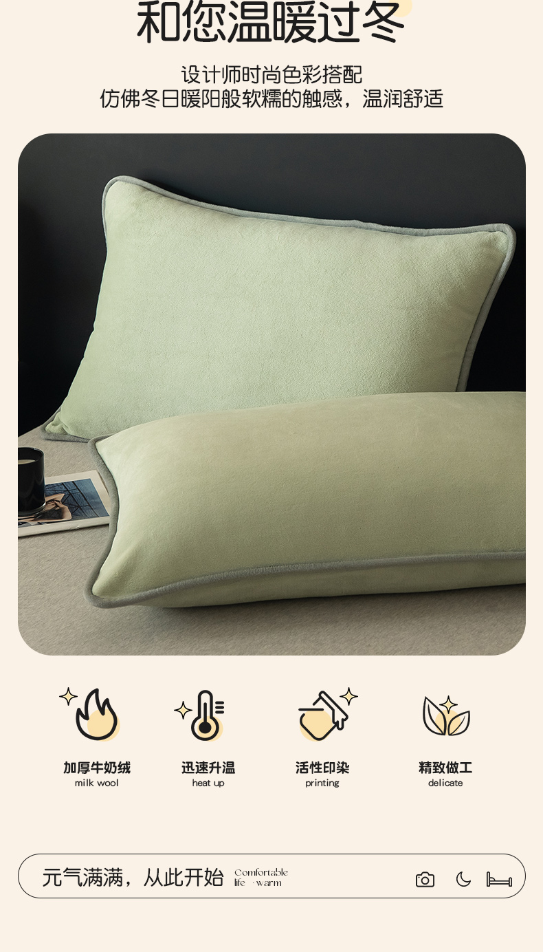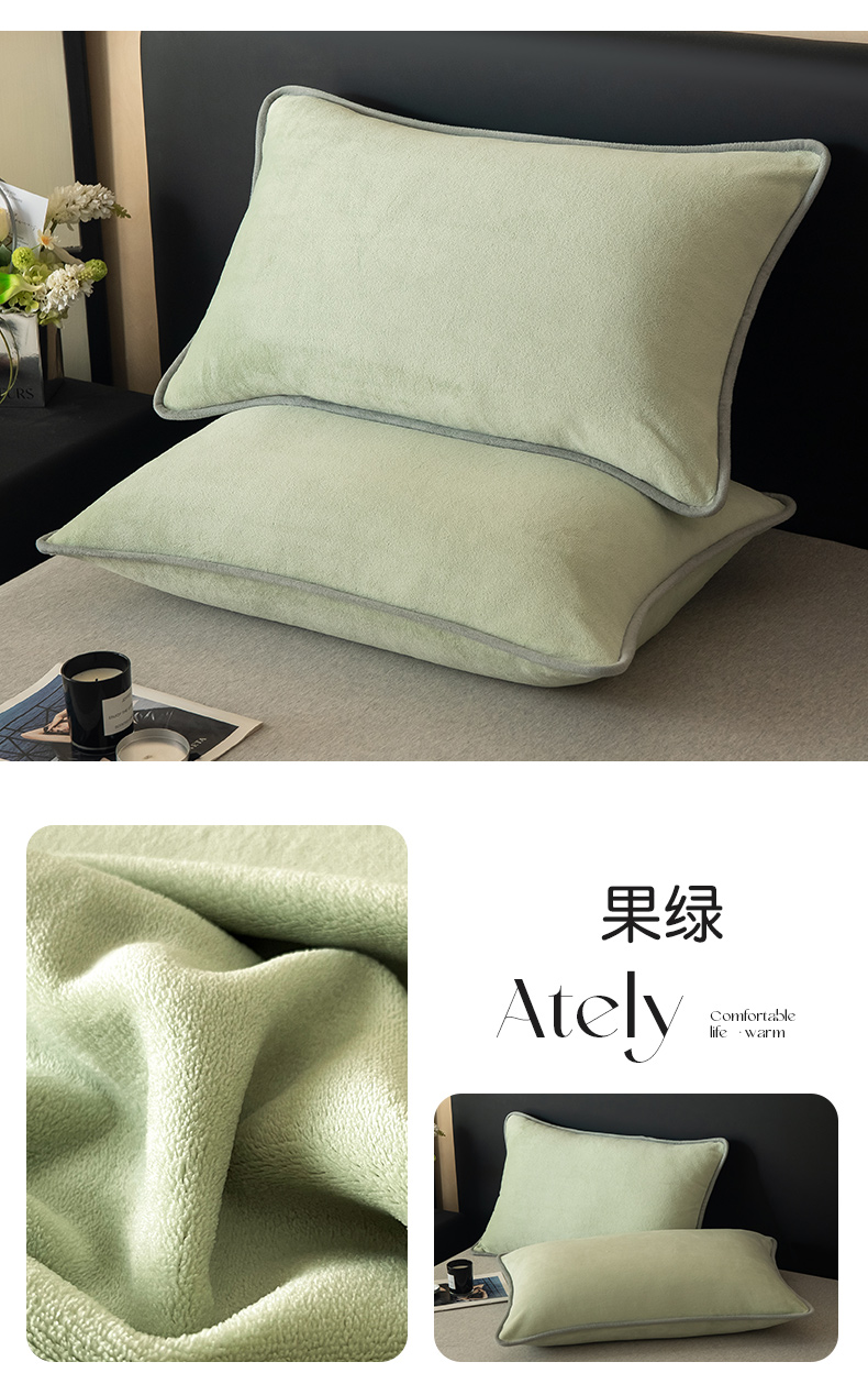商品名称:全季家居 2024新款A类纯色印花高克重加厚保暖包边牛奶绒枕套 果绿