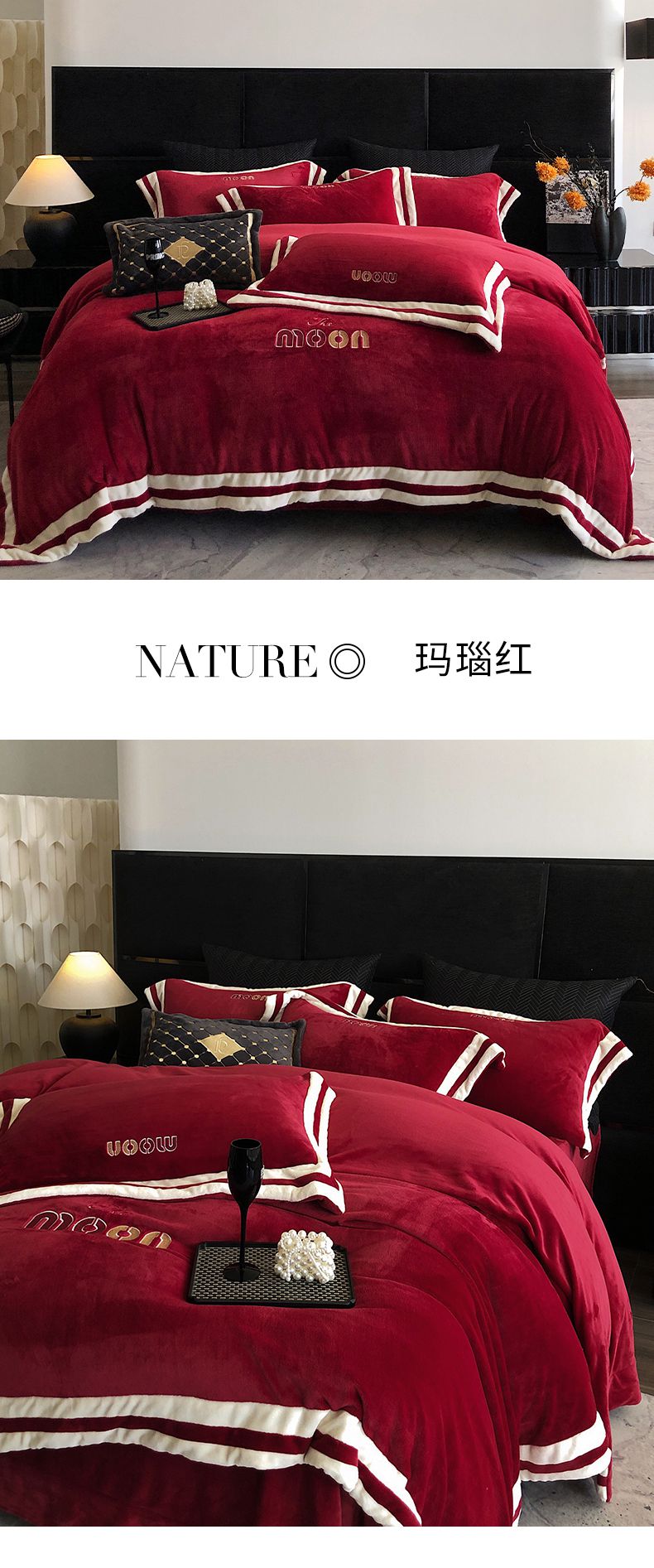 (总)瑞雪家居 2025新款270g全消光牛奶绒四件套-雪芙莉系列,安可拉红,贝壳粉,浅绿,浅紫