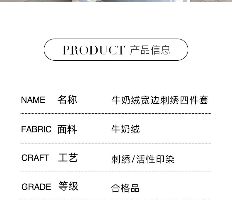 商品名称:(总)瑞雪家居 2024新款牛奶绒宽边刺绣四件套-喜奈