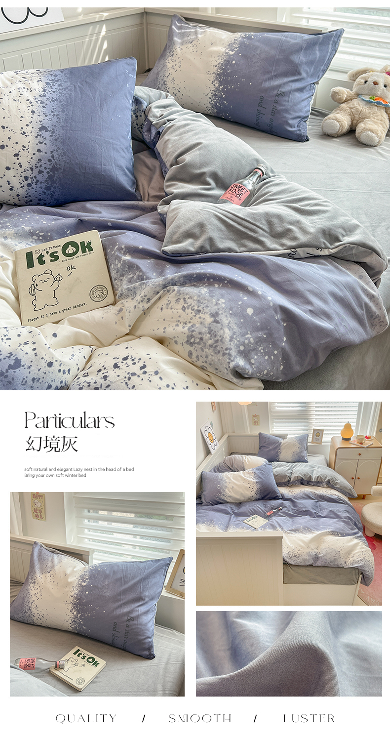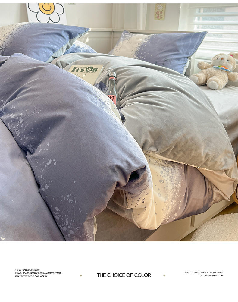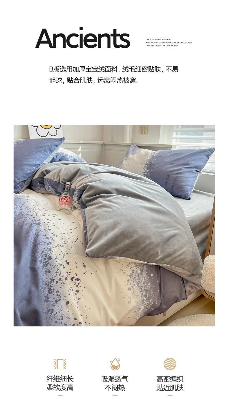 商品名称:盛馨家纺 2024秋冬棉加绒13372全棉宝宝绒牛奶绒床单床笠保暖绒四件套 幻境灰