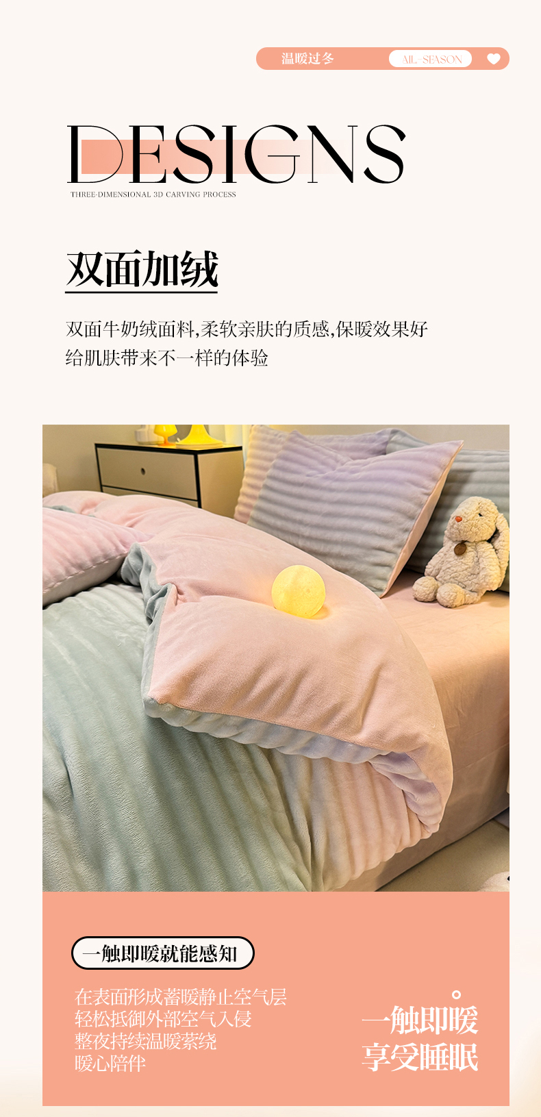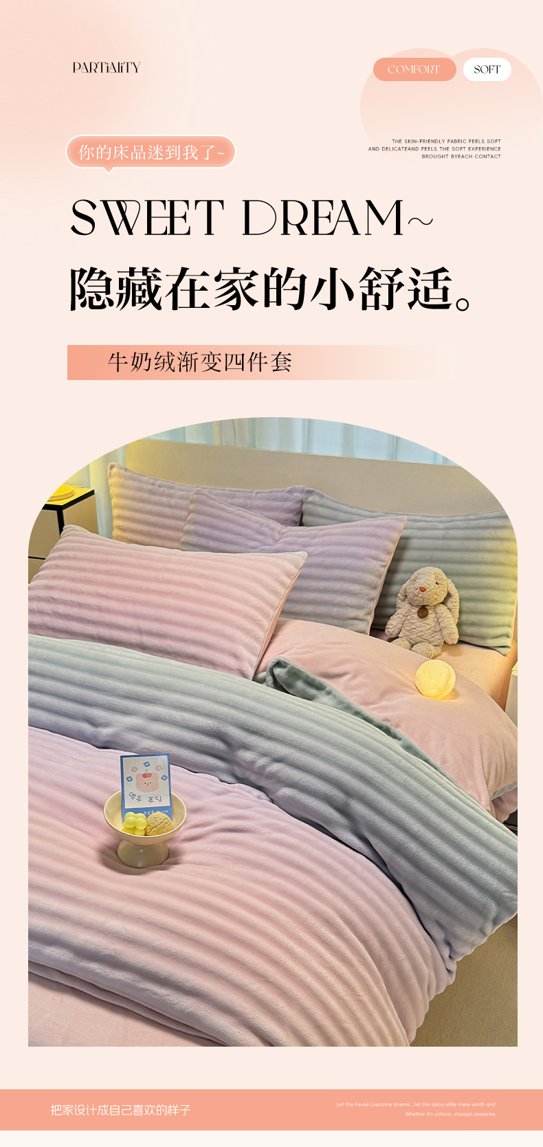 大麦家纺 2024新款牛奶绒渐变泡泡四件套 渐变-绿茵