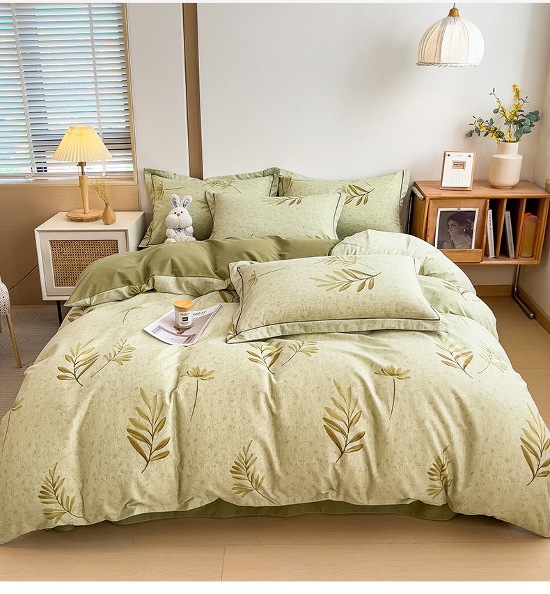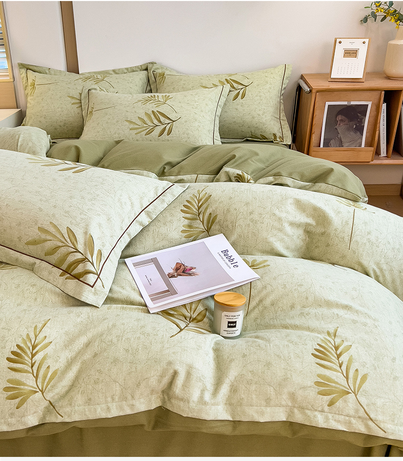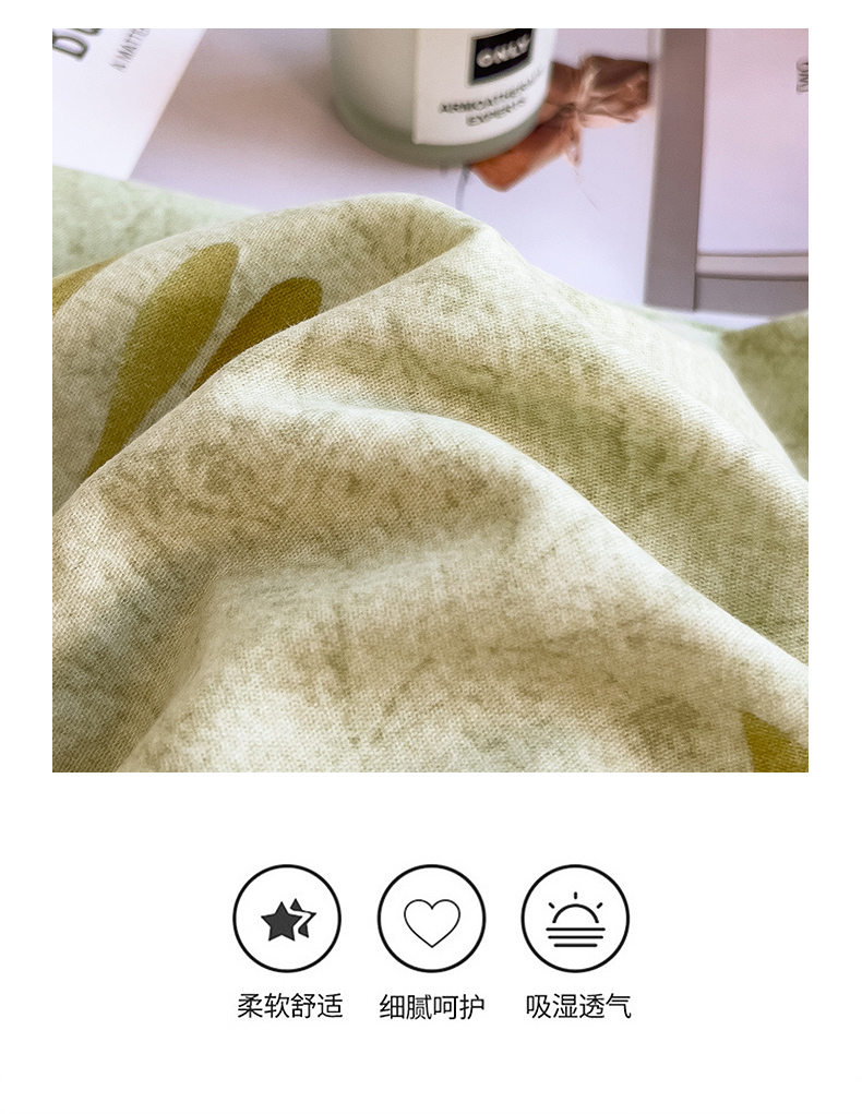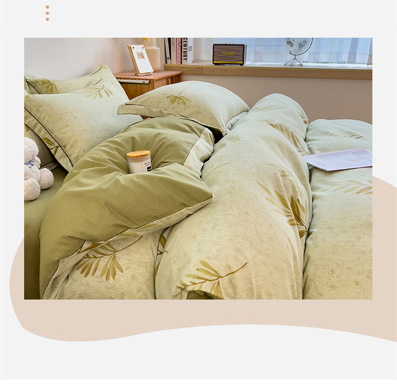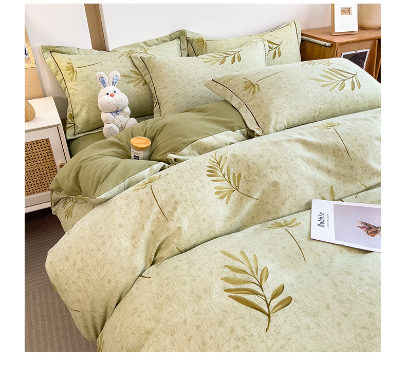 商品名称:芃成家纺 2024新款原棉加厚生态磨毛四件套 绿町