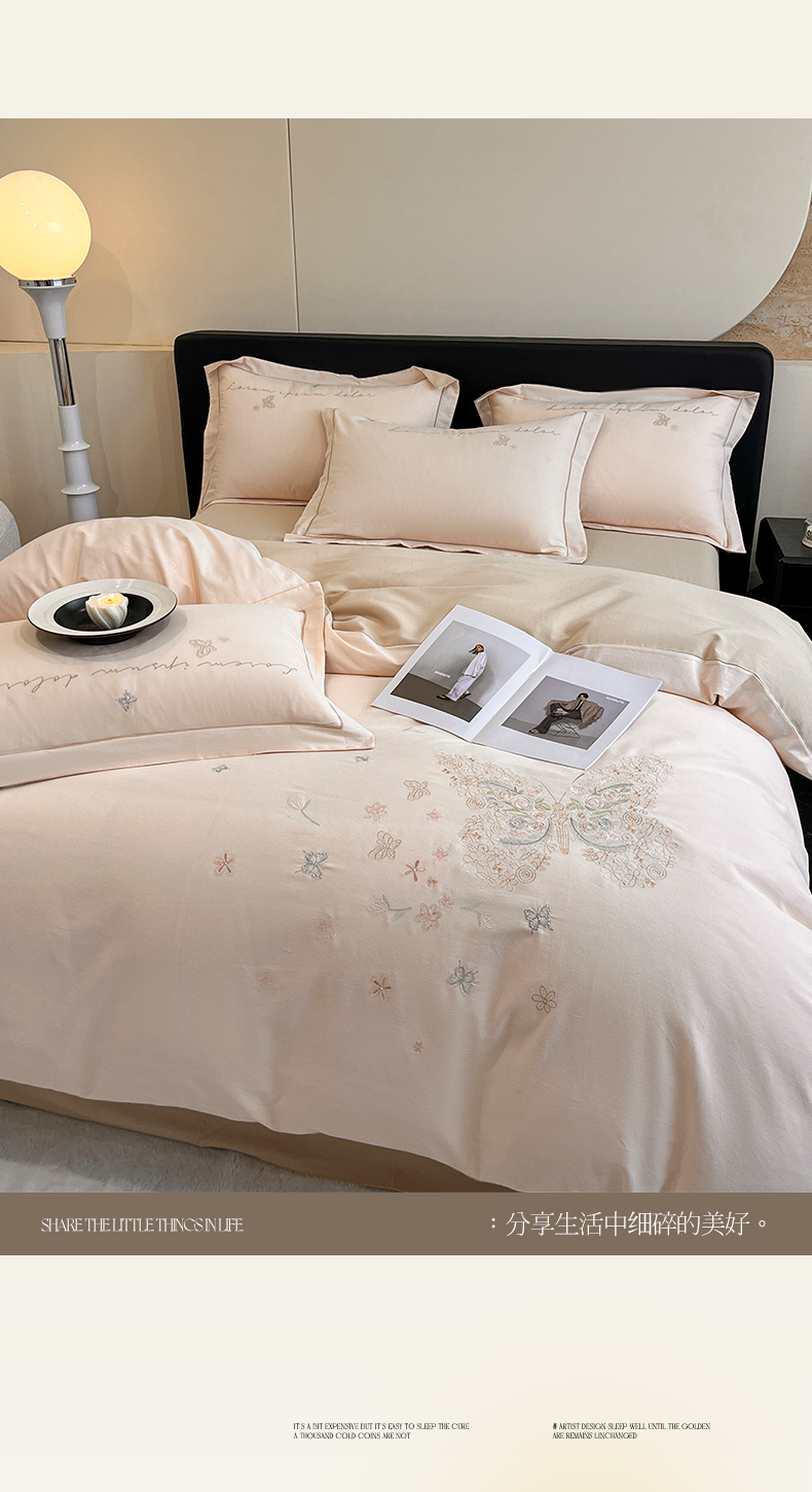 涵宸家纺 2024新款全棉磨毛刺绣四件套--花蝴蝶系列 花蝴蝶-浅粉