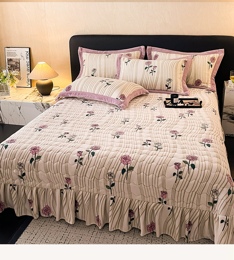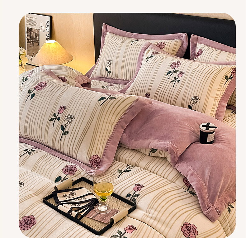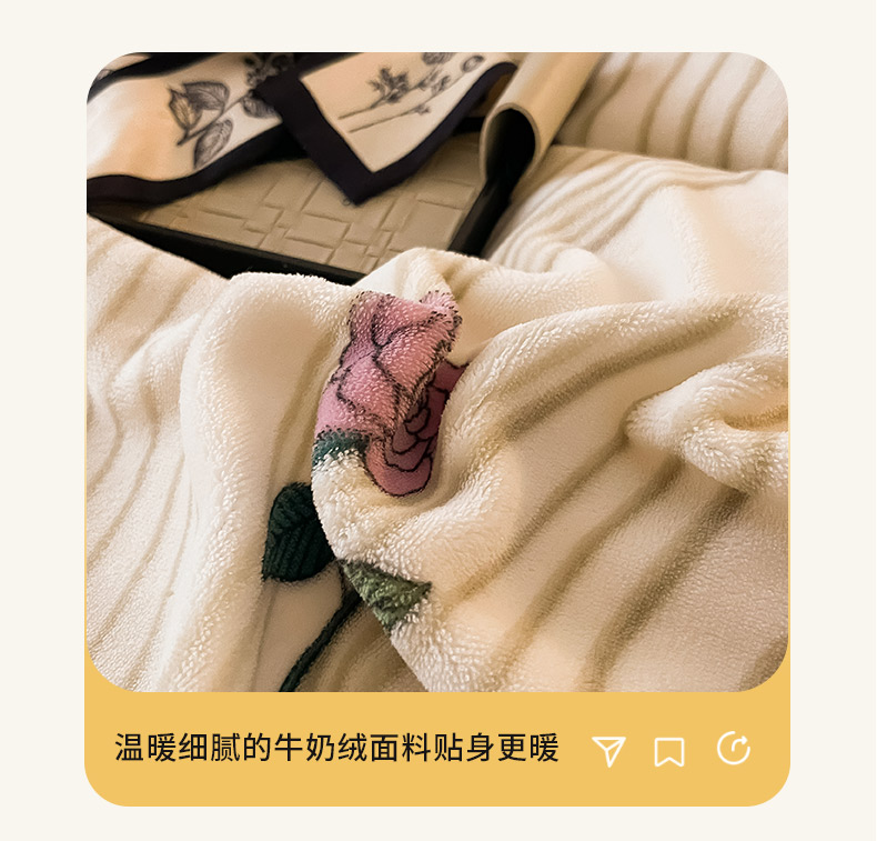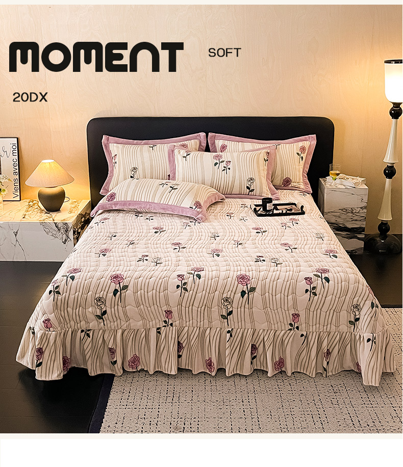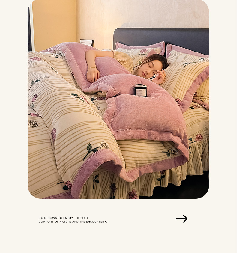 当前位置: 91家纺网 > 商品网购 > 床品套件 > 四件套 > 牛奶绒四件套 > 茉保家纺 2025新款花边款牛奶绒床盖四件套 香氛玫瑰
