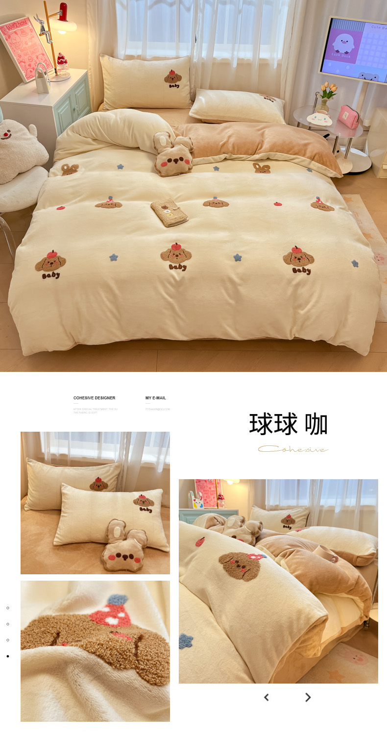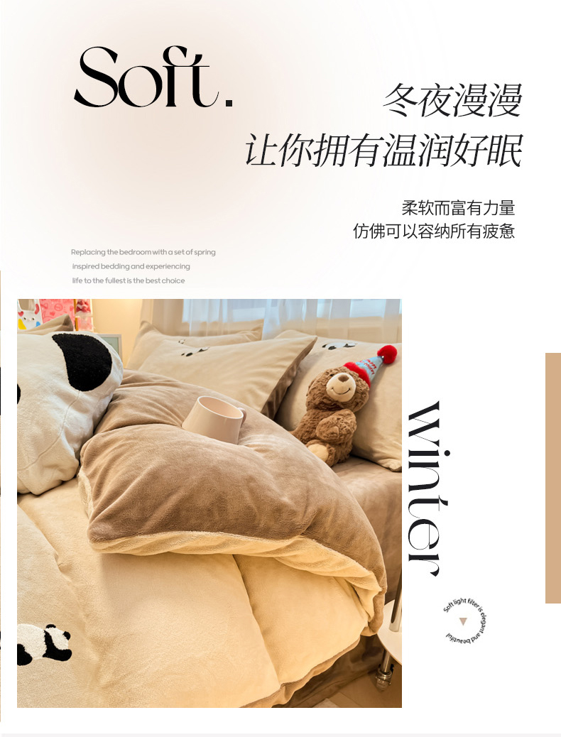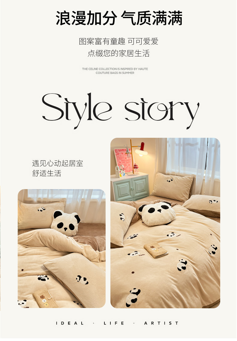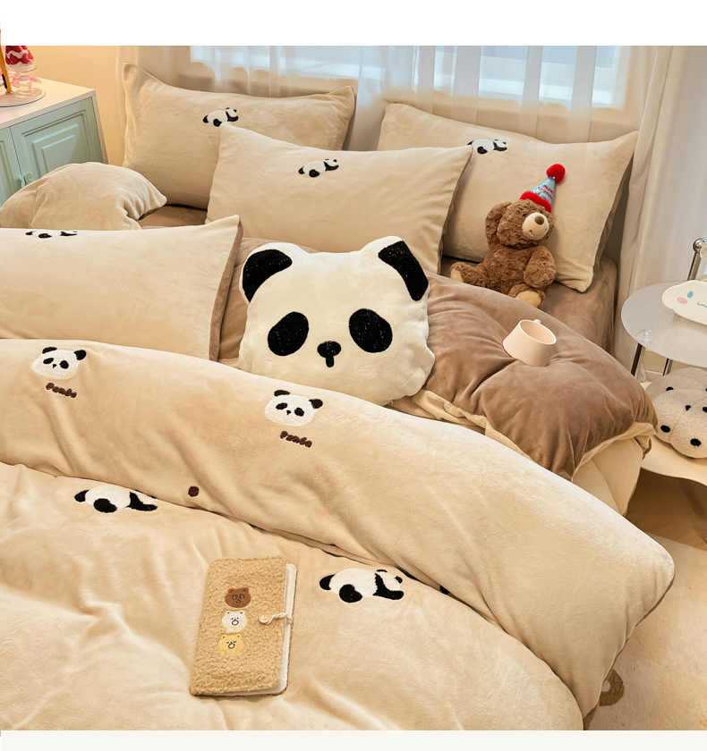 当前位置: 91家纺网 > 商品网购 > 床品套件 > 四件套 > 牛奶绒四件套 > 慕尚家纺 2025新款牛奶绒毛巾绣刺绣四件套 熊猫天下 咖