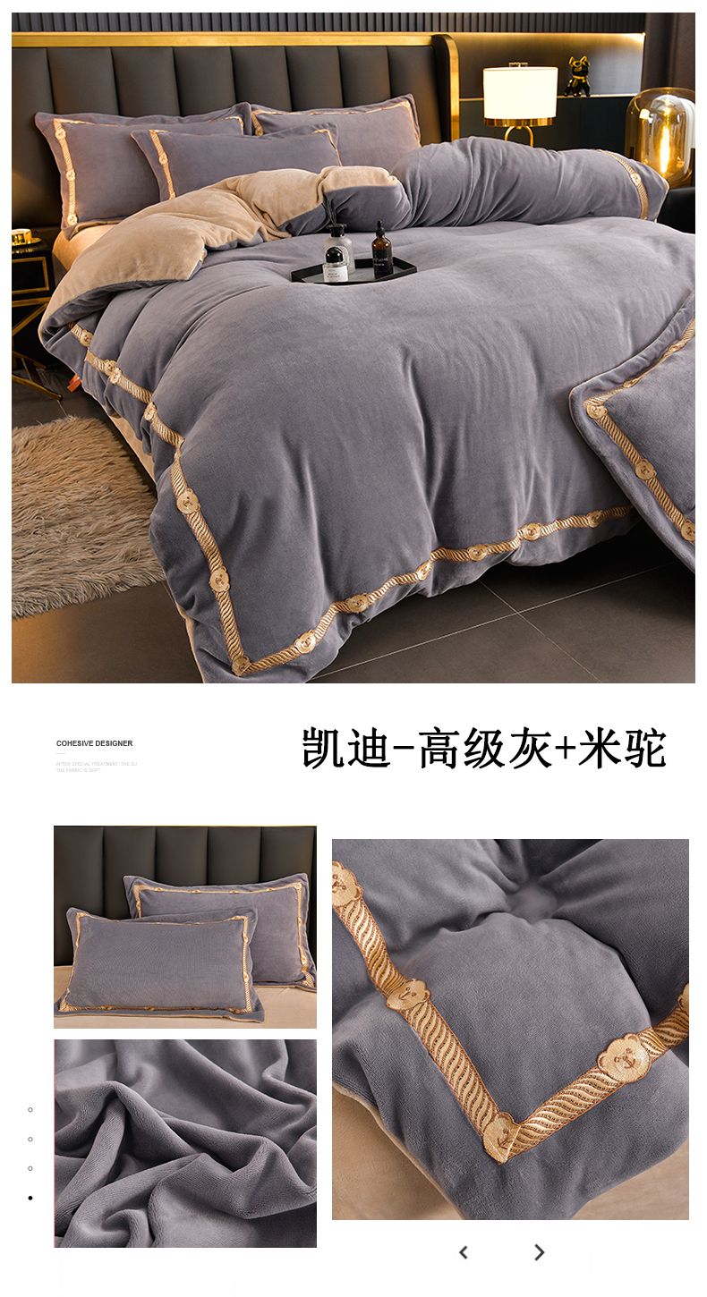 当前位置: 91家纺网 > 商品网购 > 床品套件 > 四件套 > 牛奶绒四件套 > 云家 (包含买家秀)2024新款高克重牛奶绒纯色双拼刺绣四件套珊瑚绒 凯迪系列 凯迪-奶昔白+高级灰