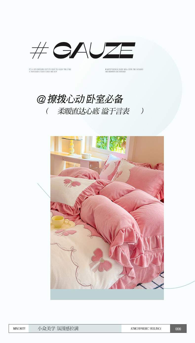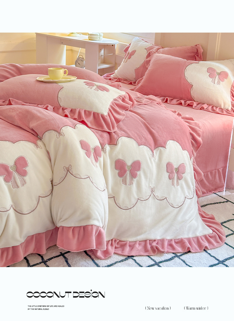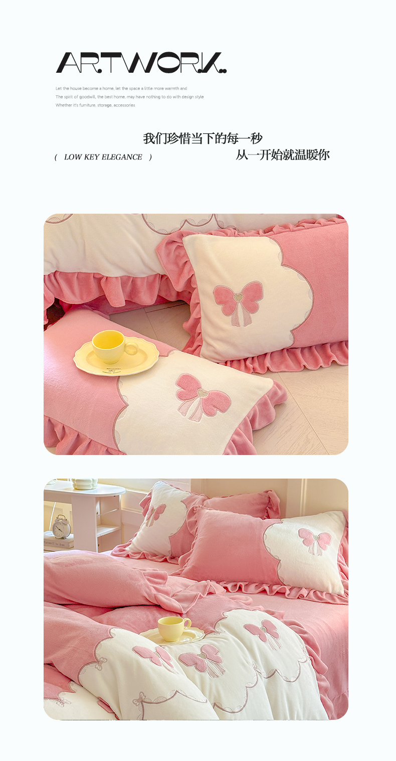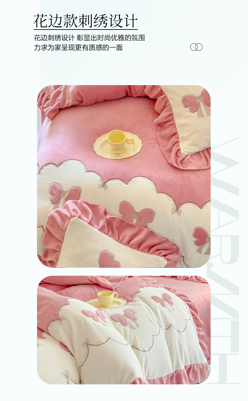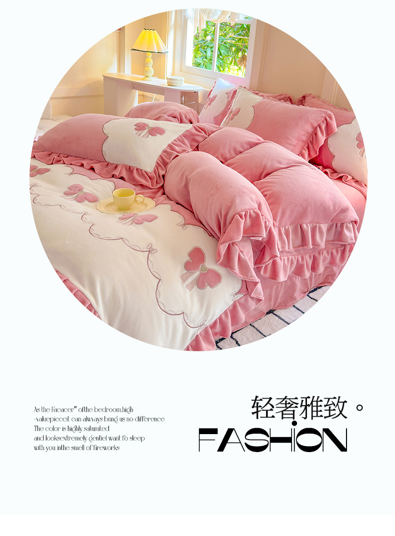 当前位置: 91家纺网 > 商品网购 > 床品套件 > 四件套 > 牛奶绒四件套 > 豪美鑫 2025新款牛奶绒刺绣韩版花边四件套-蝴蝶仙子 蝴蝶仙子-玉粉