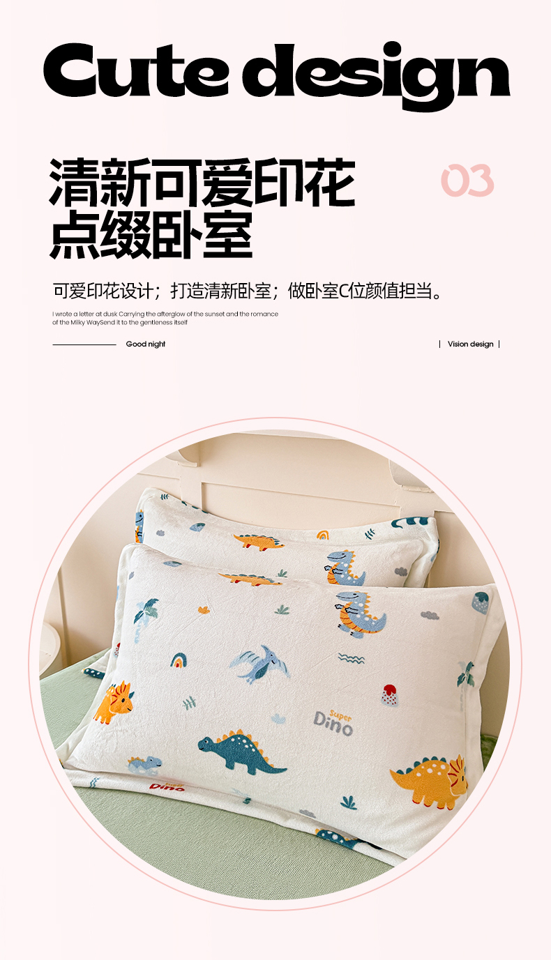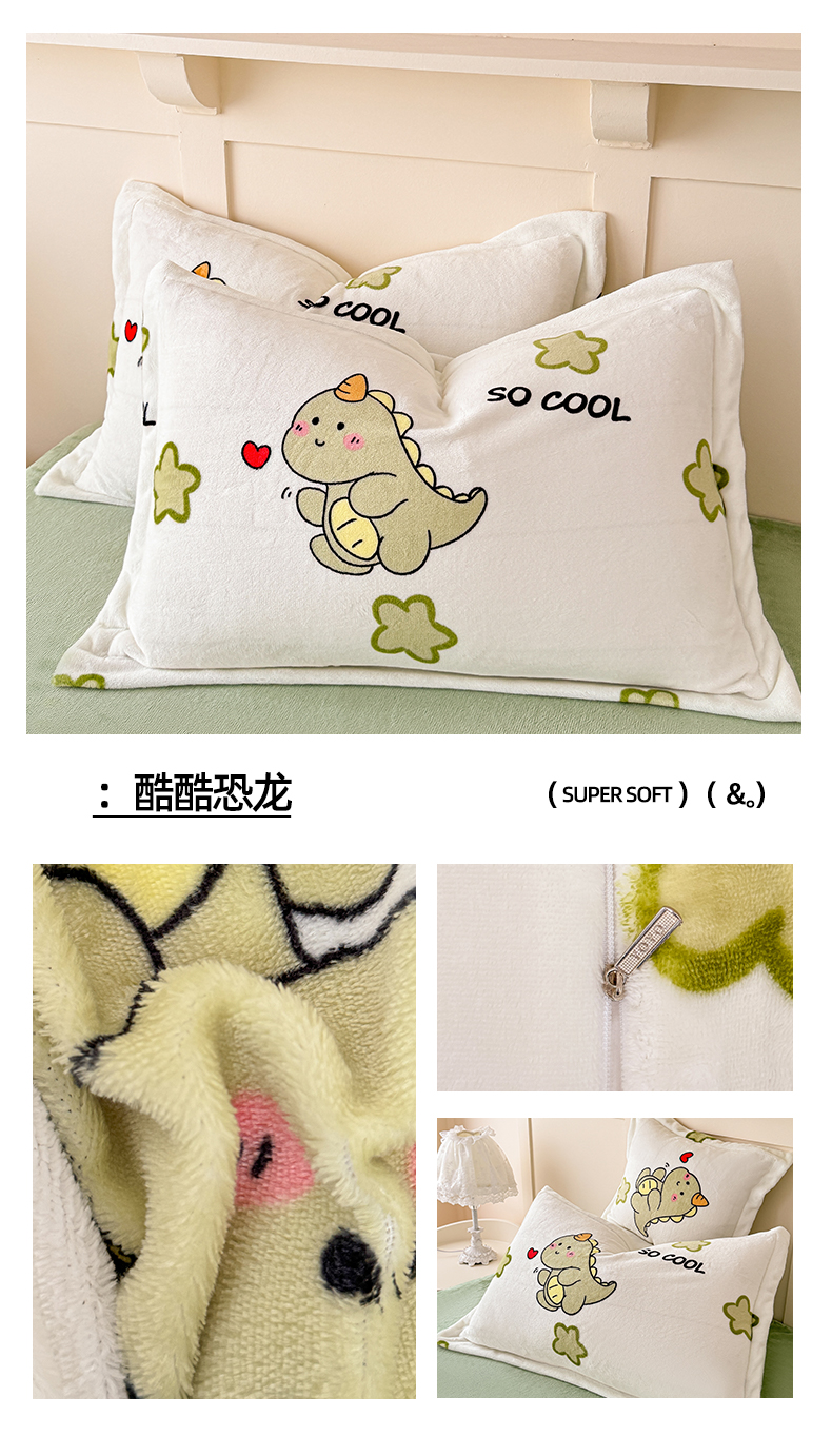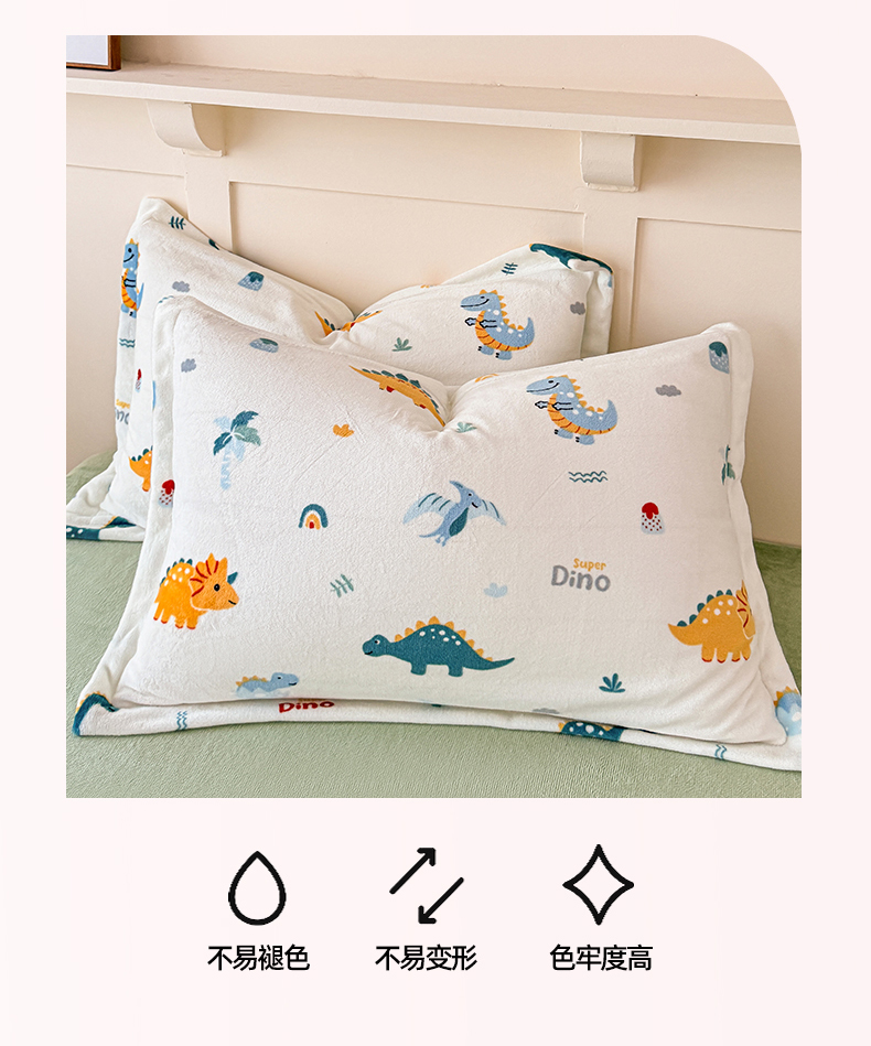商品名称:妖妖家纺 2024新款200克牛奶绒单枕套 酷酷恐龙