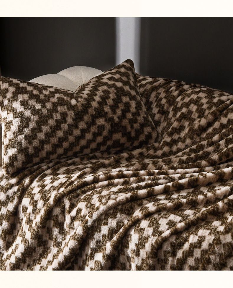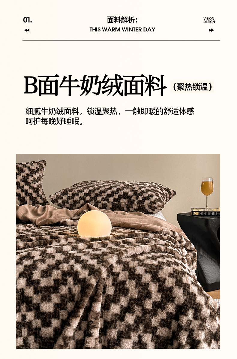 (总)网客家纺 2025新款羊毛绒牛奶绒夹棉床盖四件套,豹点-深灰,简格-黑色,简格-咖色,空间-红色,泥点-灰色,泥点-咖色,维奥-灰色,斜格-灰色,斜格-墨绿
