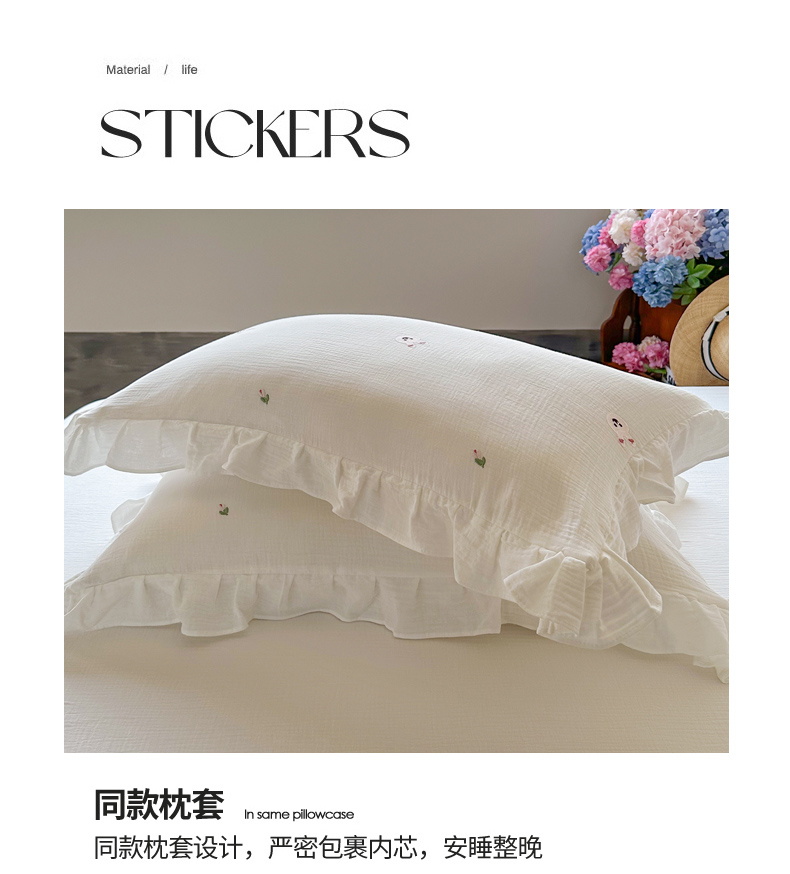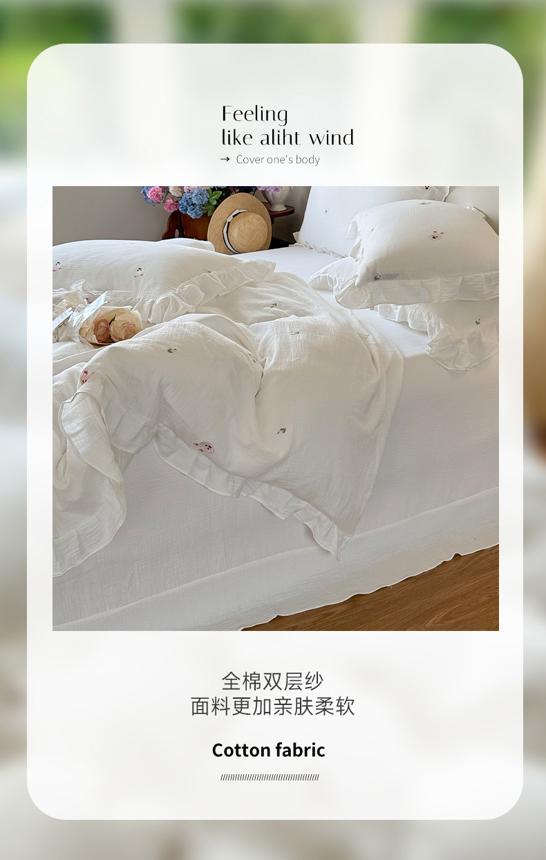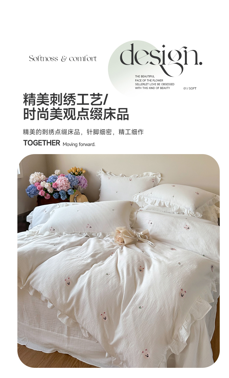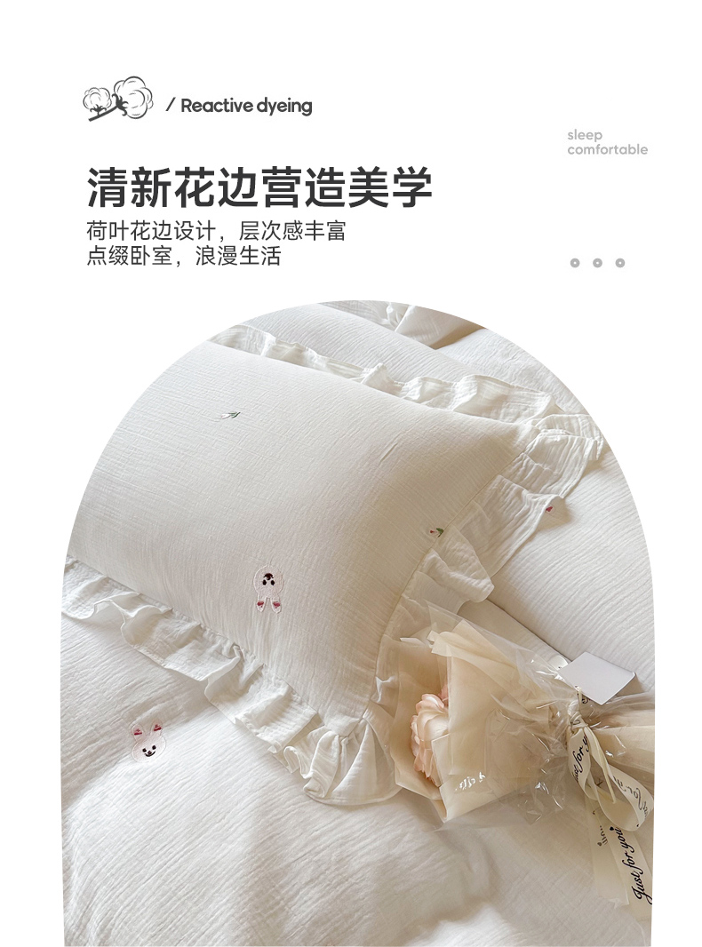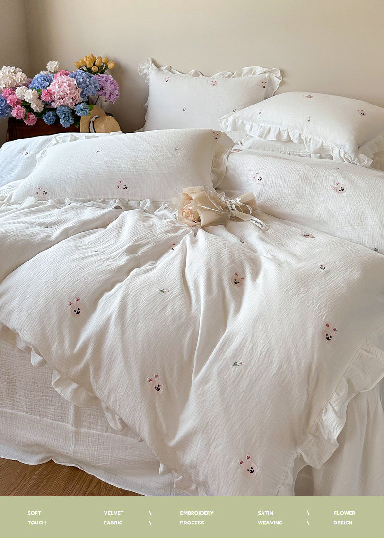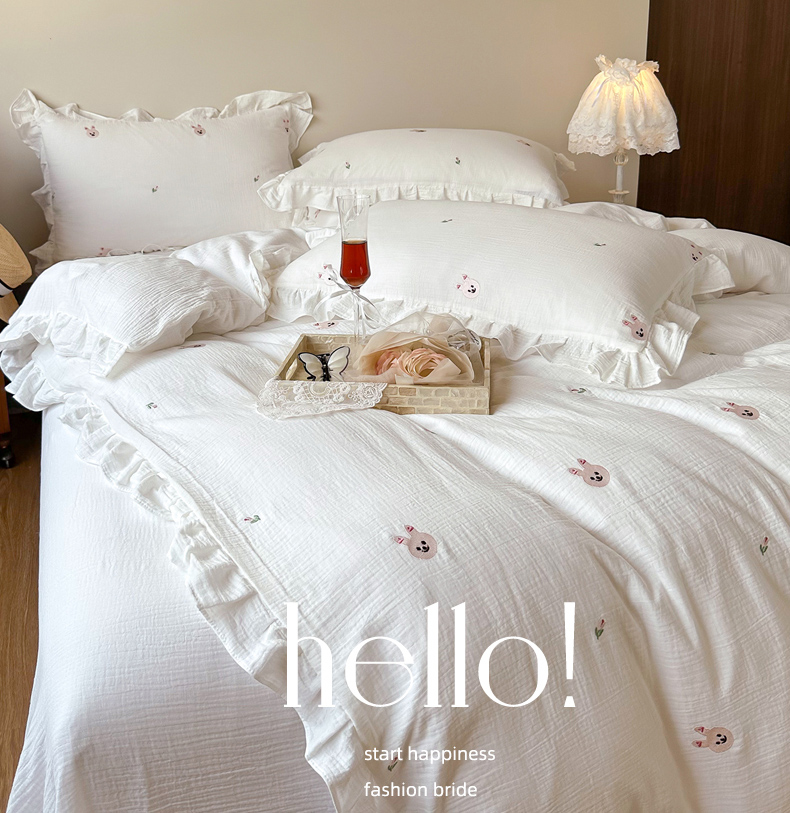 木楌 2024全棉皱皱纱荷叶边刺绣工艺款四件套 米菲
