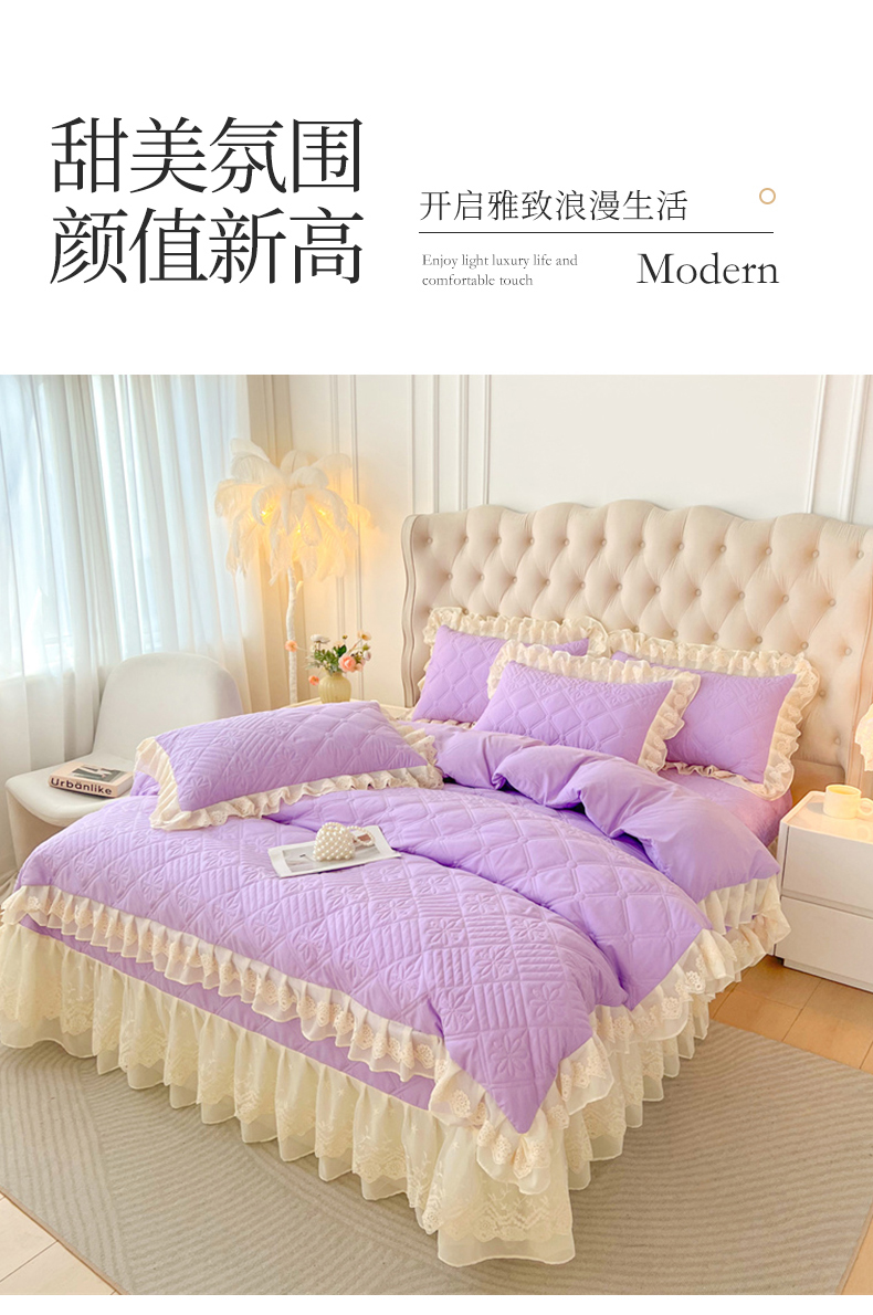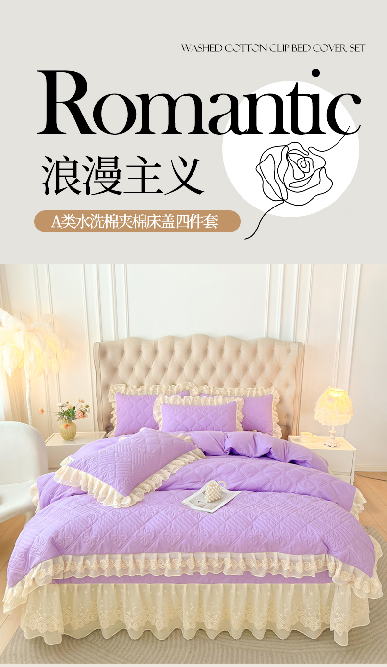 当前位置: 91家纺网 > 商品网购 > 床品套件 > 四件套 > 水洗棉四件套 > 锦格 2024新款A类水洗棉夹棉床盖四件套 花黛-罗兰紫